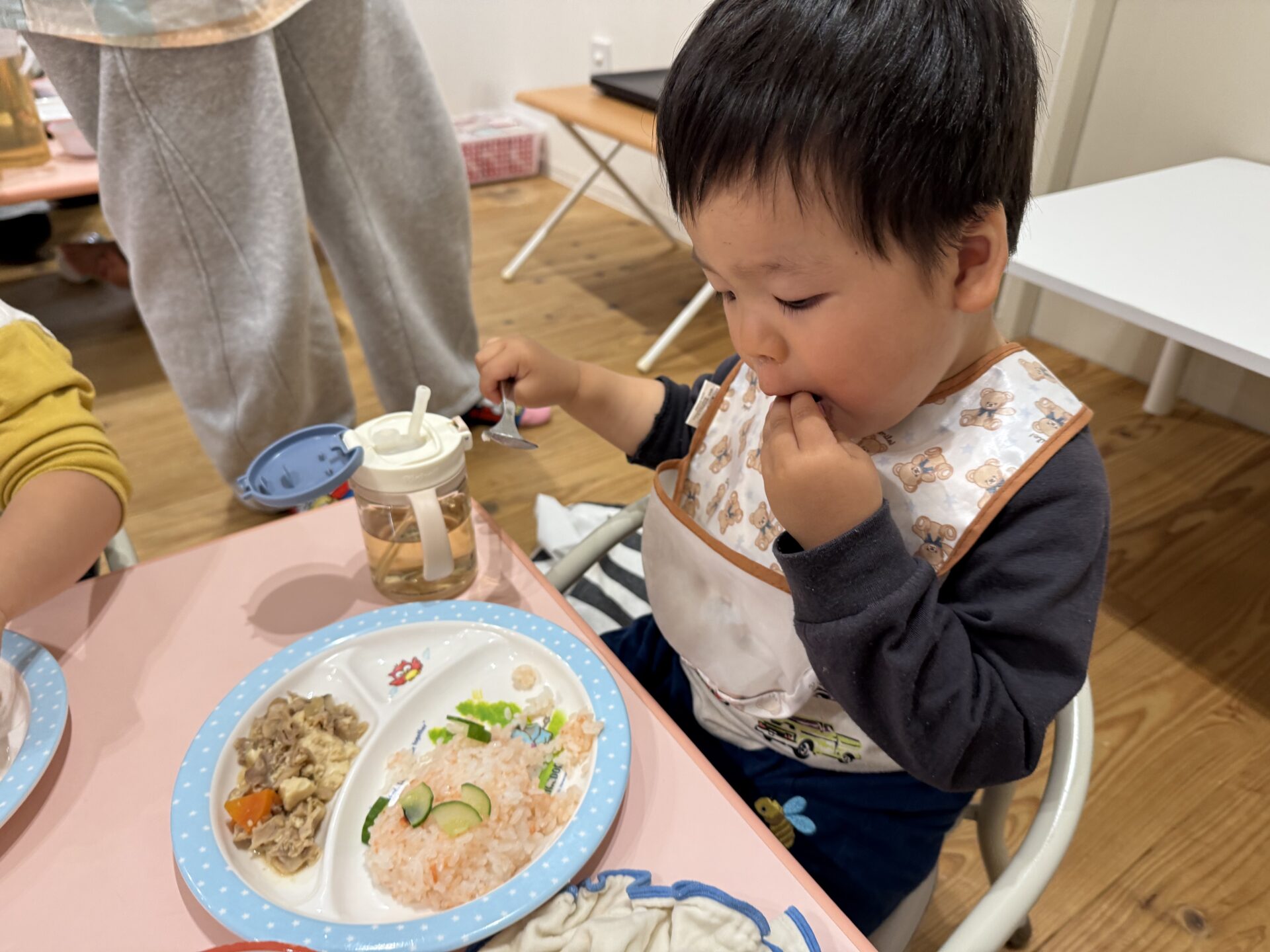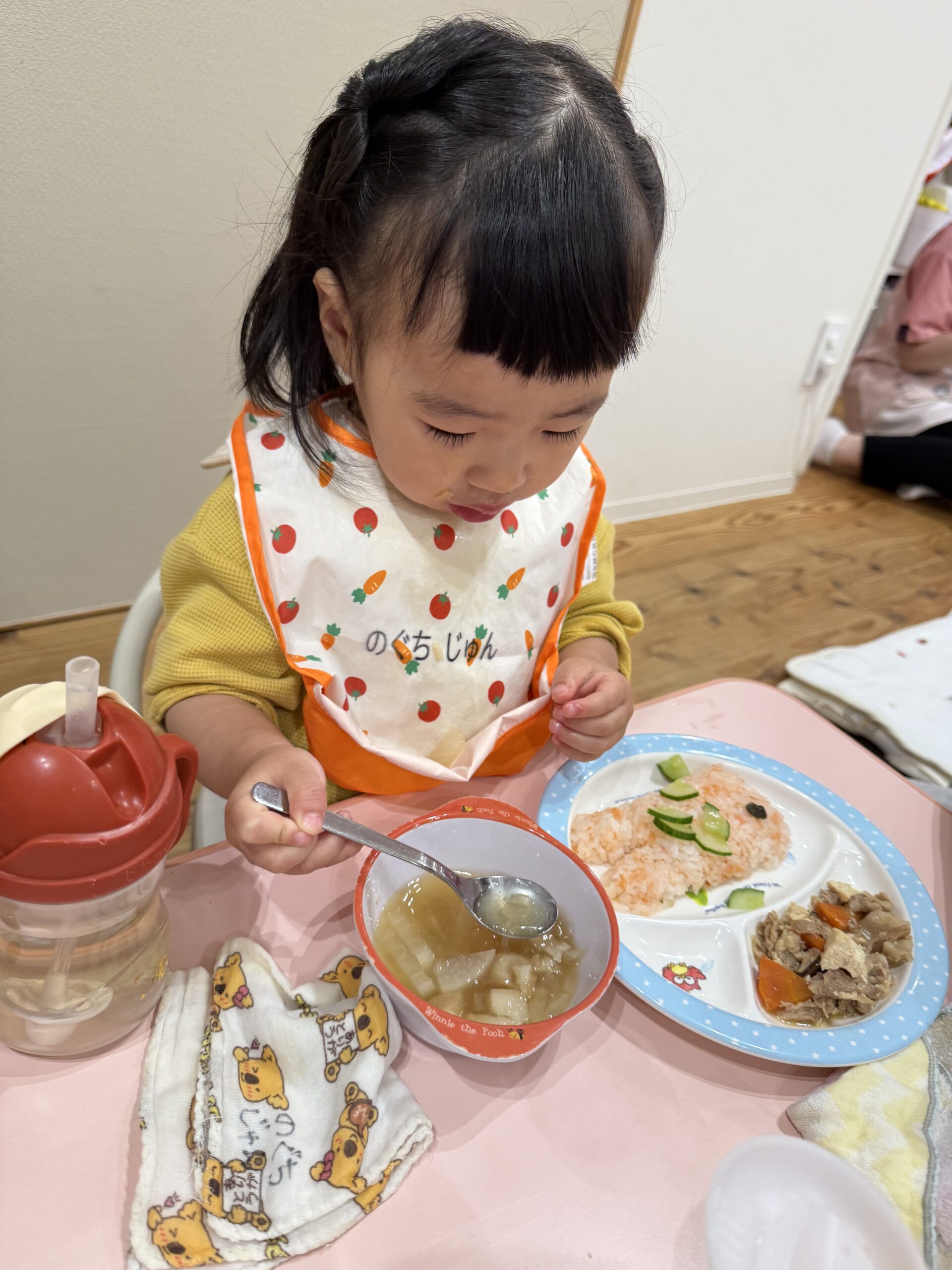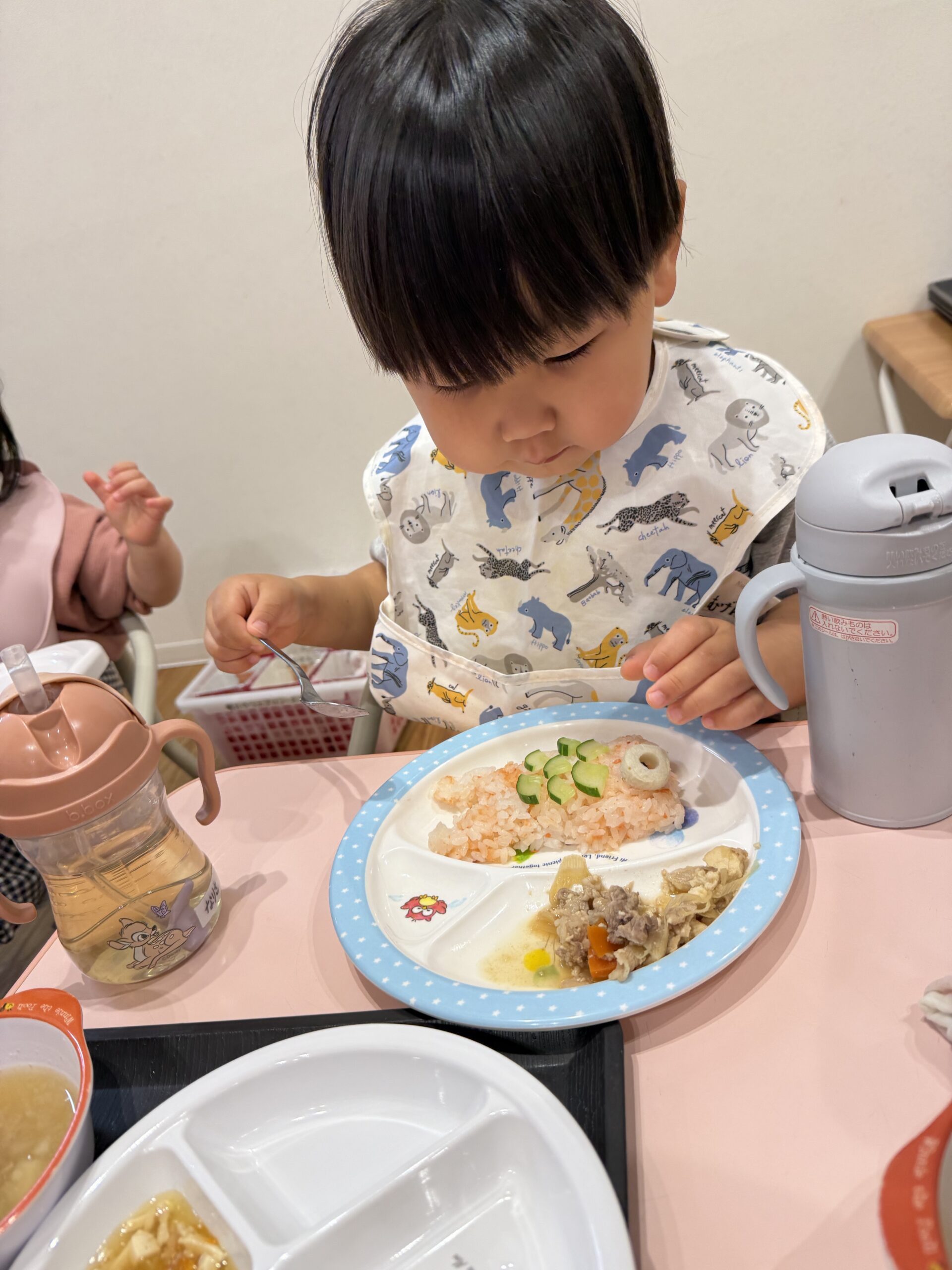 いっぱい遊んだ後は嬉しい給食の時間😋❤️