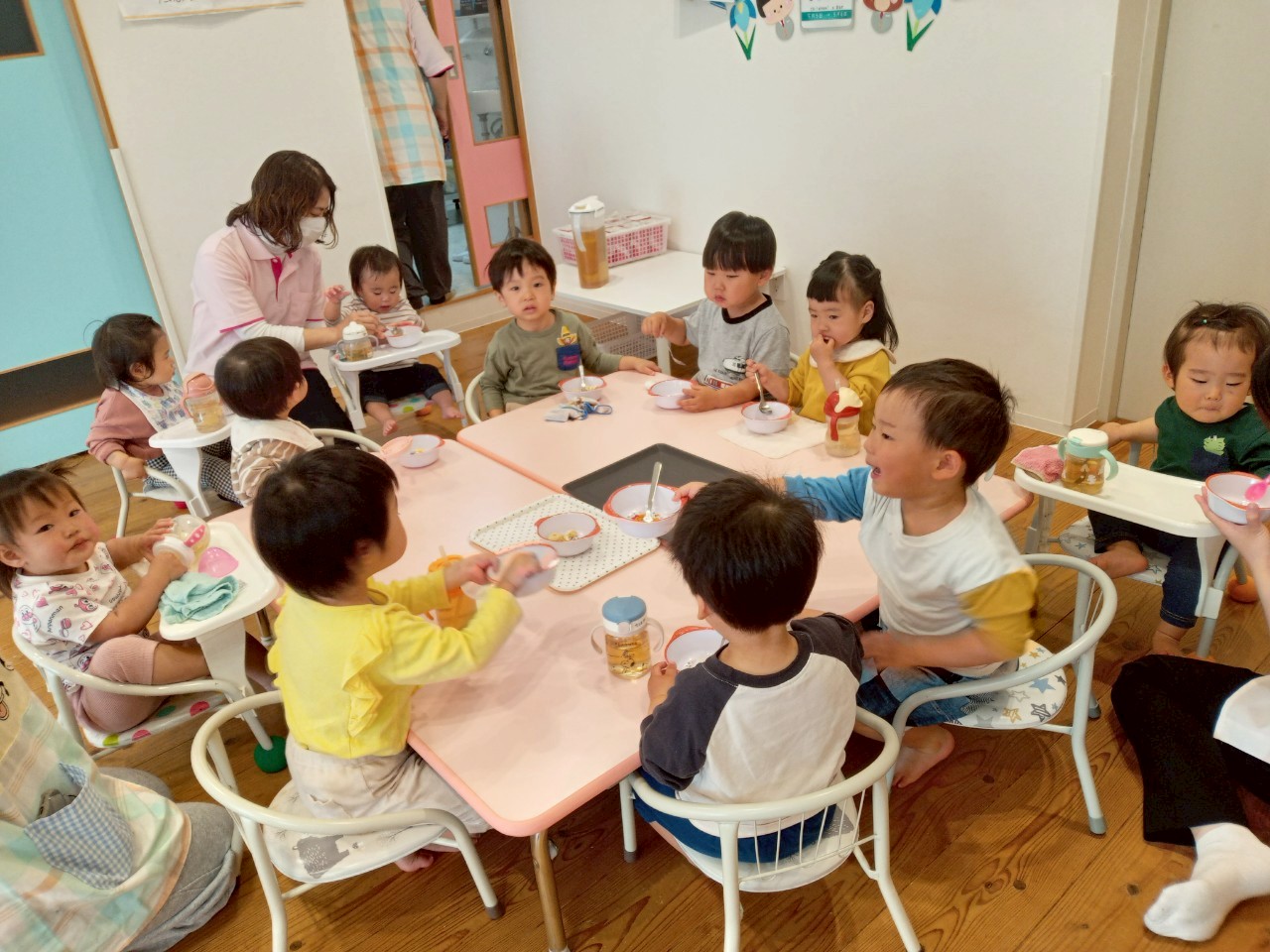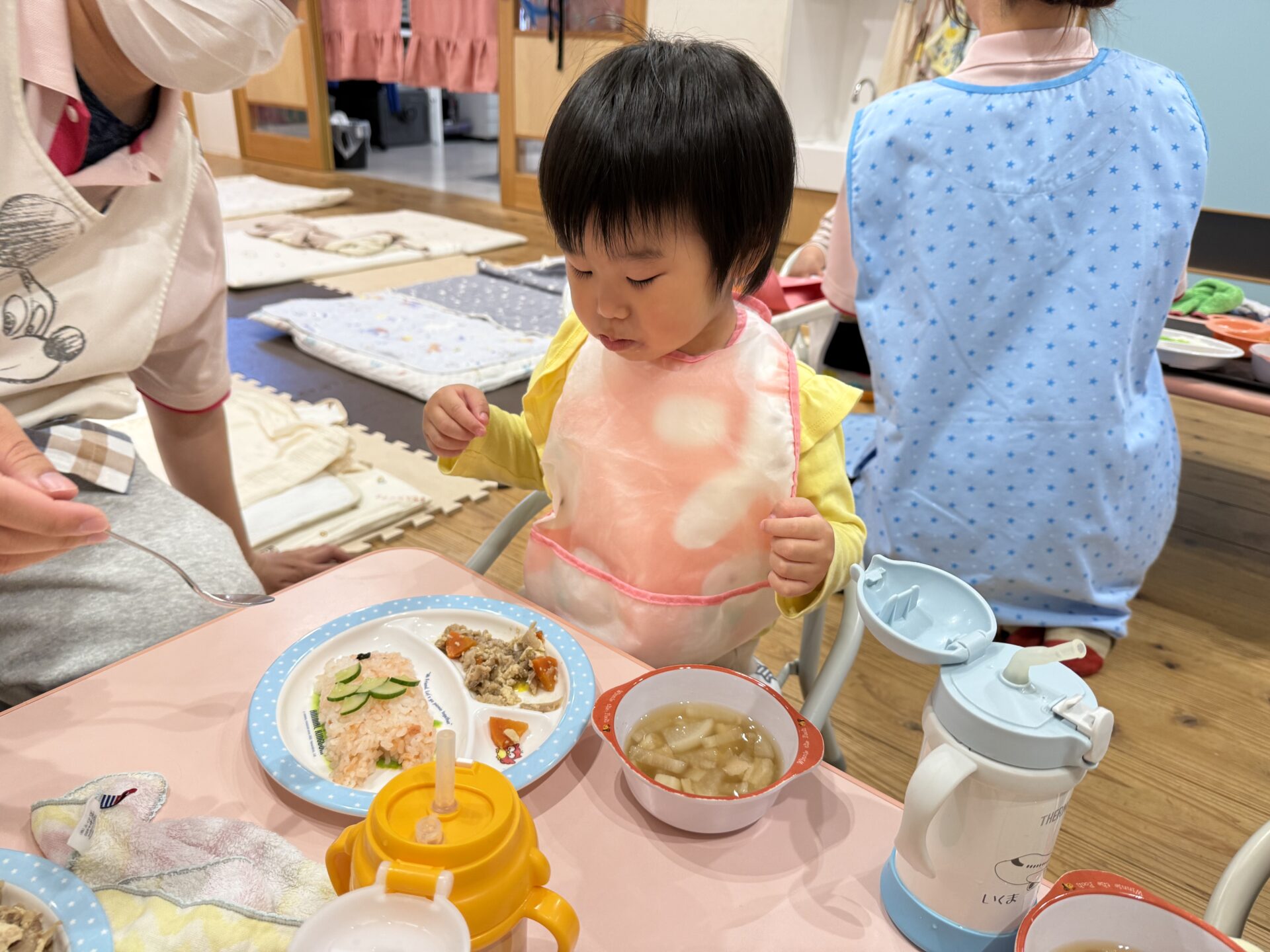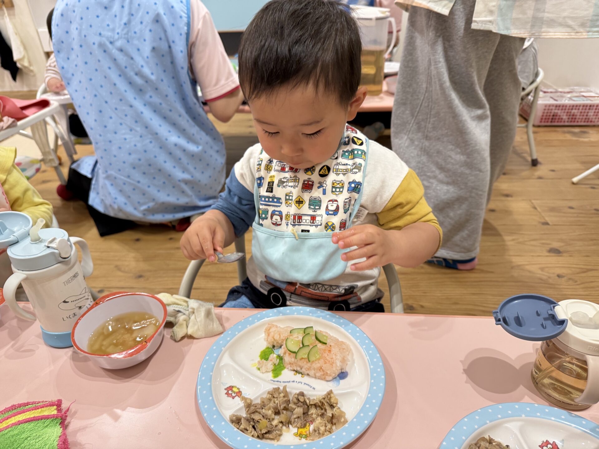 いっぱい遊んだ後は嬉しい給食の時間😋❤️