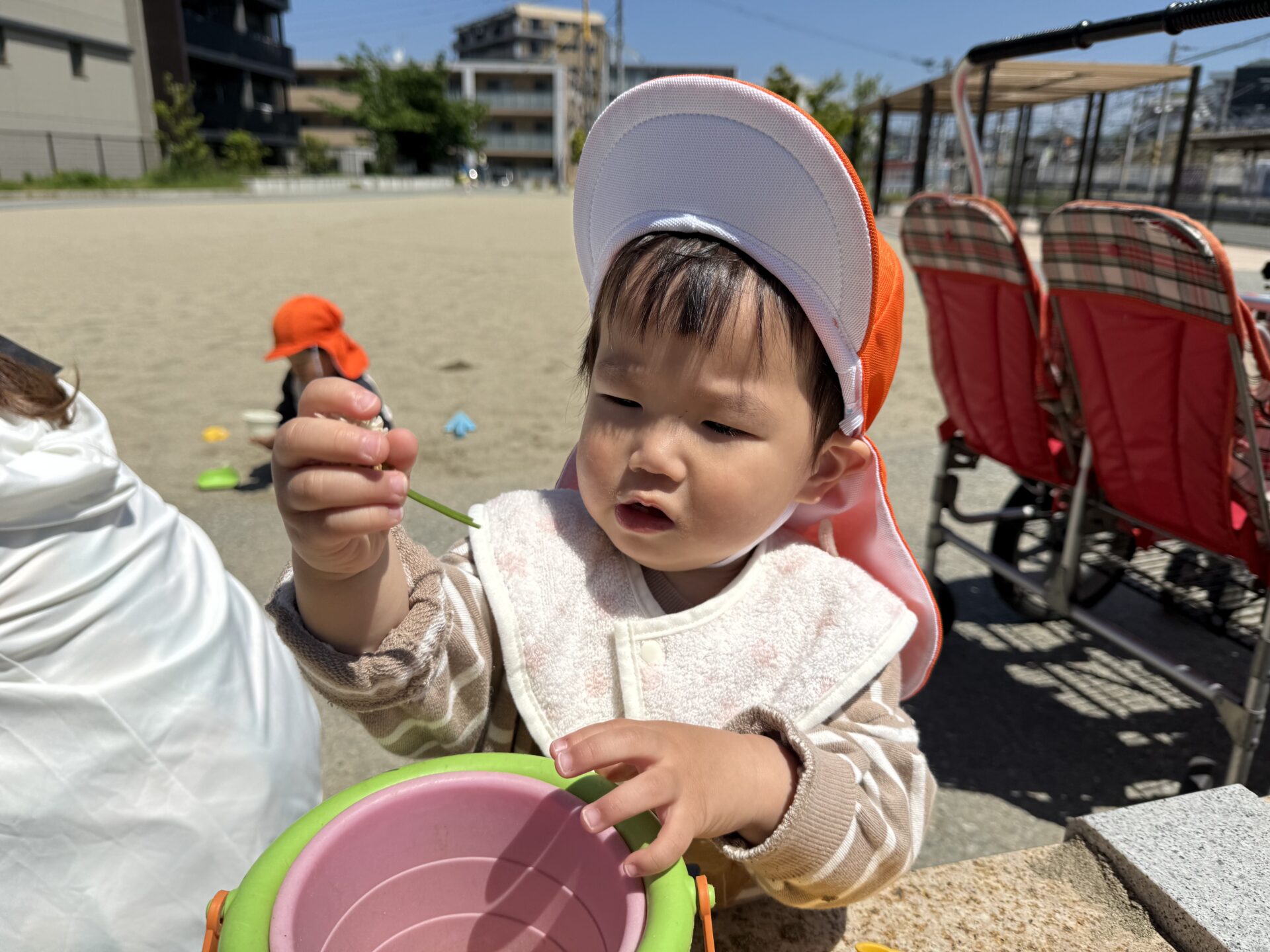 公園では砂遊びやすべり台やロープの遊具、草花を見つけて触ったりなど好きな遊びを見つけて興味津々に遊んでいた子ども達です😆🎶