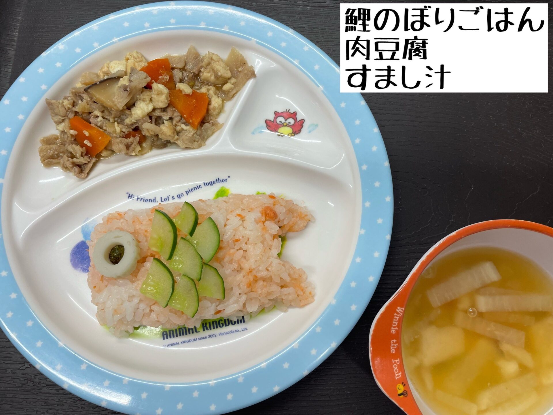 今日はもうすぐこどもの日なので、こいのぼりご飯でした〜🎏✨子ども達は「わぁー🤭❤️」と大喜び🎶今日もモリモリ食べました😆💕