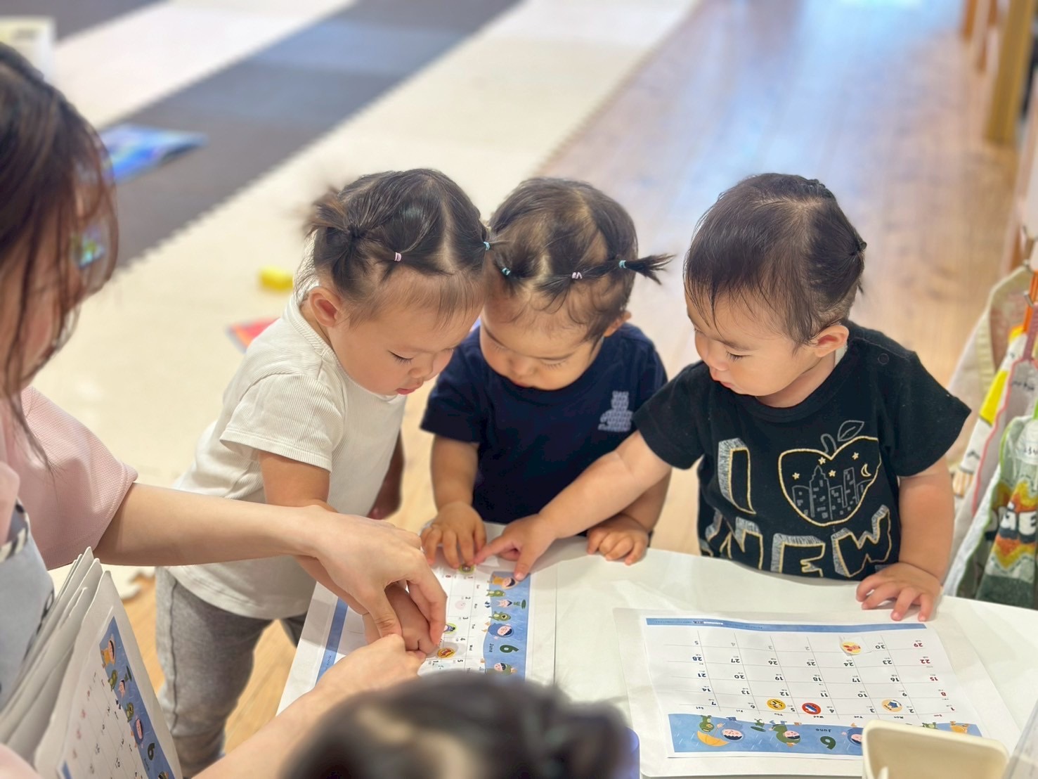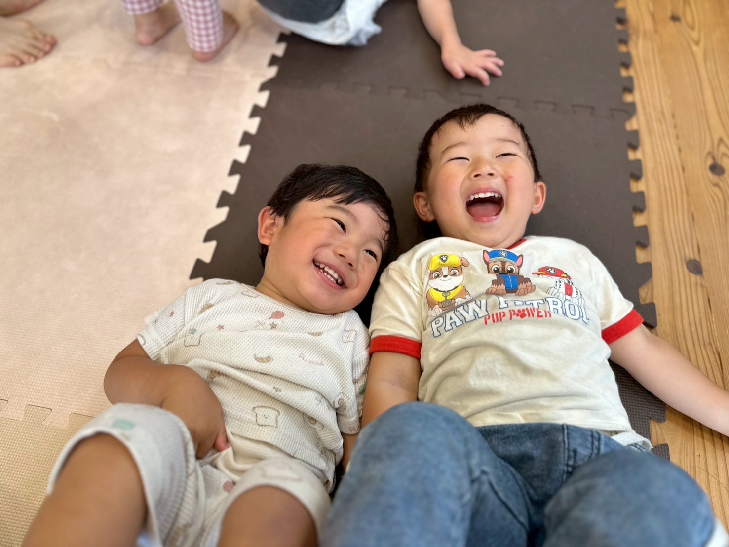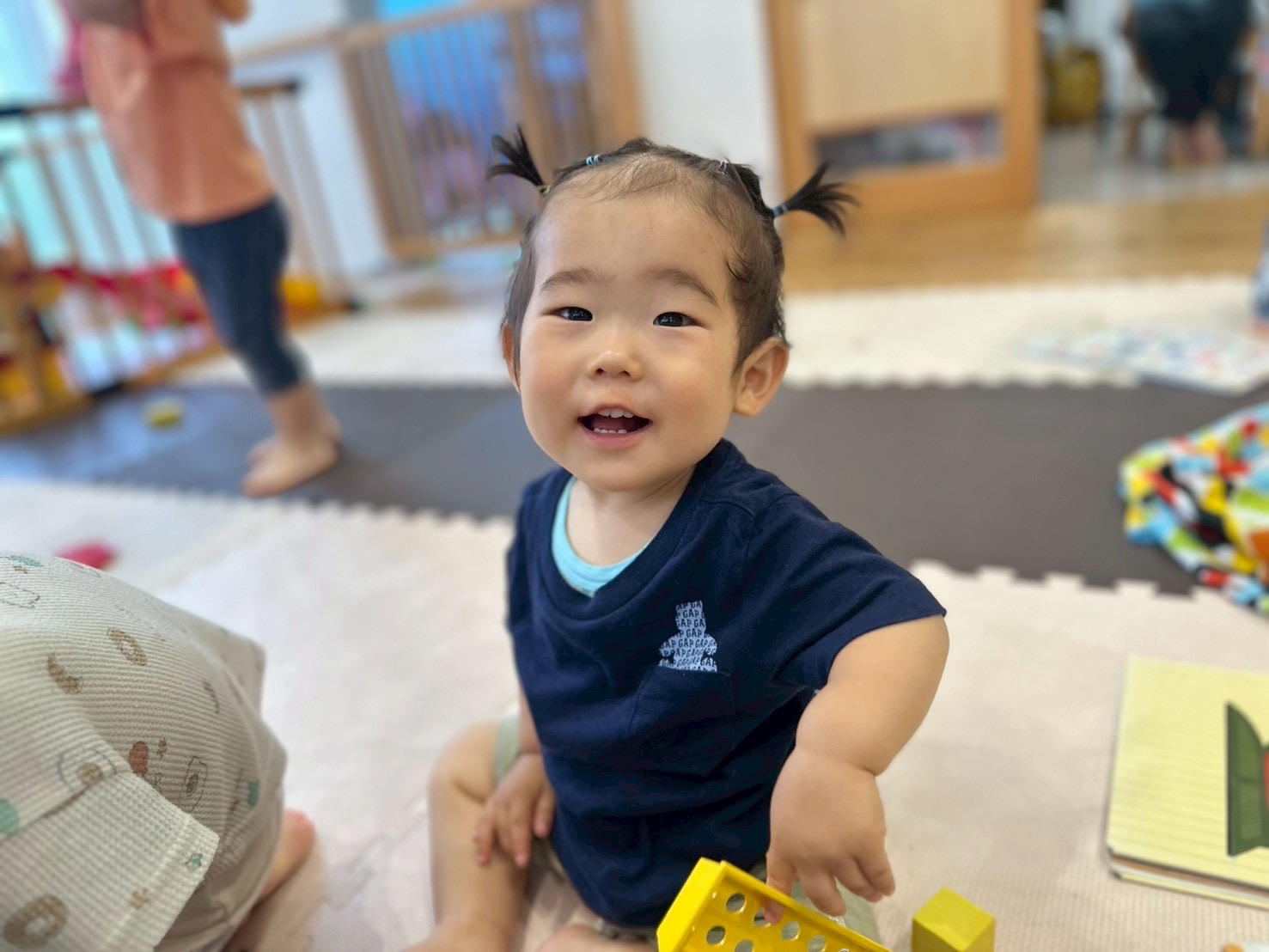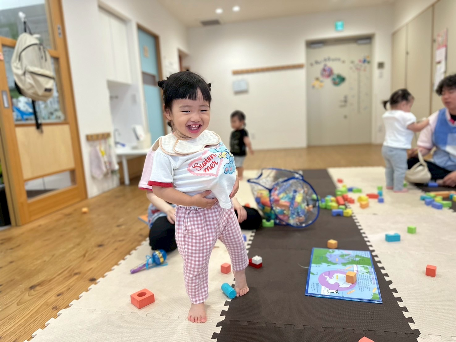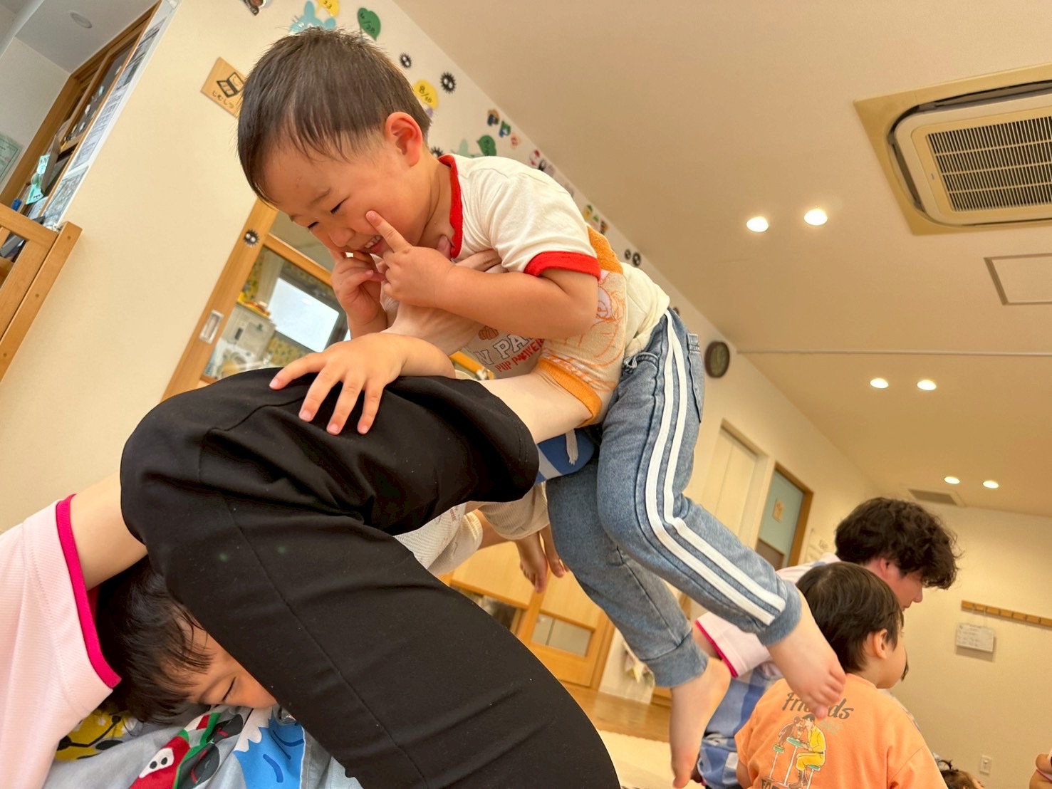 みんなで端を持ってくるくる回ってみたり、先生たちに「ピカブー」をしてもらい布の下に隠れたりと🤭✨
