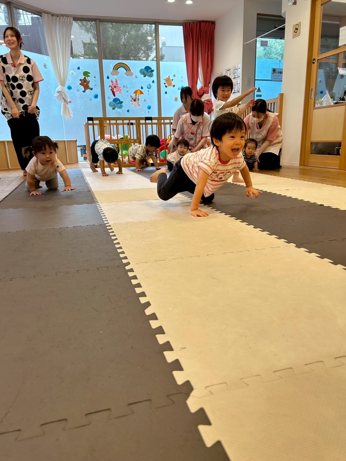 くまさん歩きやウサギジャンプをしたり、みんなで一緒に走ったりして沢山運動しました🏃♀️🏃♂️