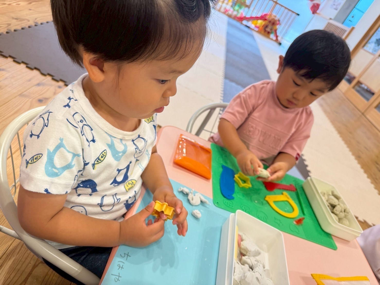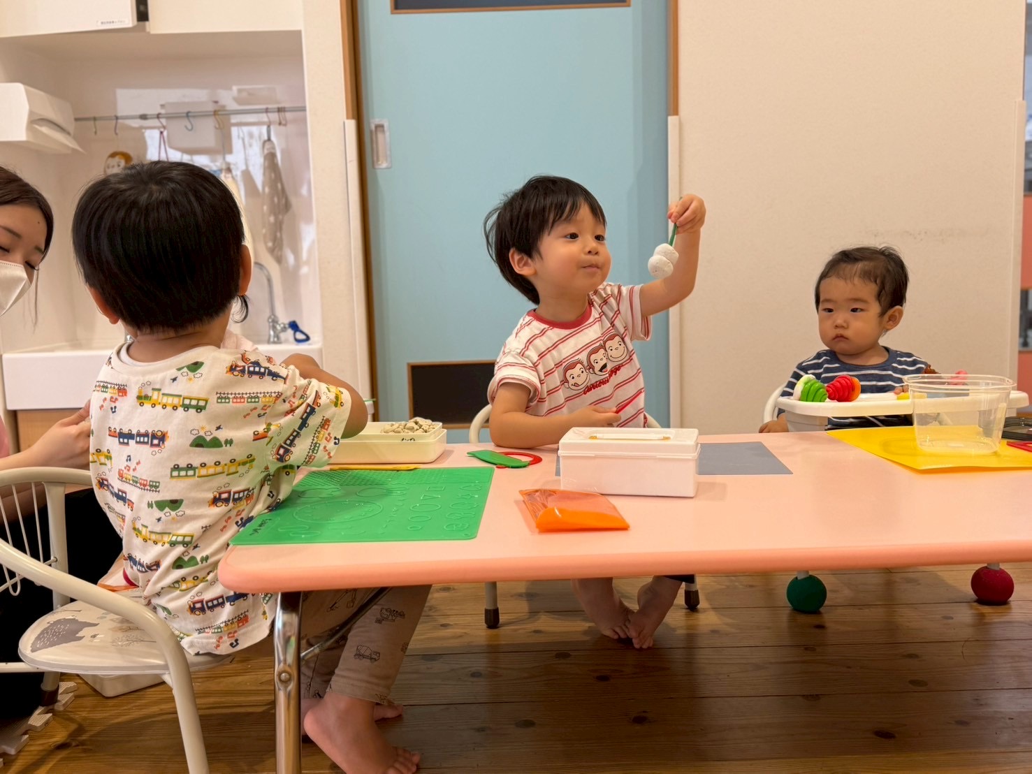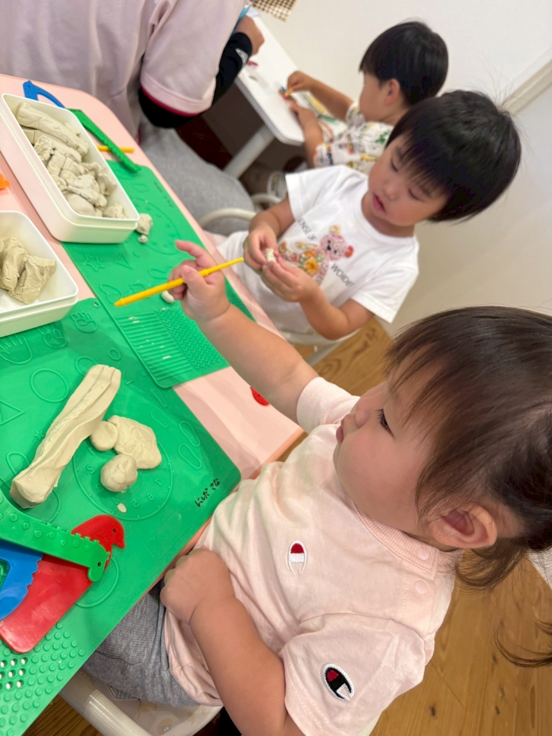 順番に行いましたので、待っているお友だちは粘土遊びでこねたりちぎったりして楽しまれてます🎶