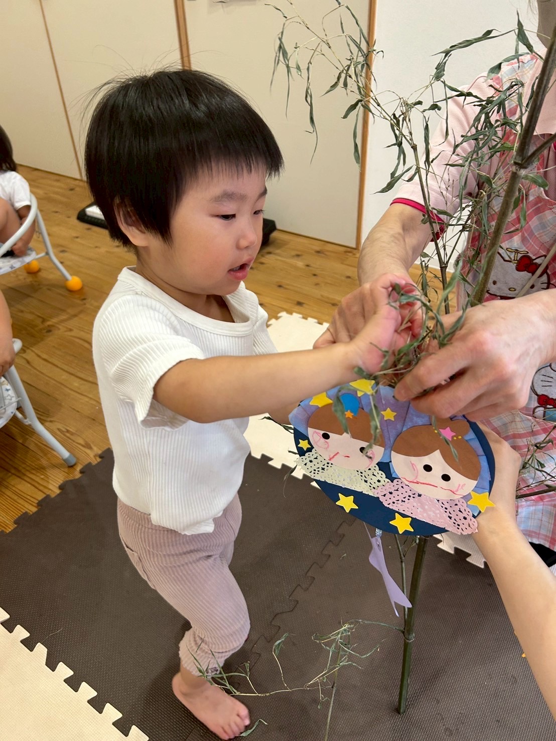 ということで、大きな笹の葉に短冊で飾り付けをしました👸🏻🤴🏻✨️