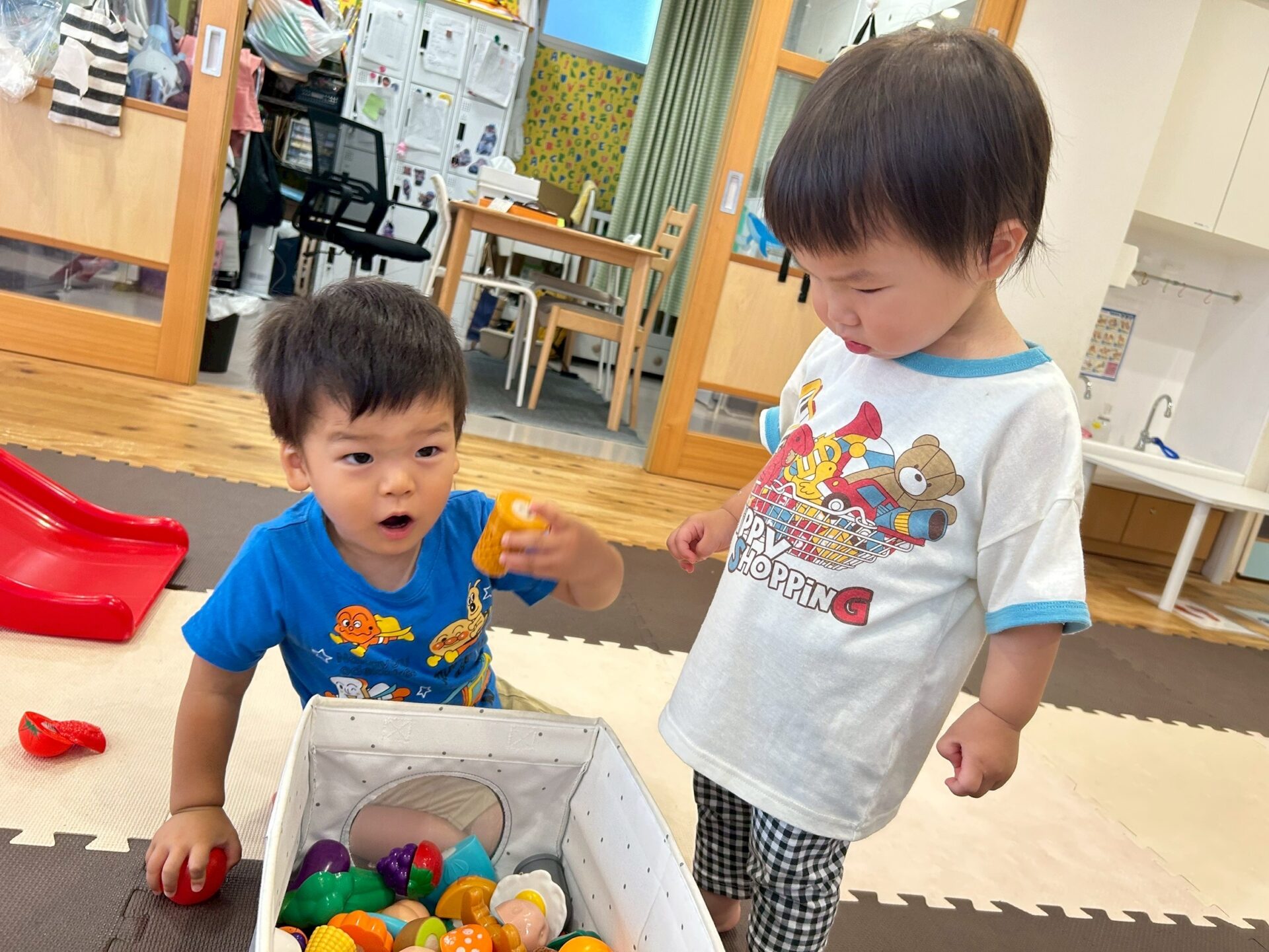 今日はお休みの子が多く、6人の登園でした! お友だちも「〇〇くんは〜?〇〇ちゃんは〜?」と様子を気になっていたようです🎶 登園すると早速遊び始める子どもたちです✨️