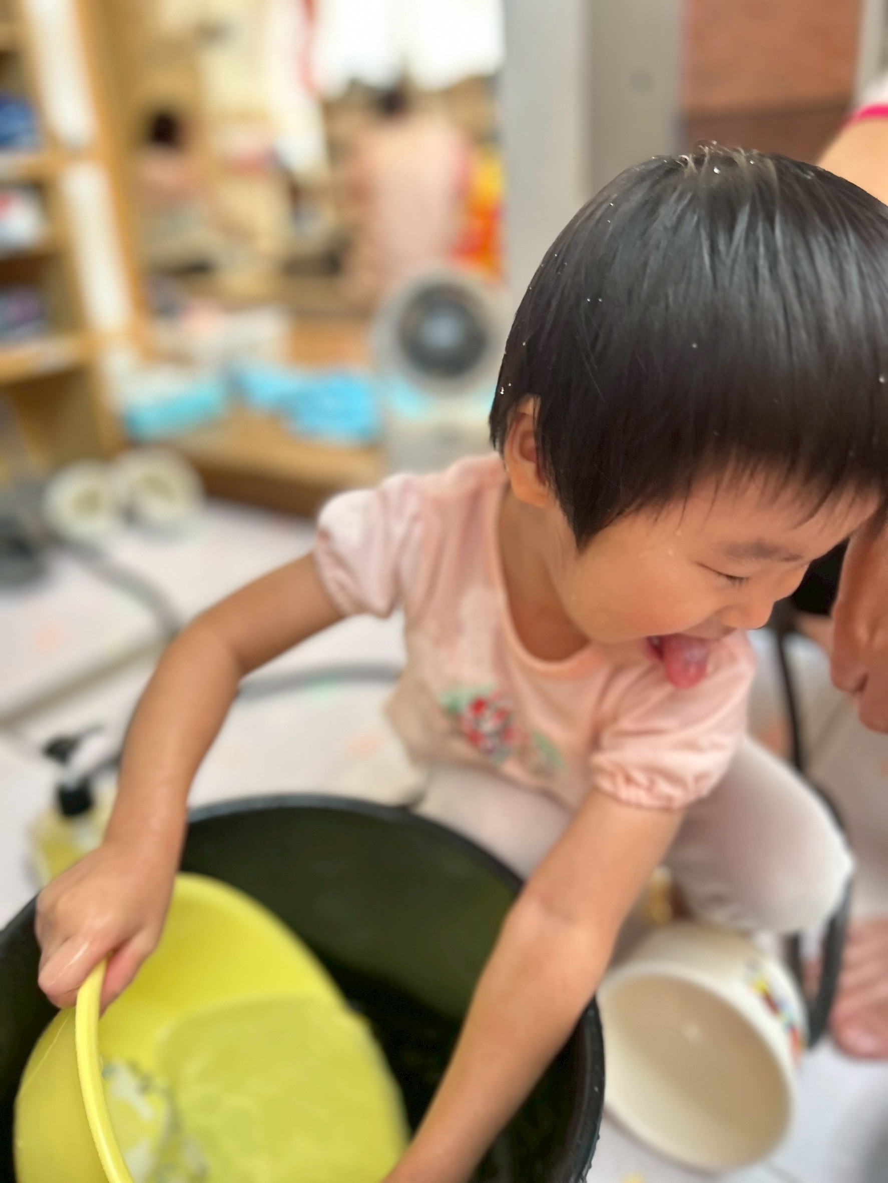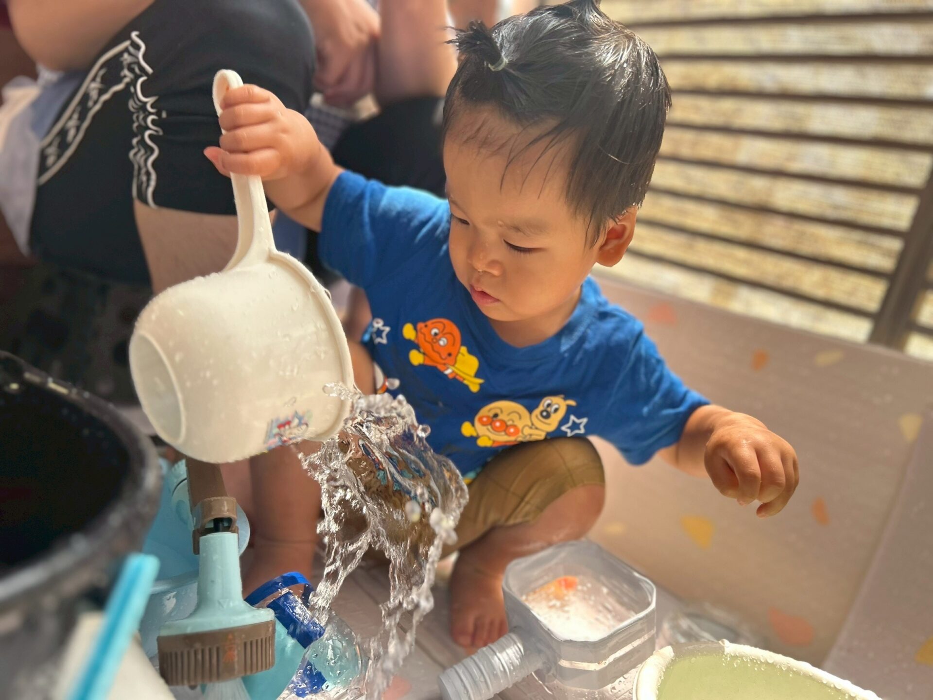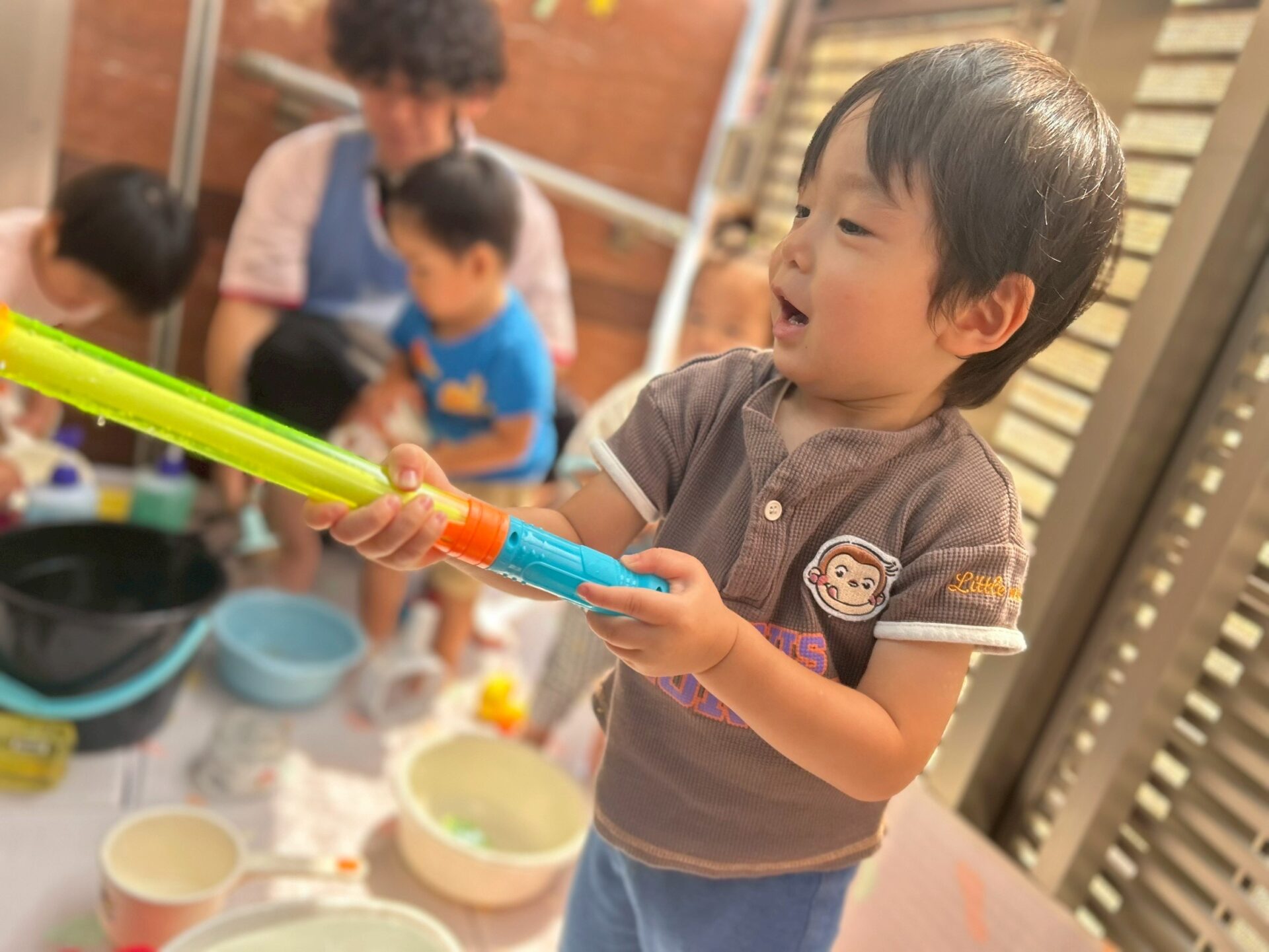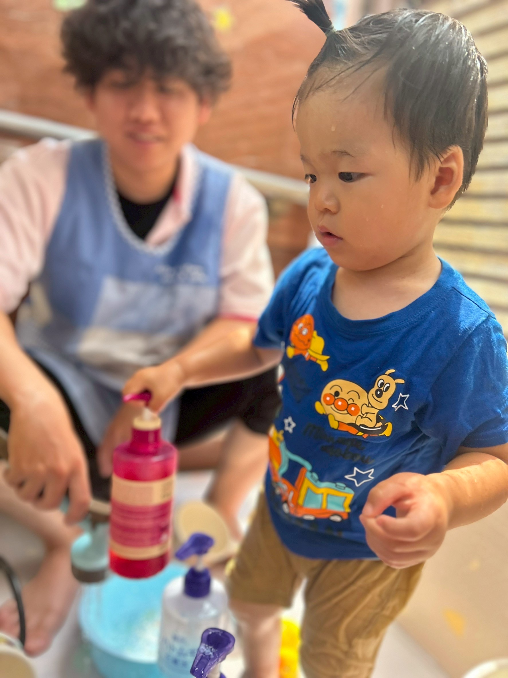 お絵描きを楽しんだあとは、みんな大好きな水遊び💧 好きなおもちゃを選んで、夢中で遊んでいます🎶