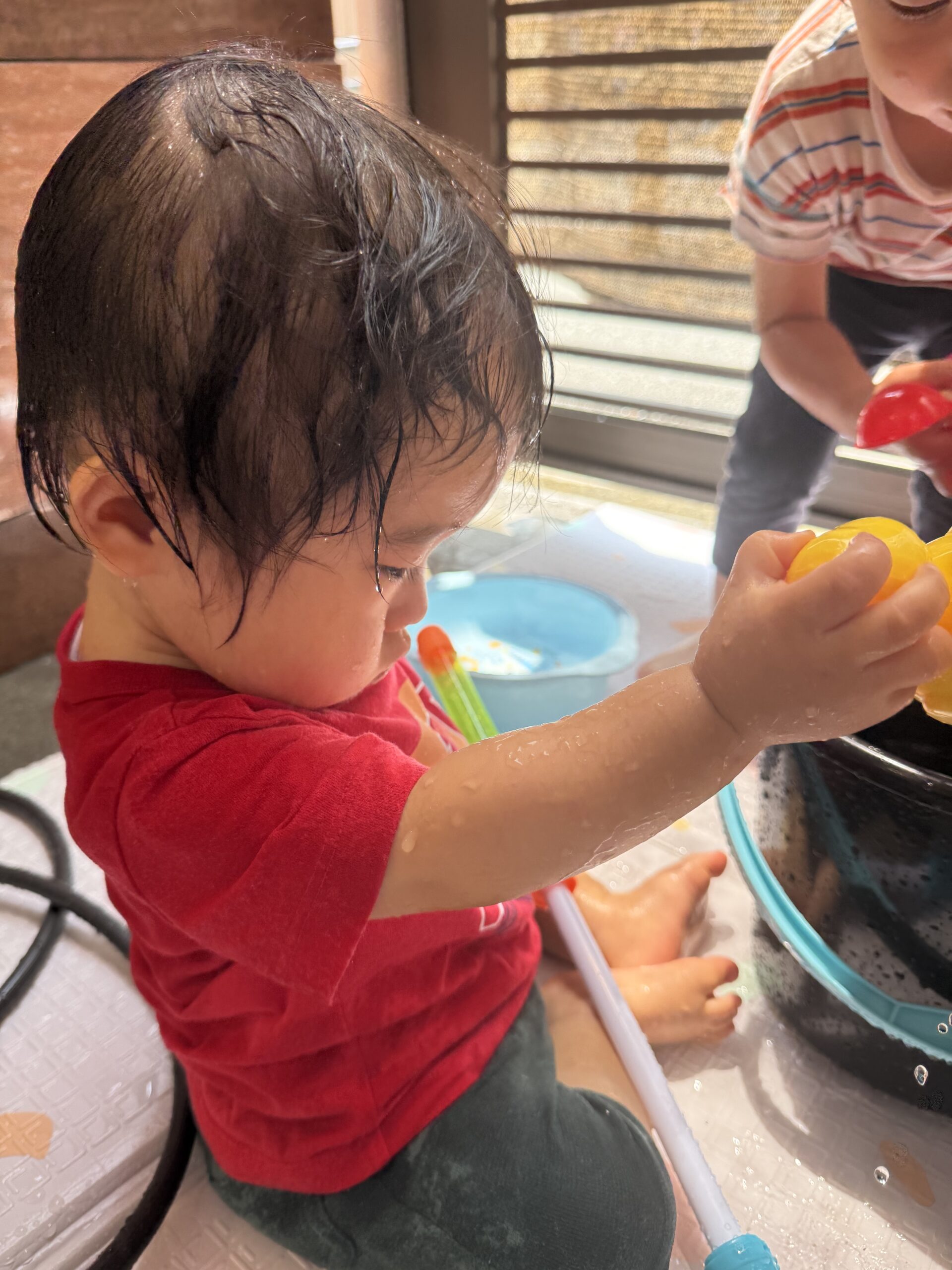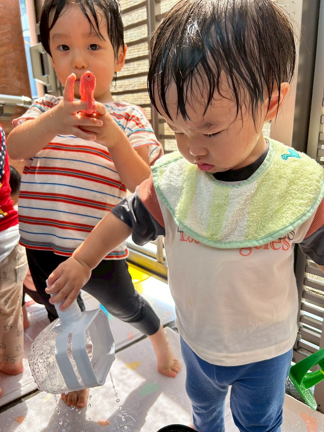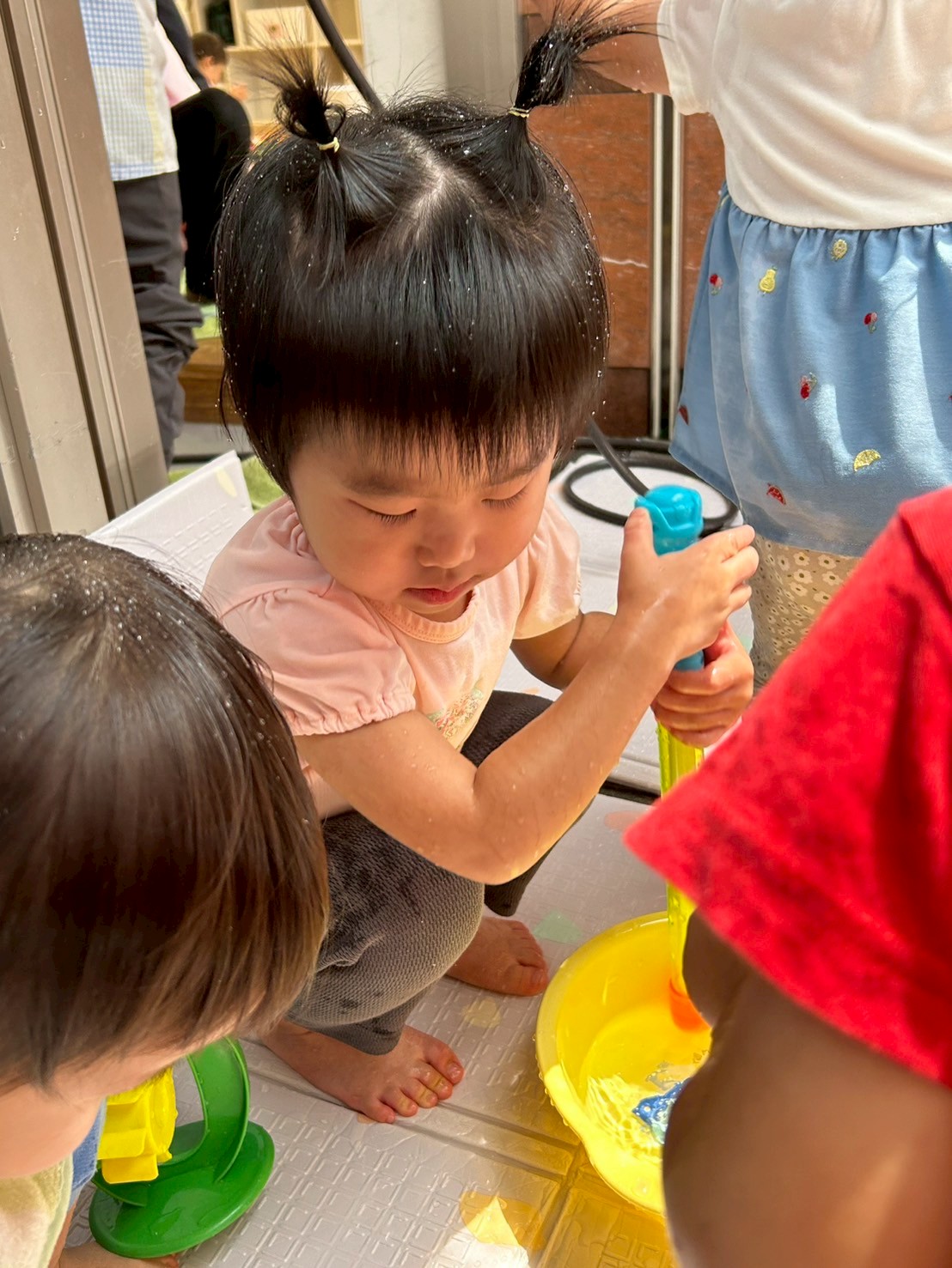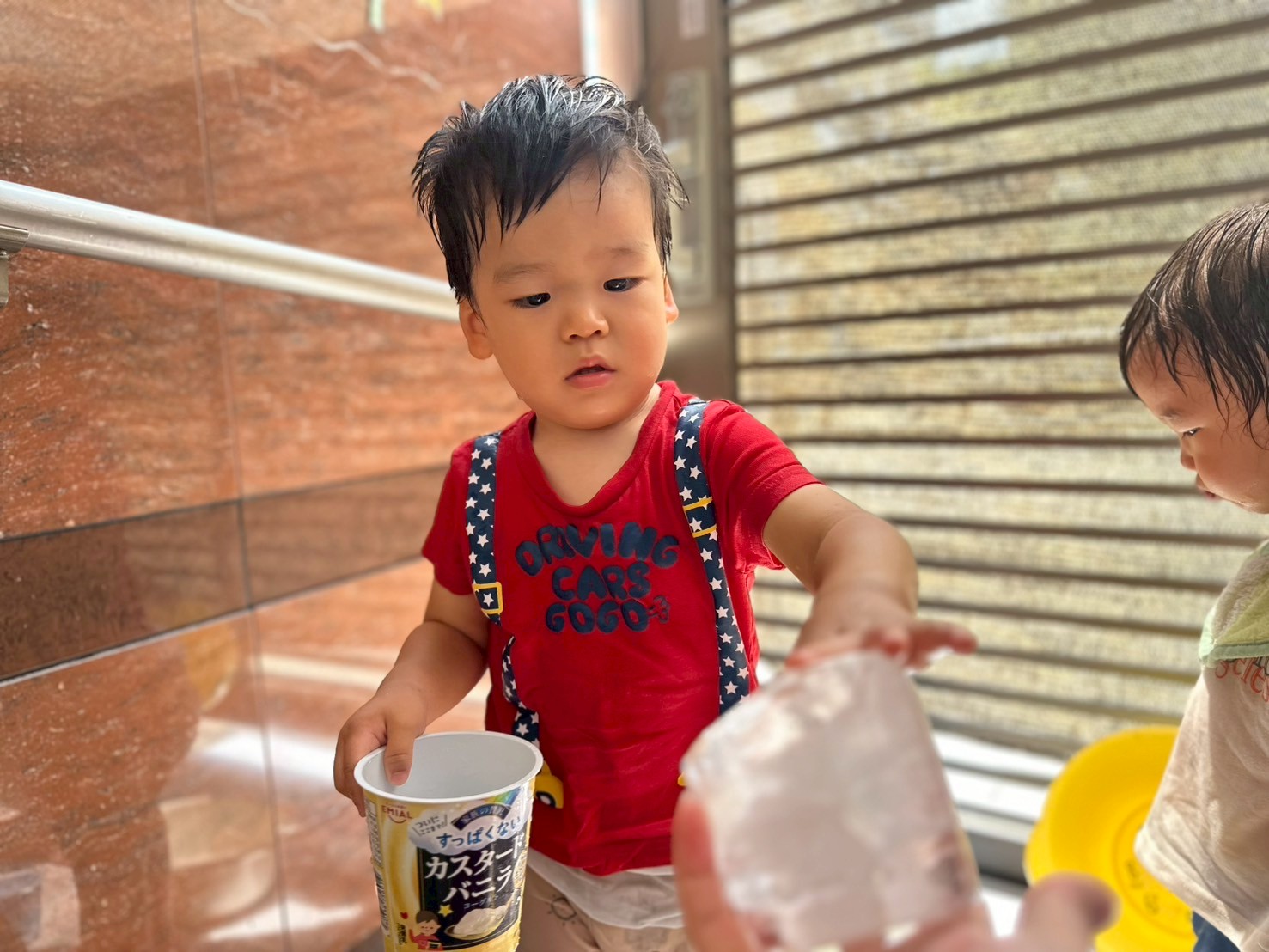 氷遊びでは「つめたい💦」と言いながら触ったり、溶ける様子をみたりして楽しんでいました🧊✨