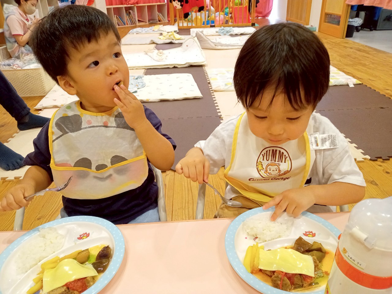 たくさん遊んだ後は嬉しい給食の時間😋❤️