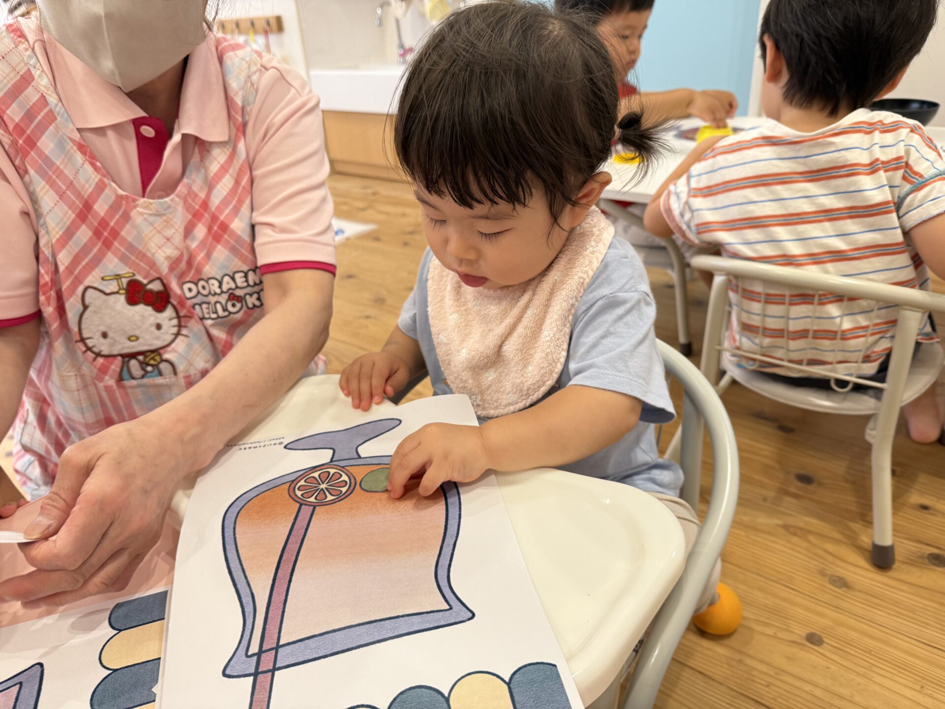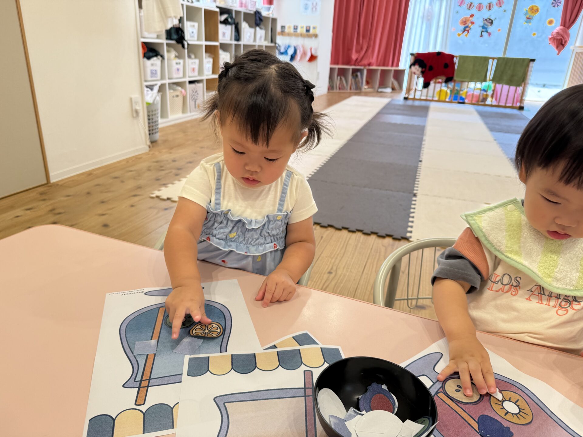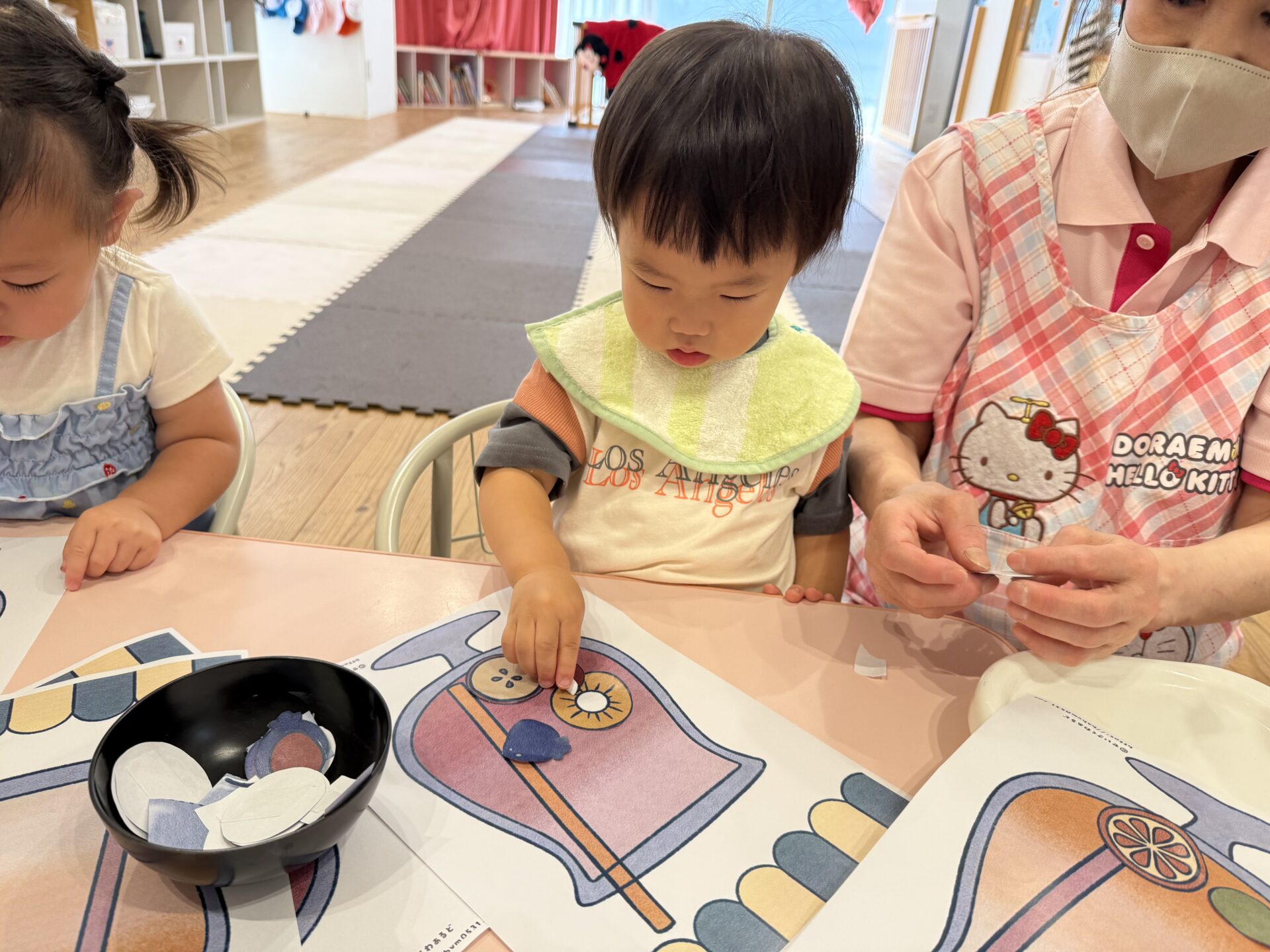 月齢の高いお友達はのりを使って貼っていき、低いお友達はテープを剥がして貼っていきました😆⭐️