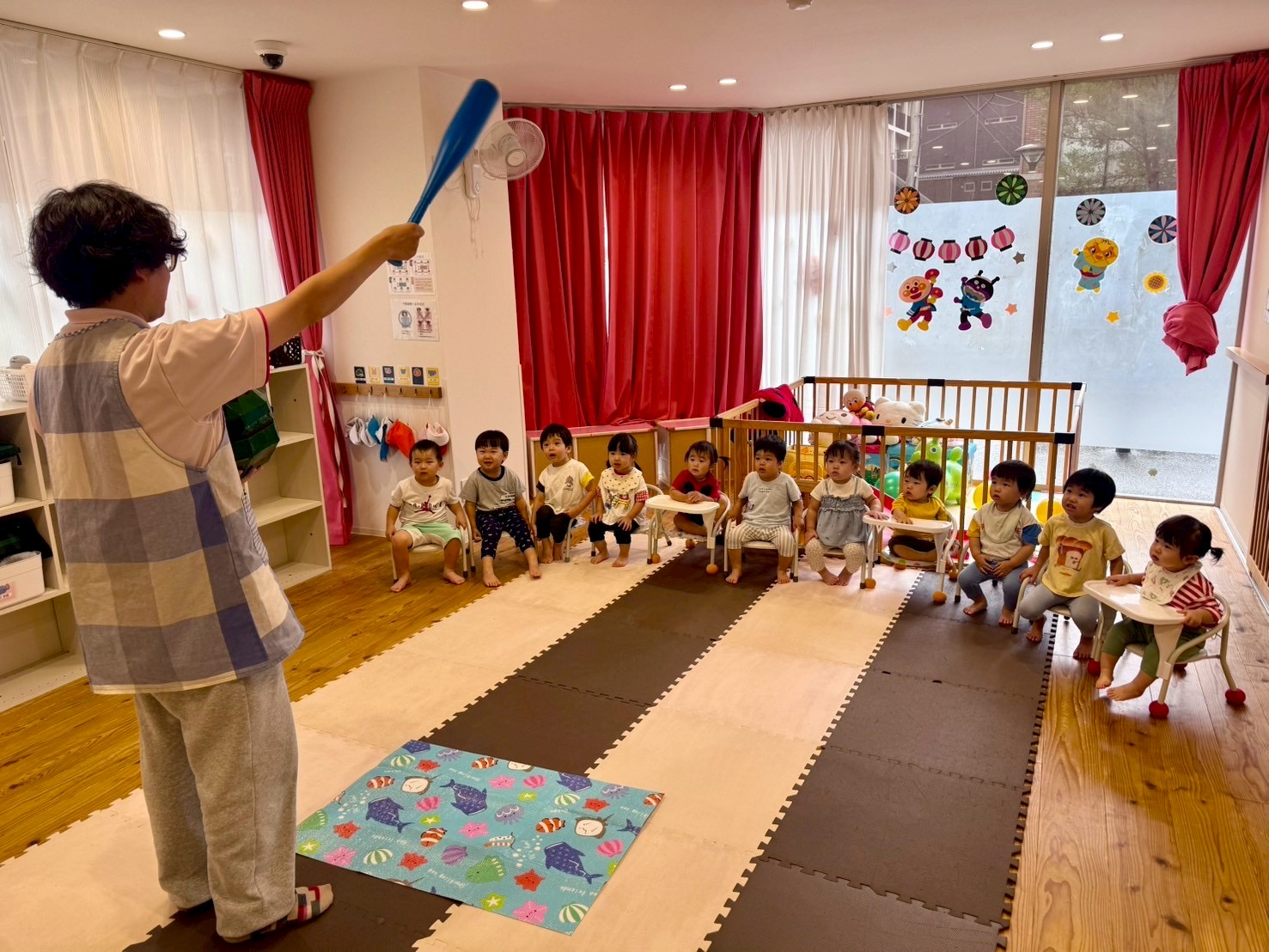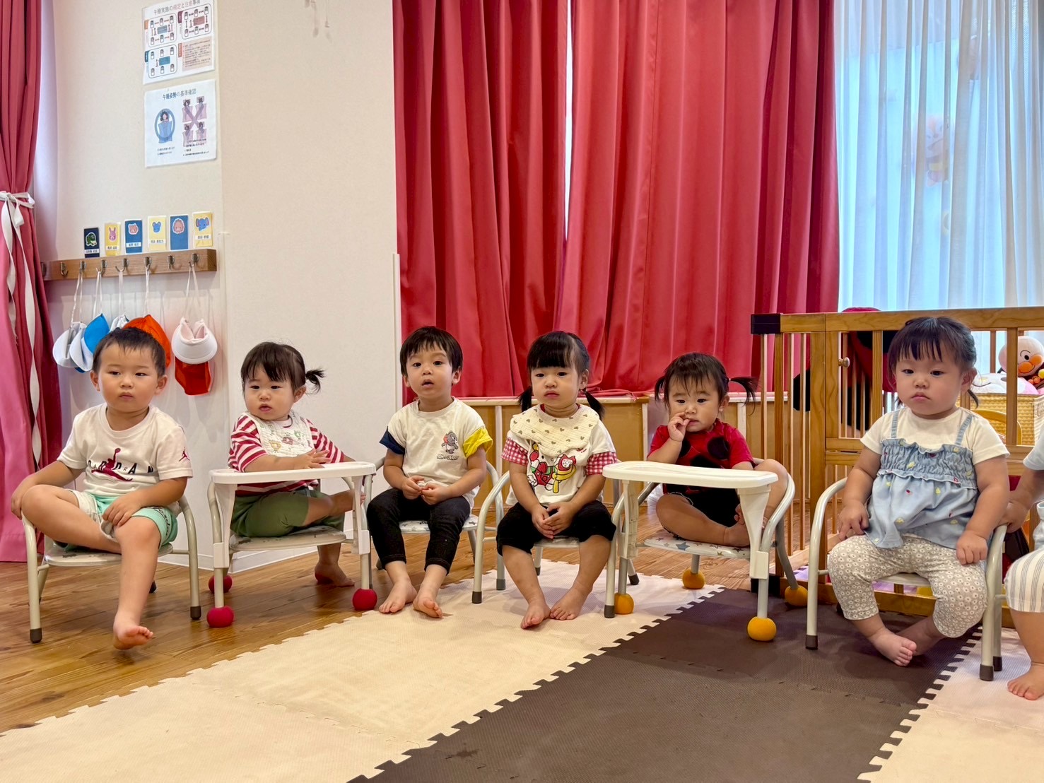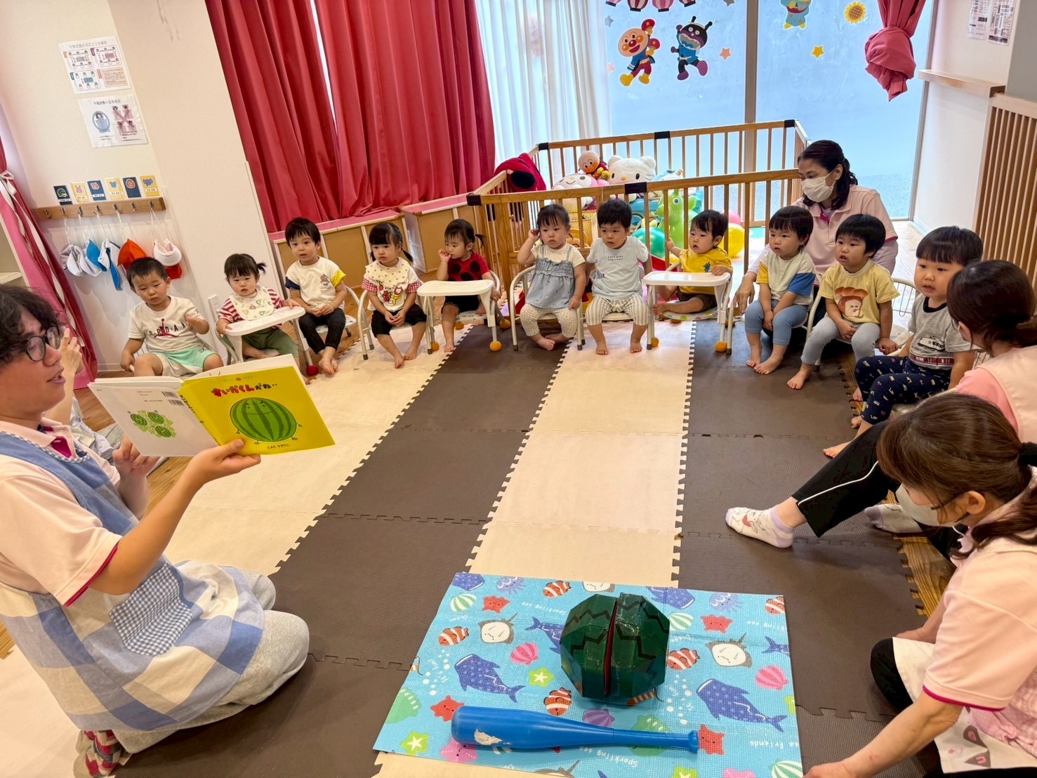そして、お待ちかねのスイカ割り!の前に…みんなでお椅子に座って、スイカの絵本を見ました🍉みんな夢中で見ていましたよ👀