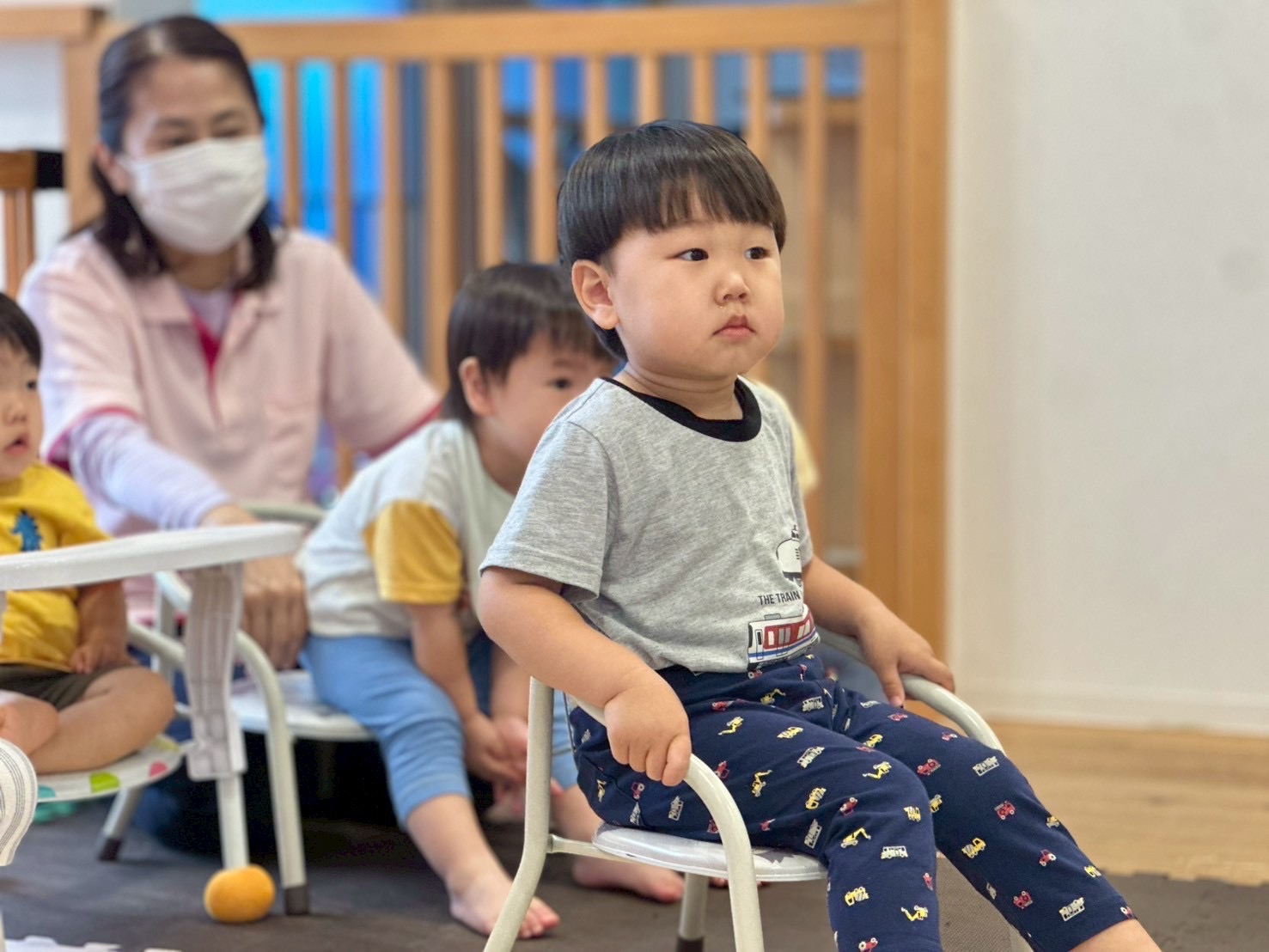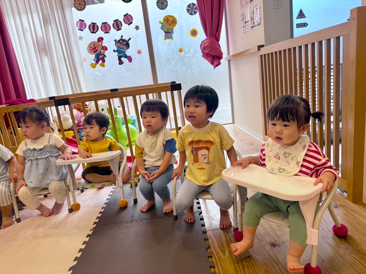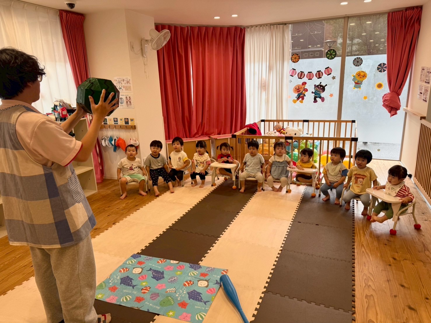 そして、お待ちかねのスイカ割り!の前に…みんなでお椅子に座って、スイカの絵本を見ました🍉みんな夢中で見ていましたよ👀