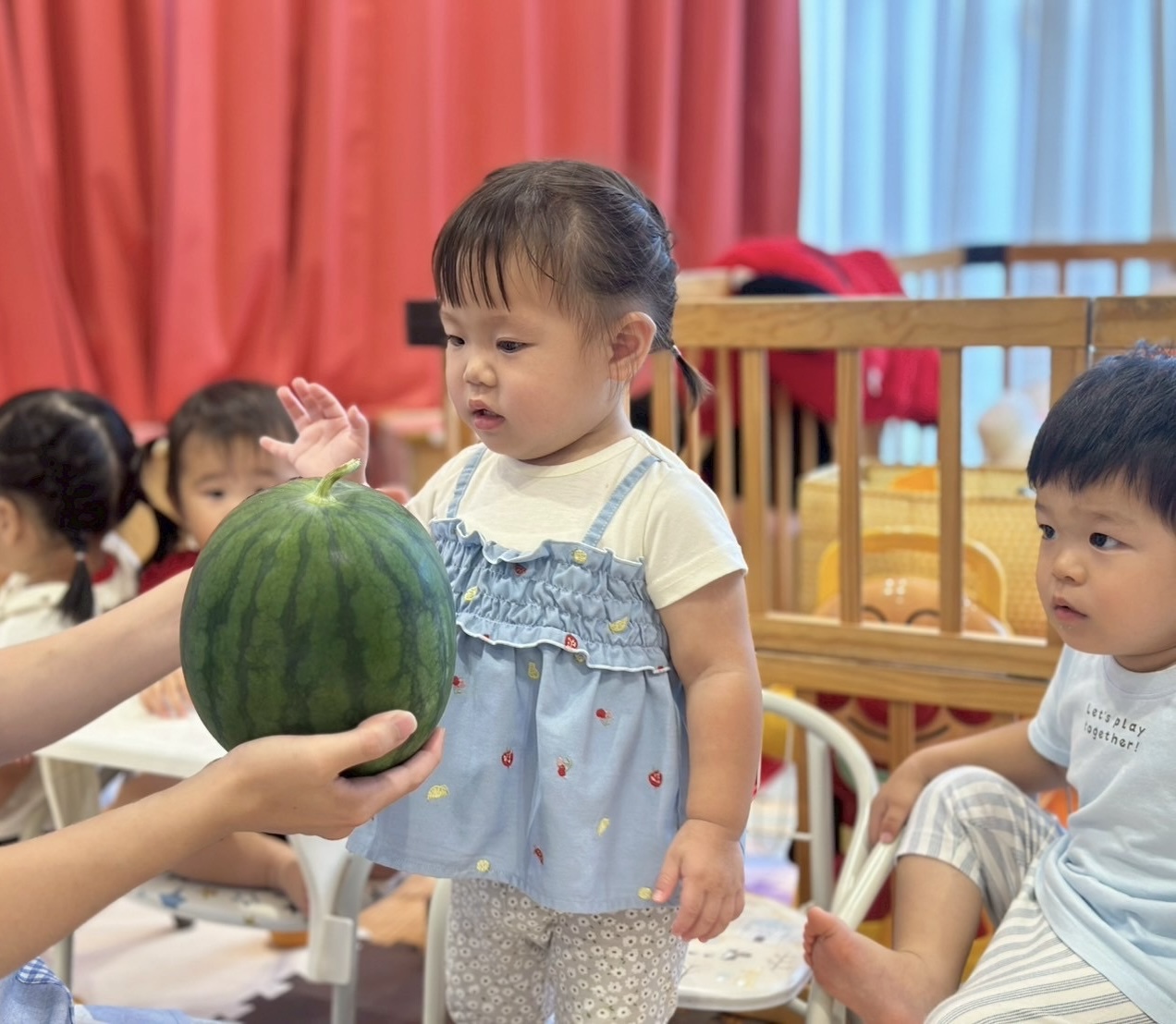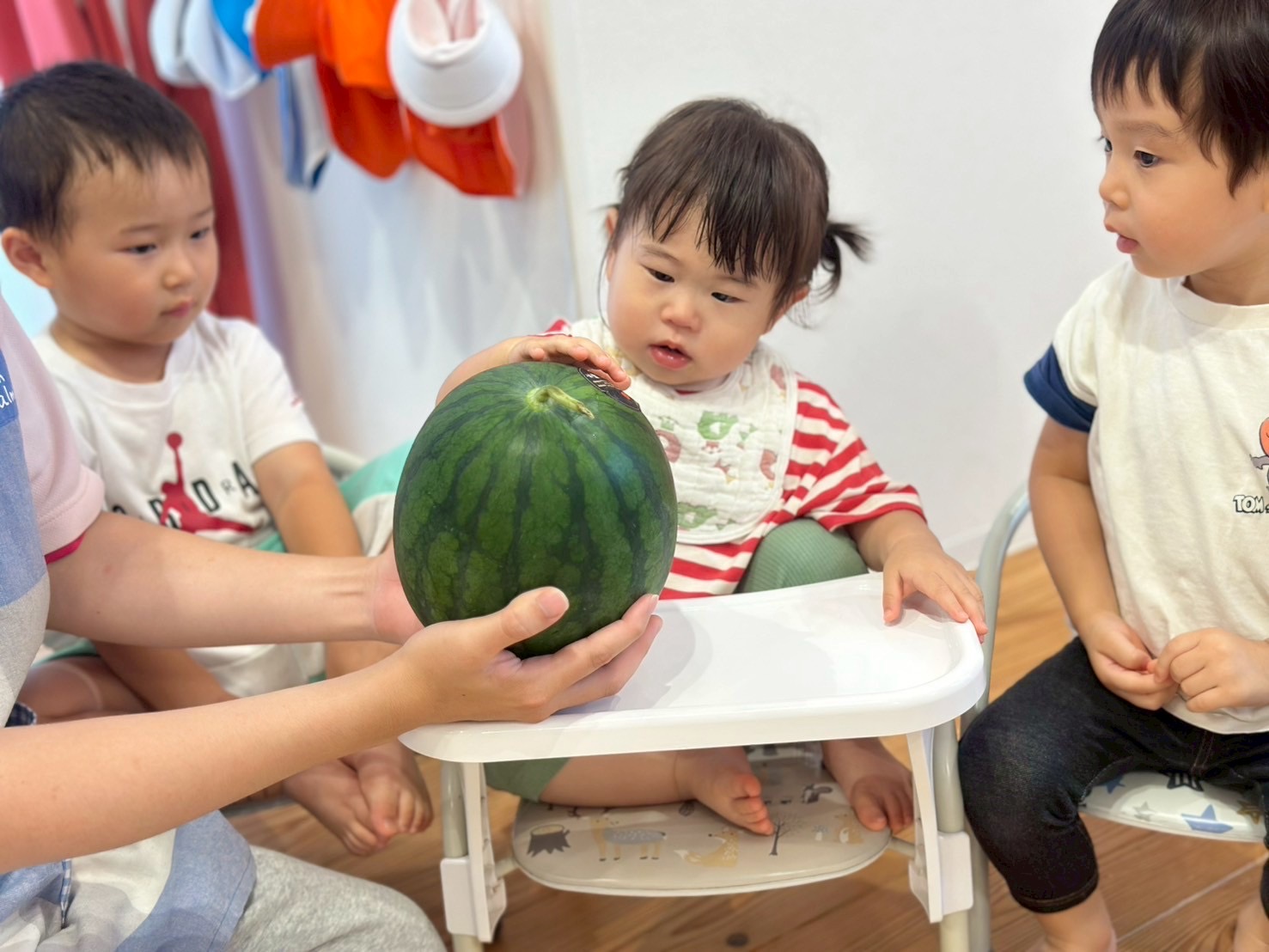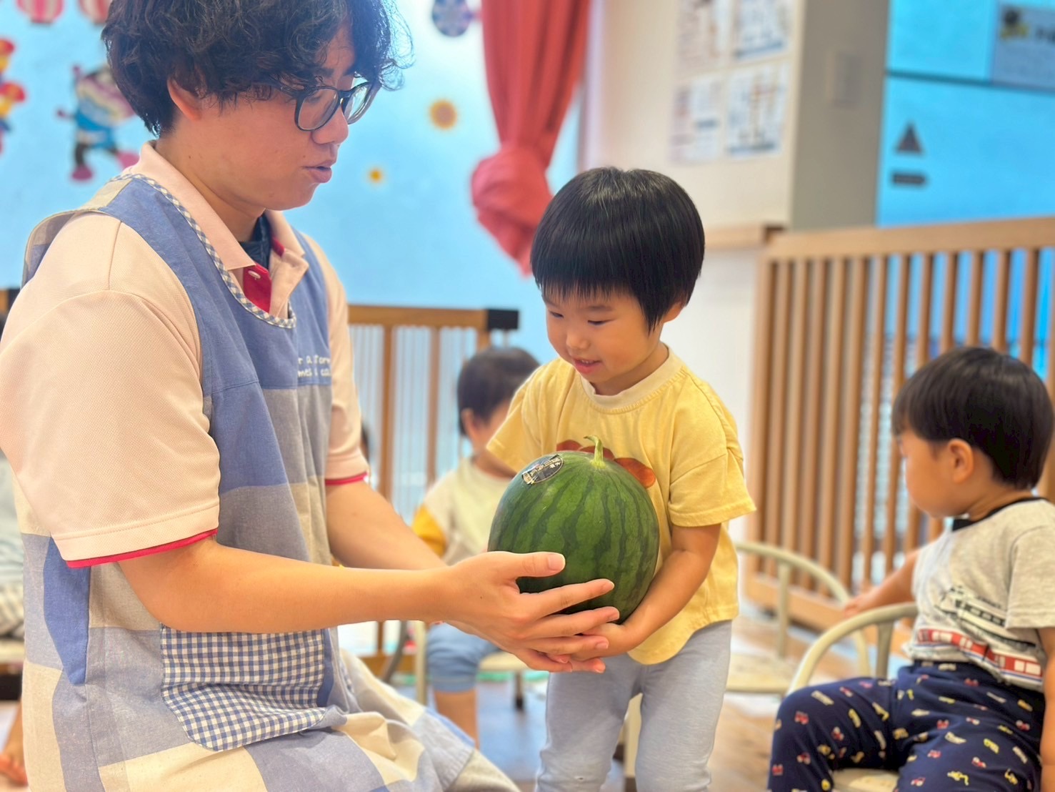 そして本物のスイカにみんなで触ってみたり、持ってみたりして重さを感じました🍉