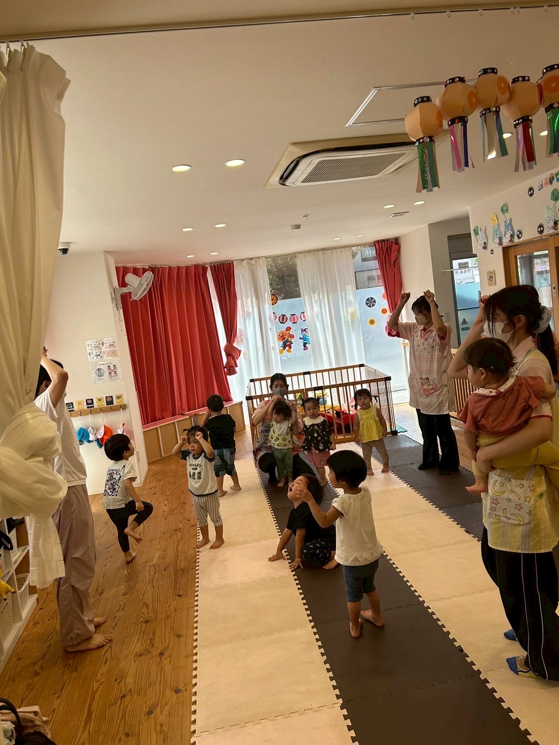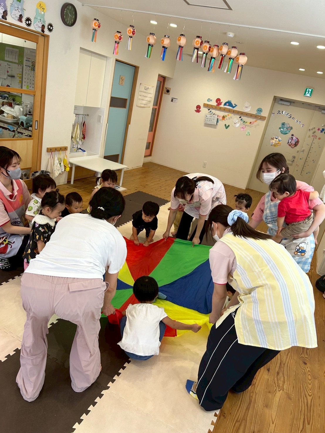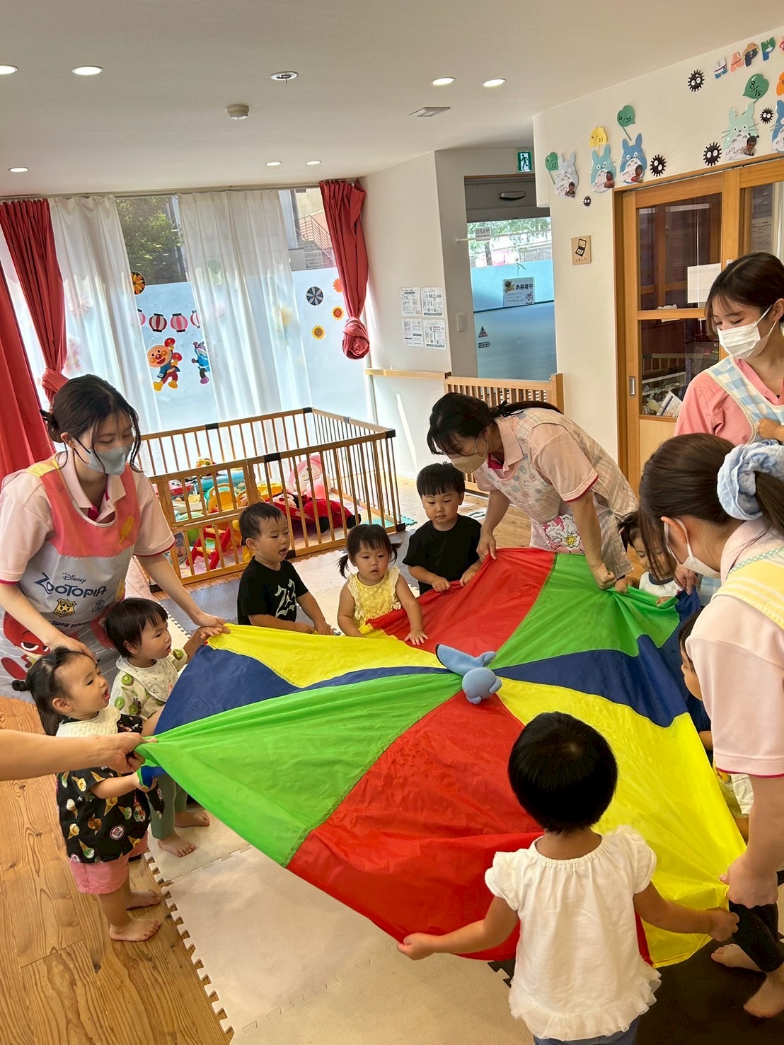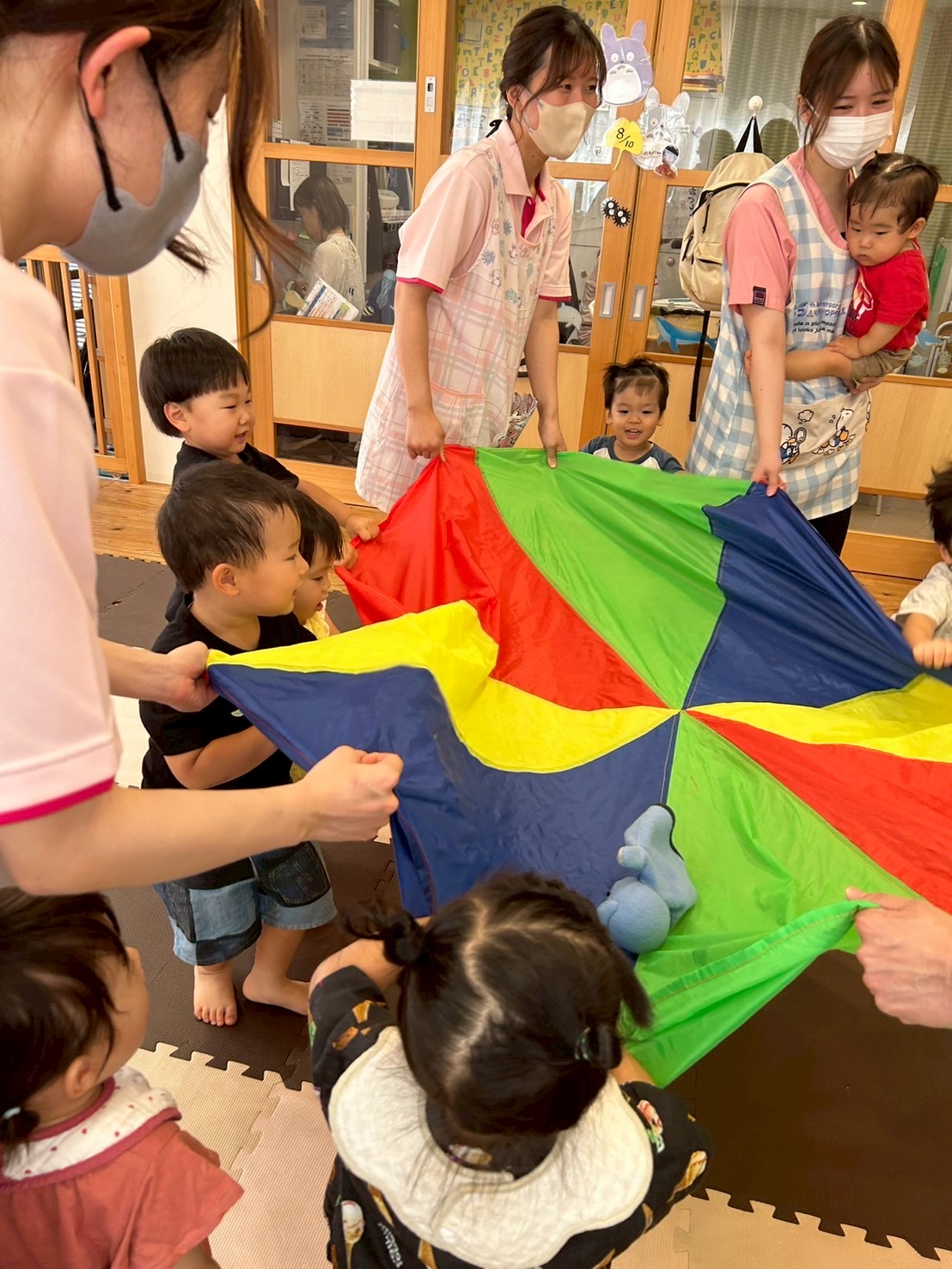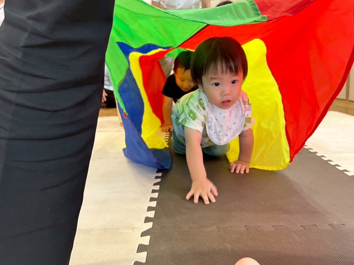 続いてはパラバルーンを持ってクマさんダンス🎶ネズミさんは真ん中でお休みです😪