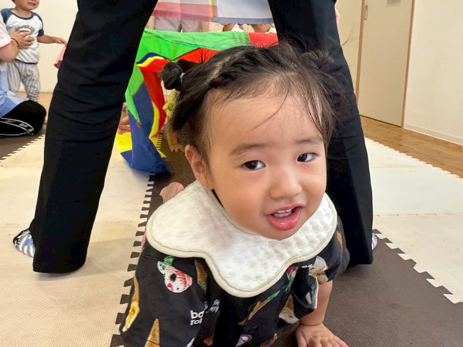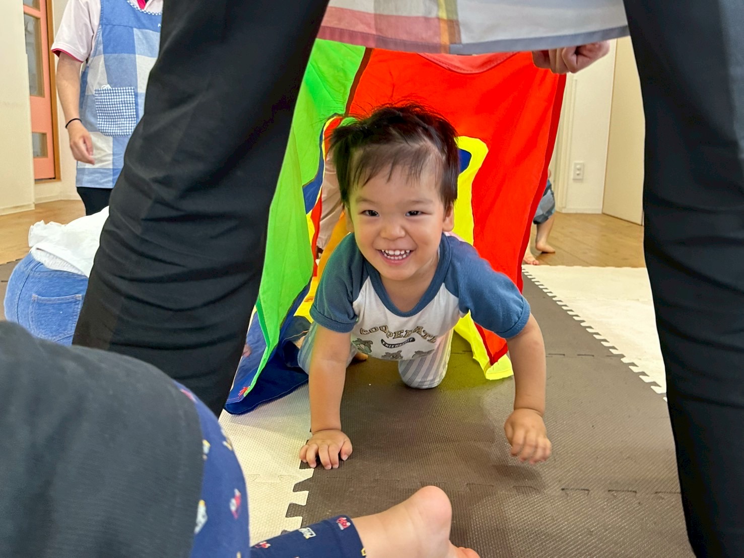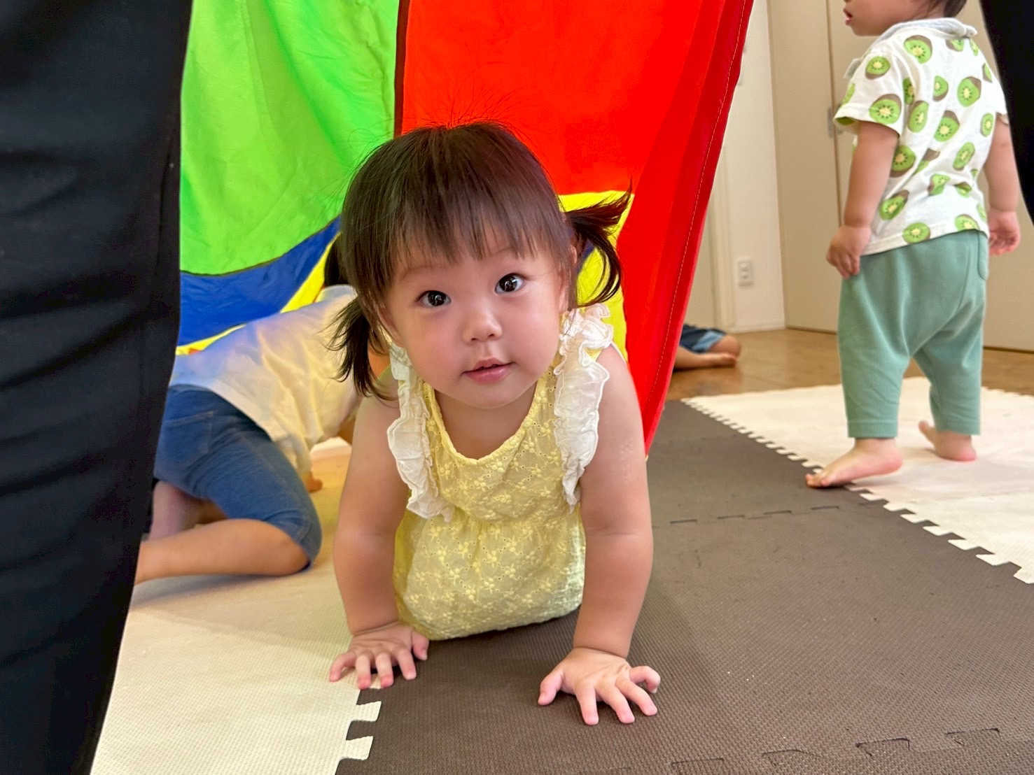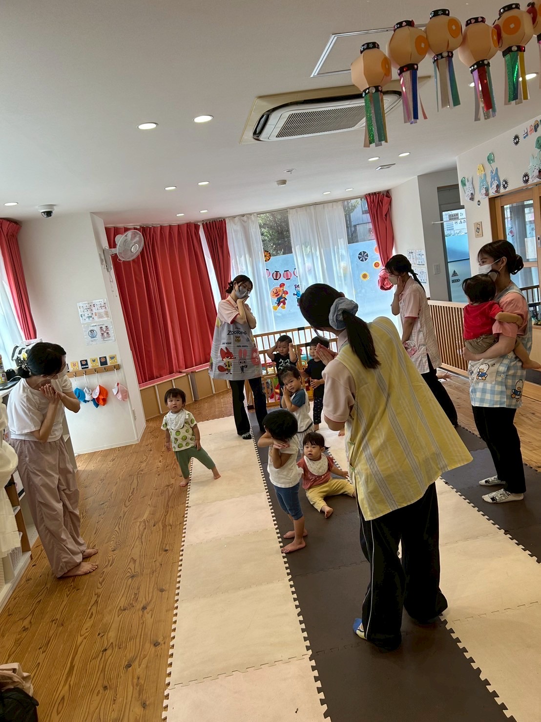 続いてはパラバルーンを持ってクマさんダンス🎶ネズミさんは真ん中でお休みです😪