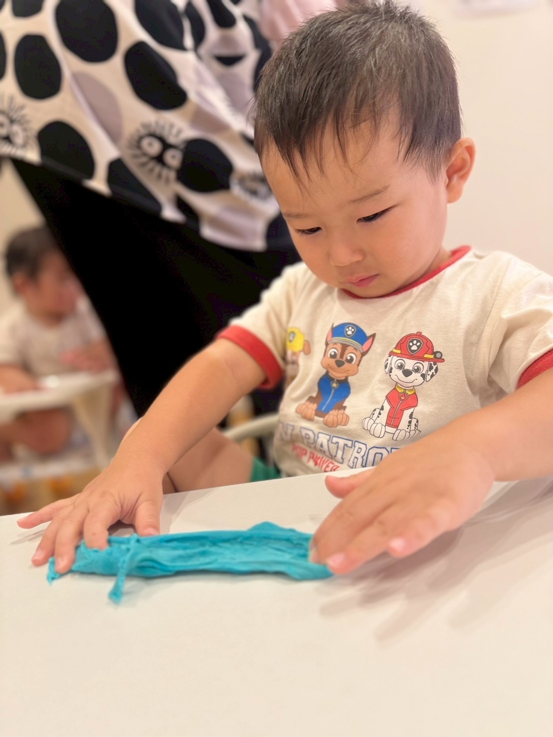 びよーんと伸びたりくるくるまとまったり、不思議な感触に興味津々な子どもたちでした👀⟡.*