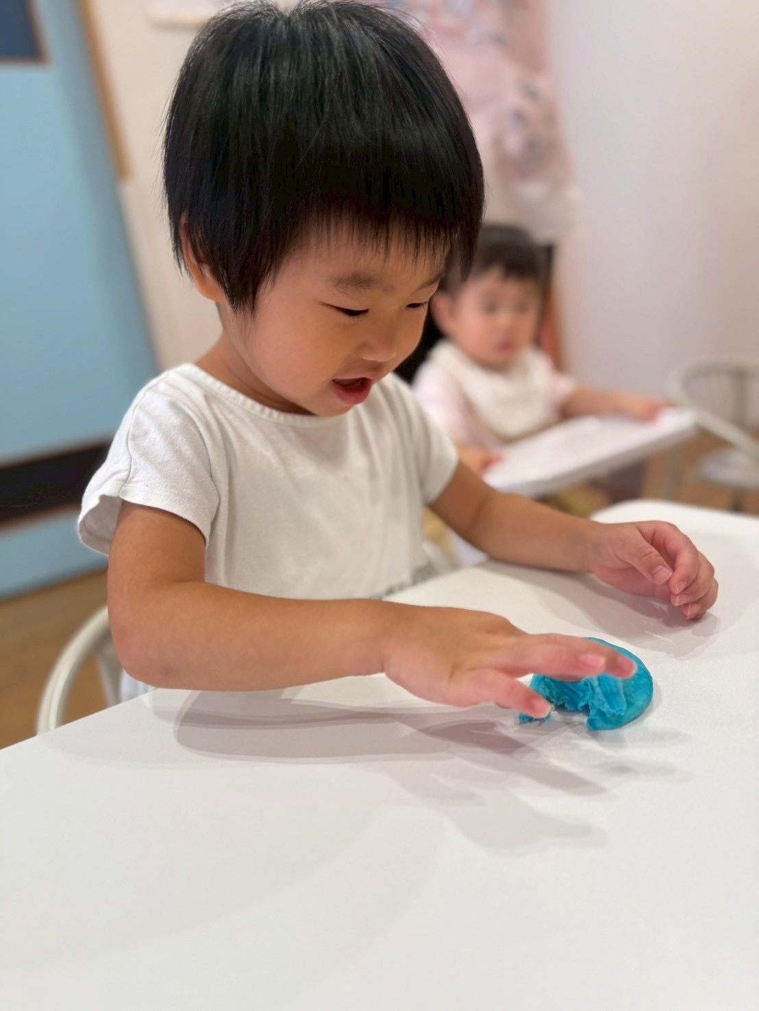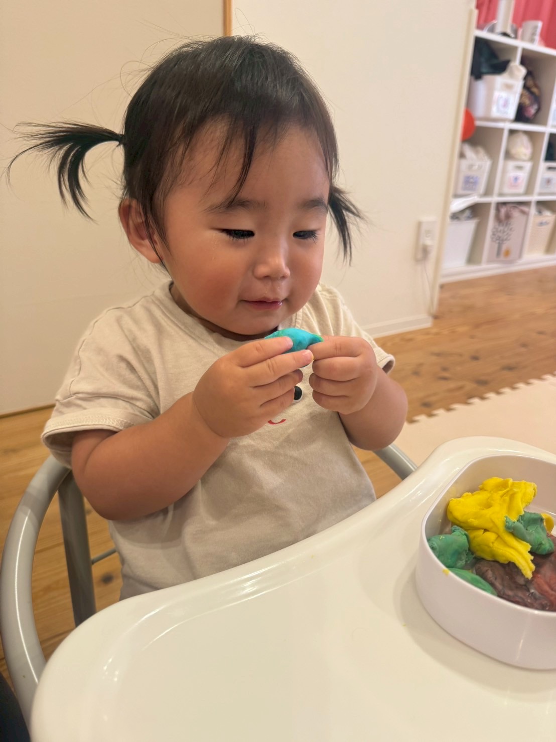 いろんな色で作ったカラフルな小麦粉粘土で遊びました🩵💜💛