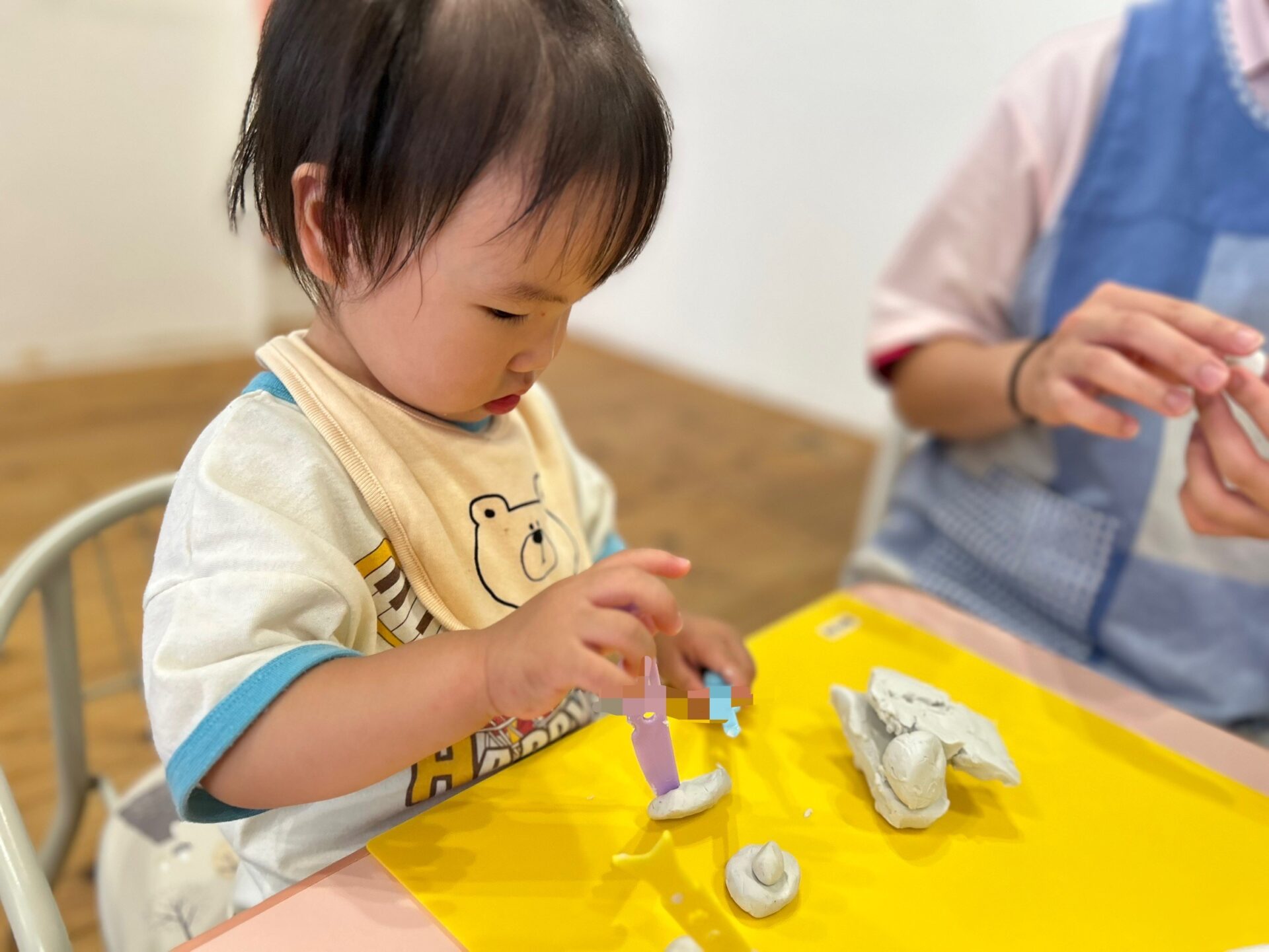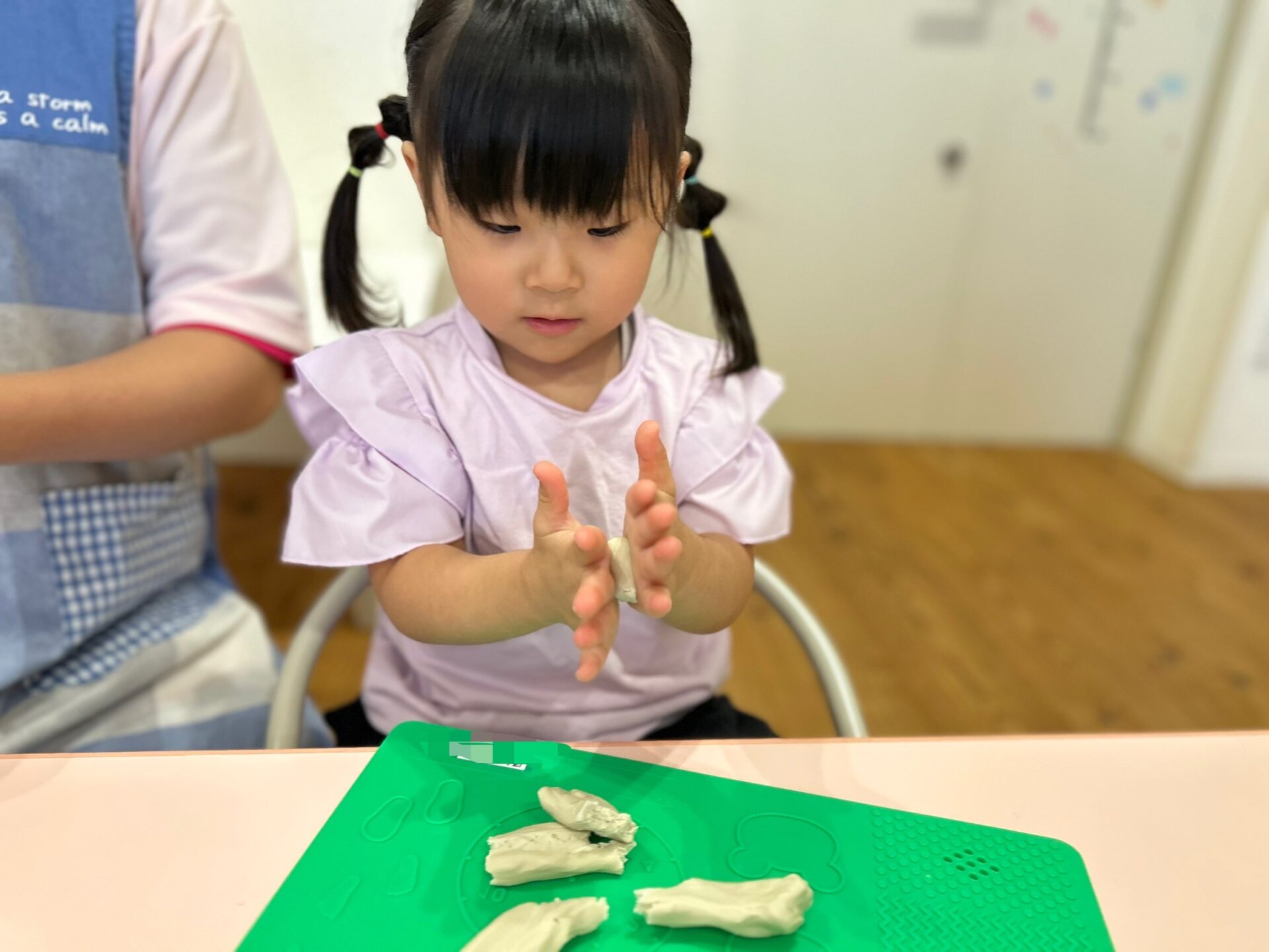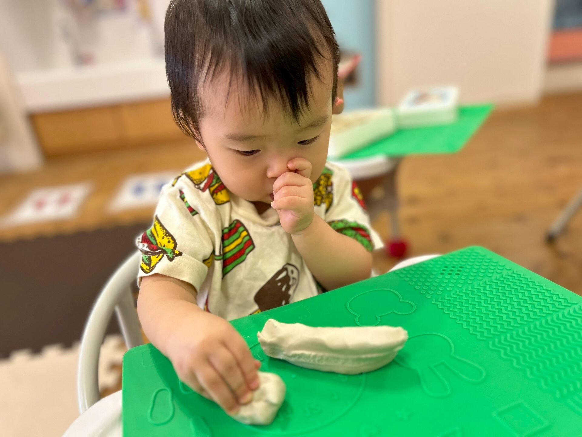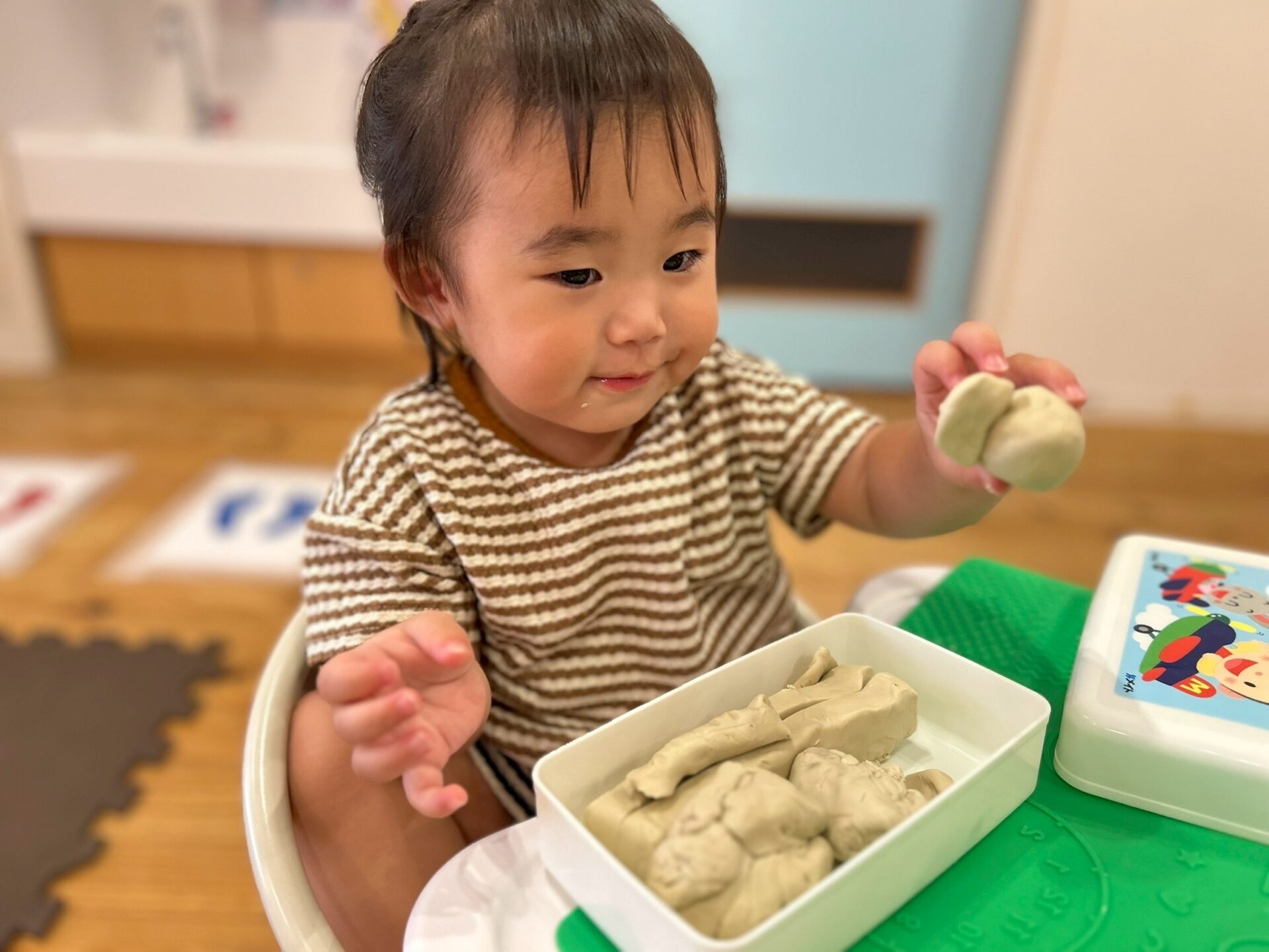 粘土遊びもして、丸めたり、こねたり、粘土板にくっつけてお星様や丸の形をつけたりして楽しまれていましたよ☺️