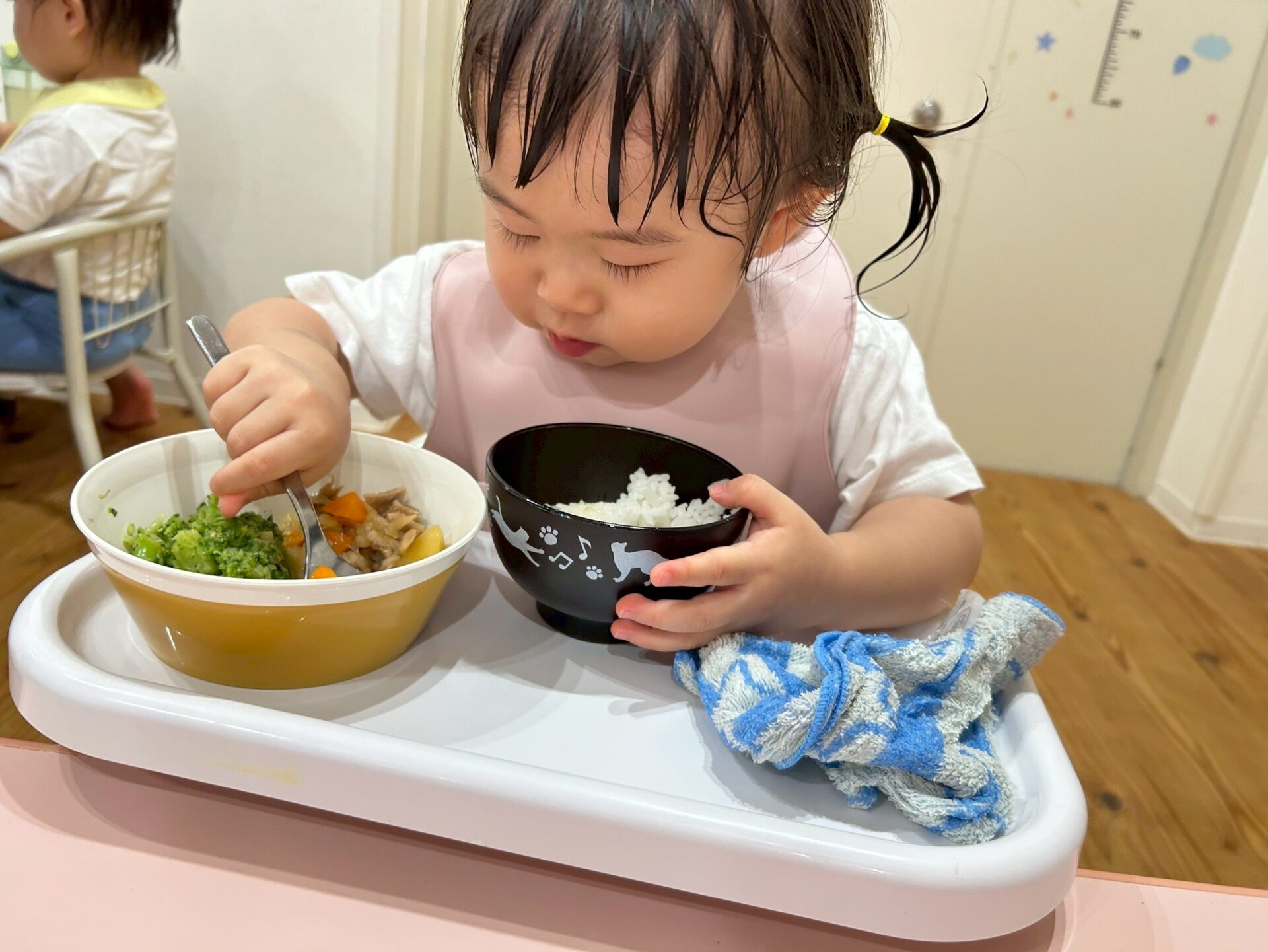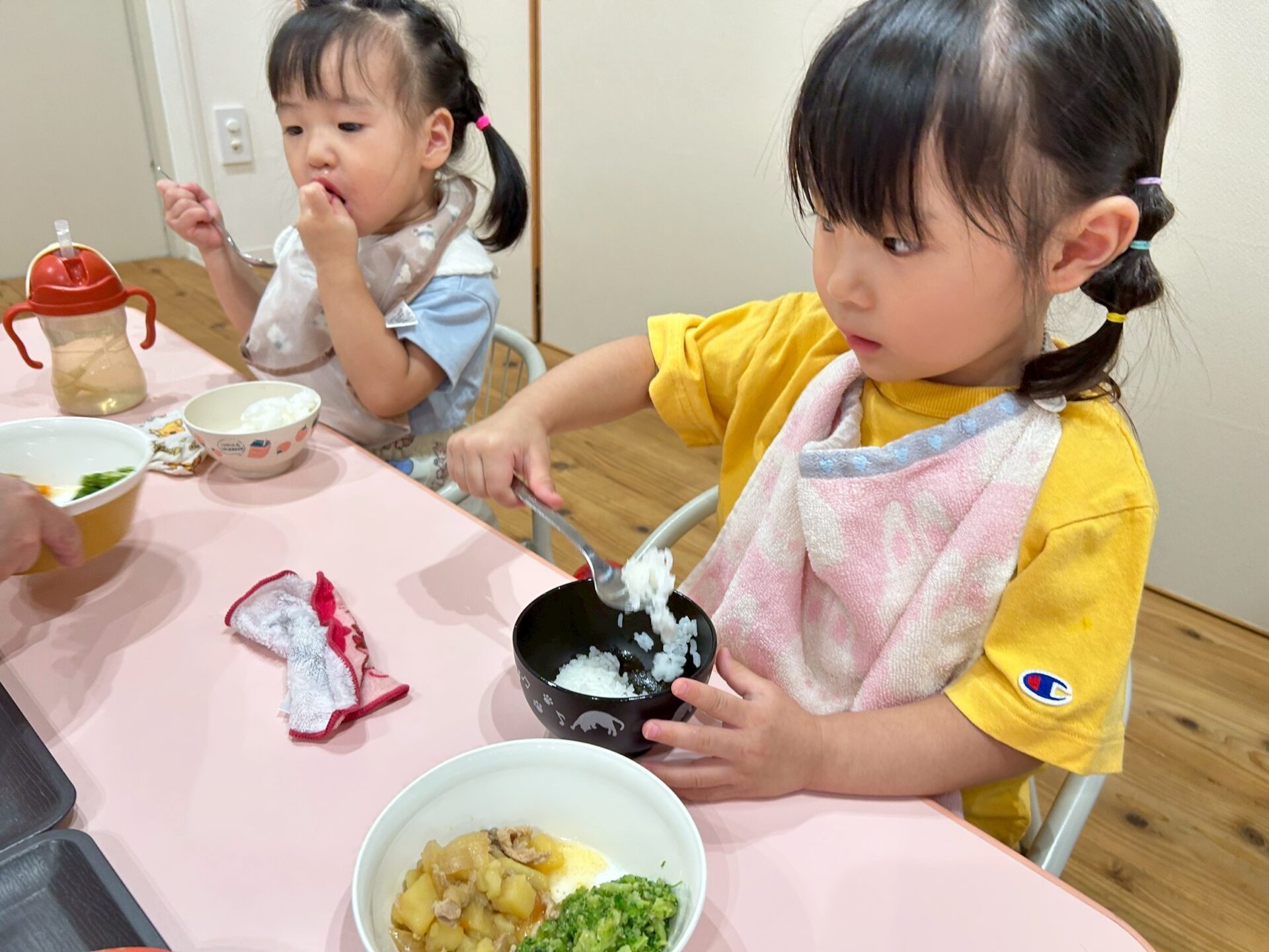 沢山遊んだ分、お腹がすいたのでしょうね、みんなモリモリと食べ進めています😋