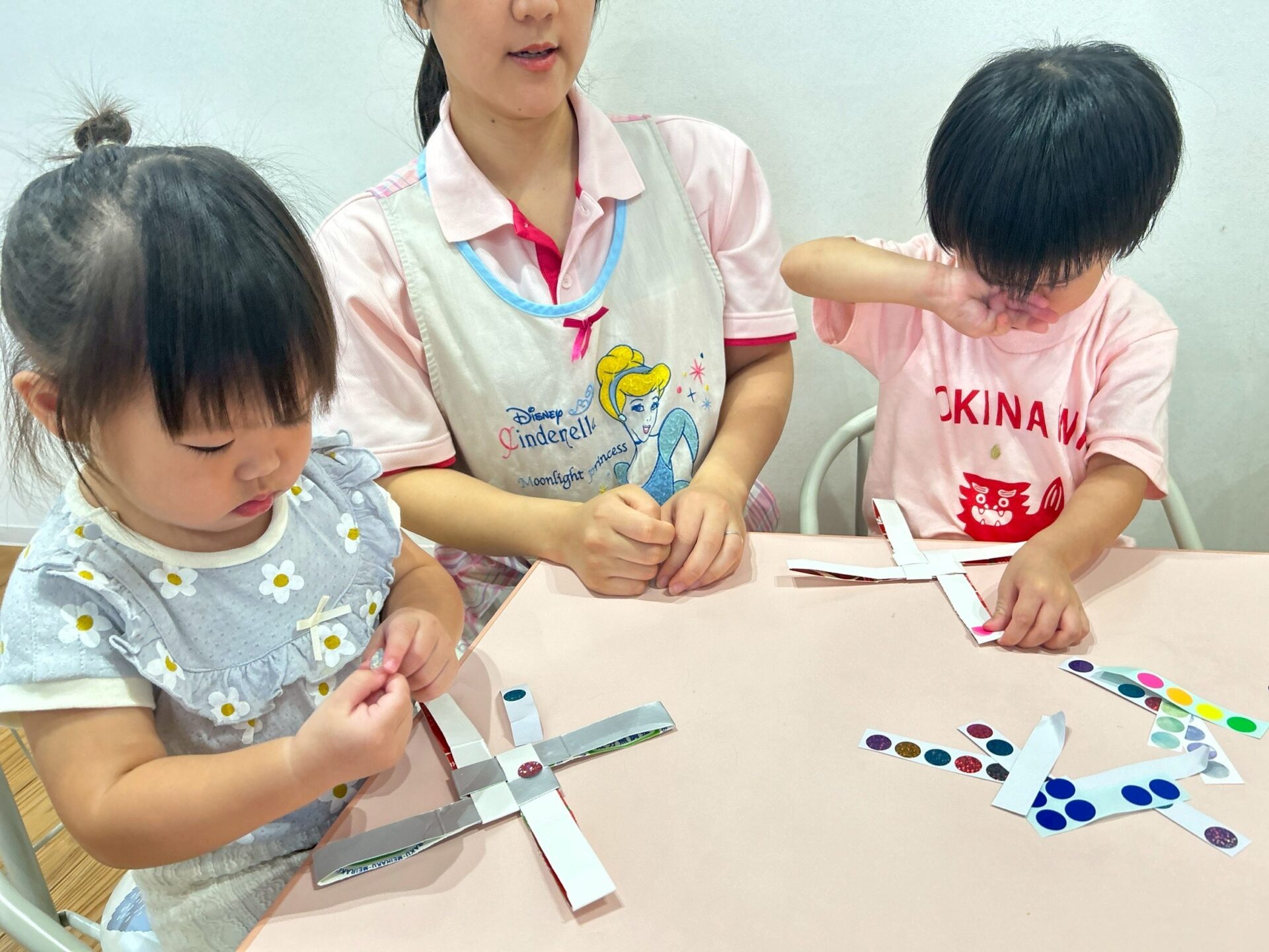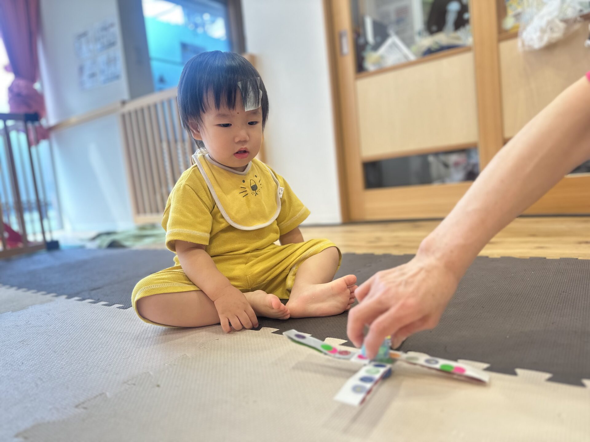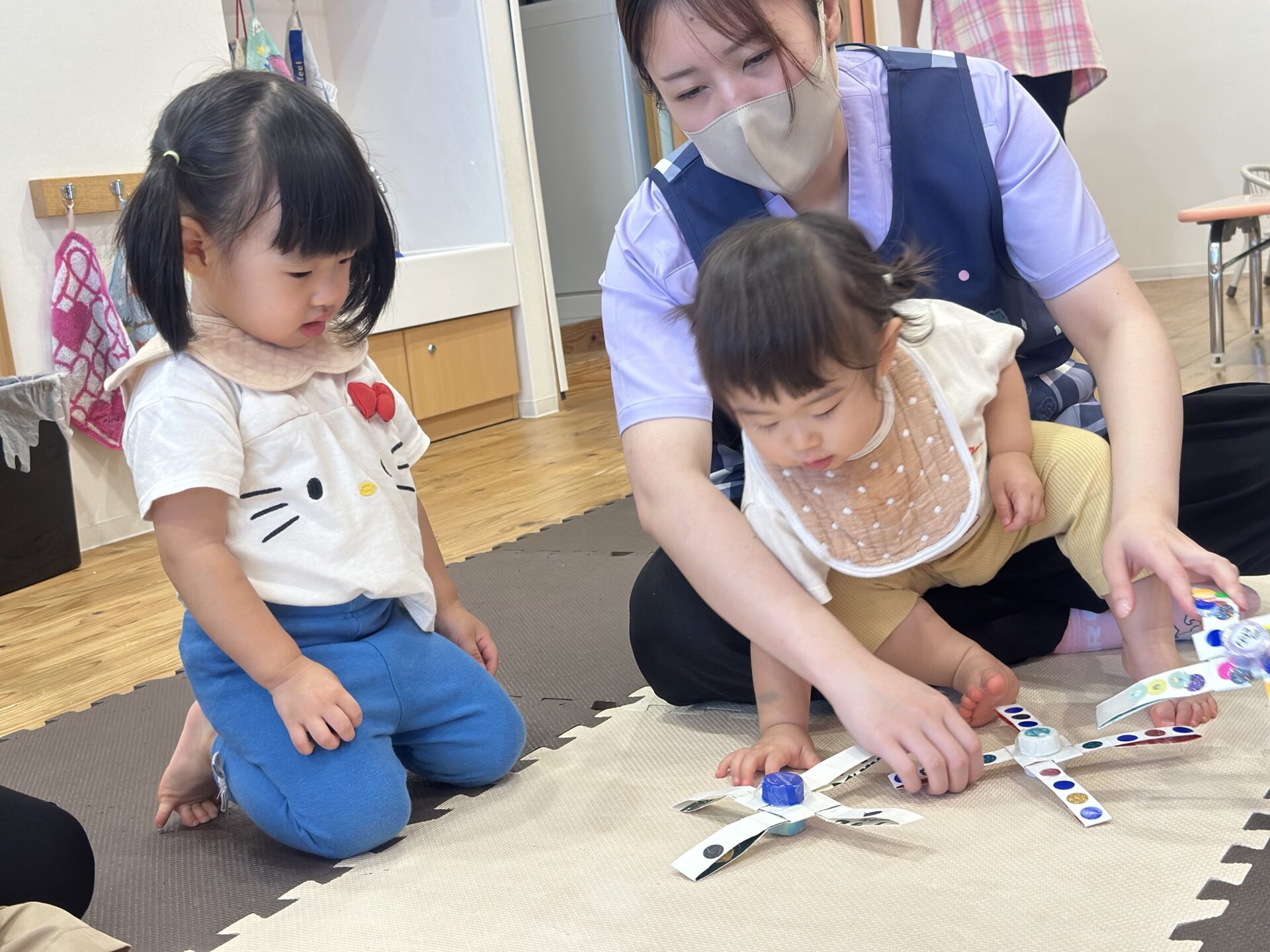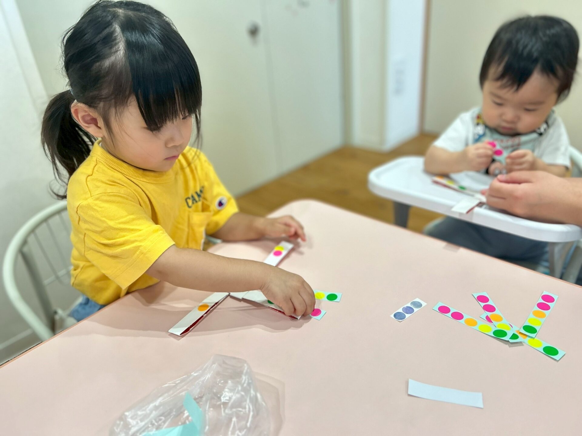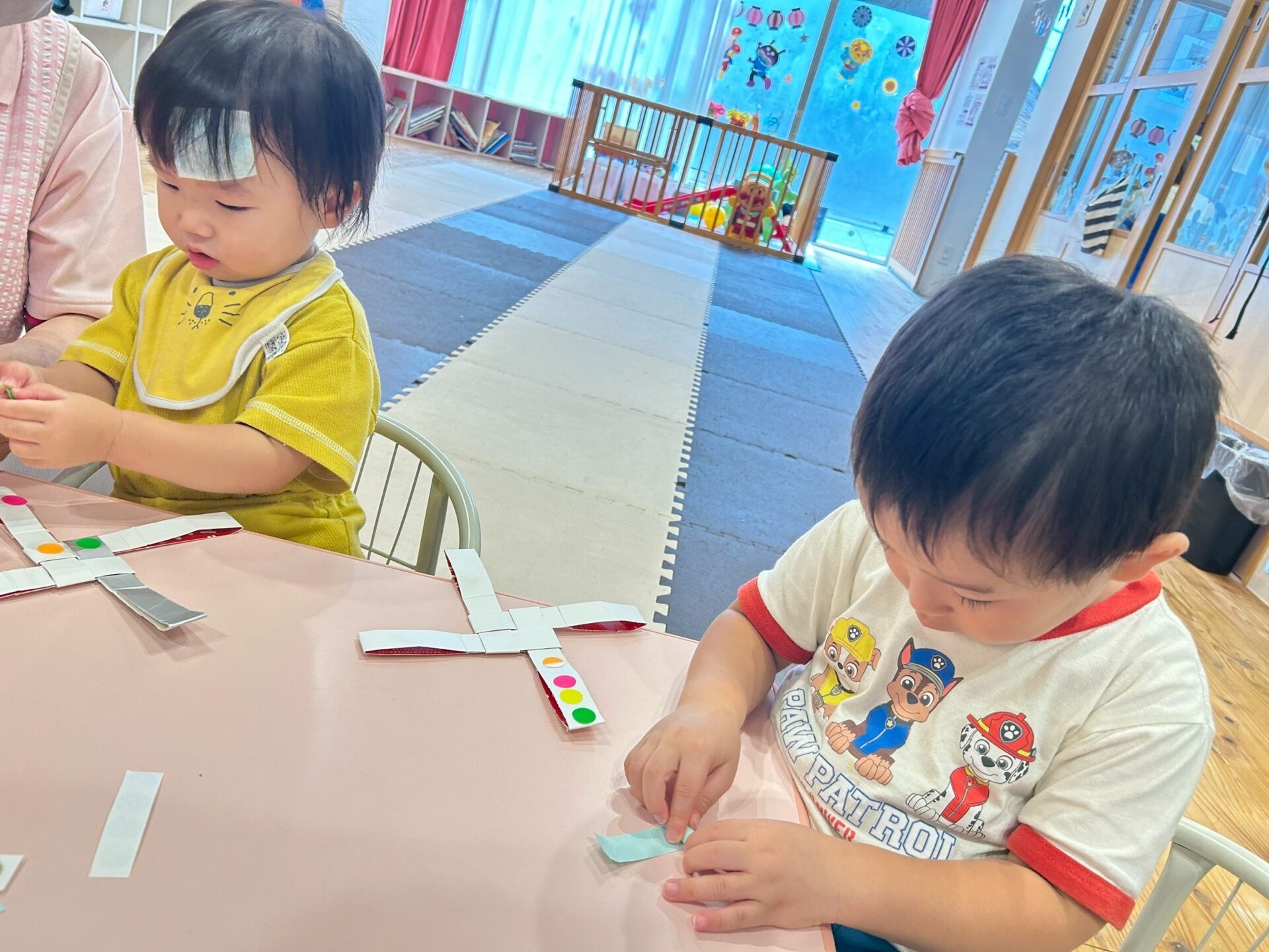 キラキラ光るものや、自分の好きな色など、好きなものを選んで上手にぺたぺた✋🏻✨️