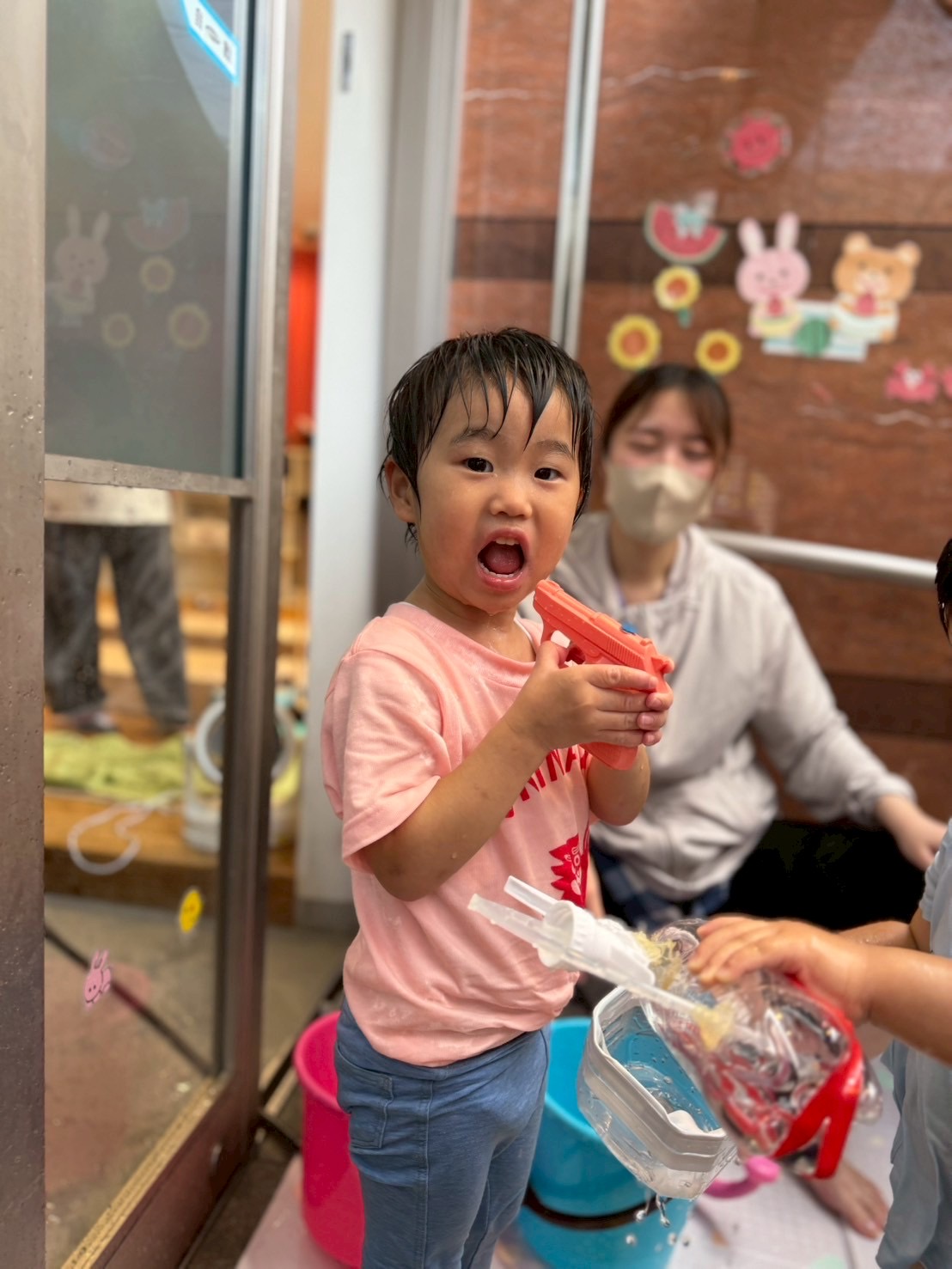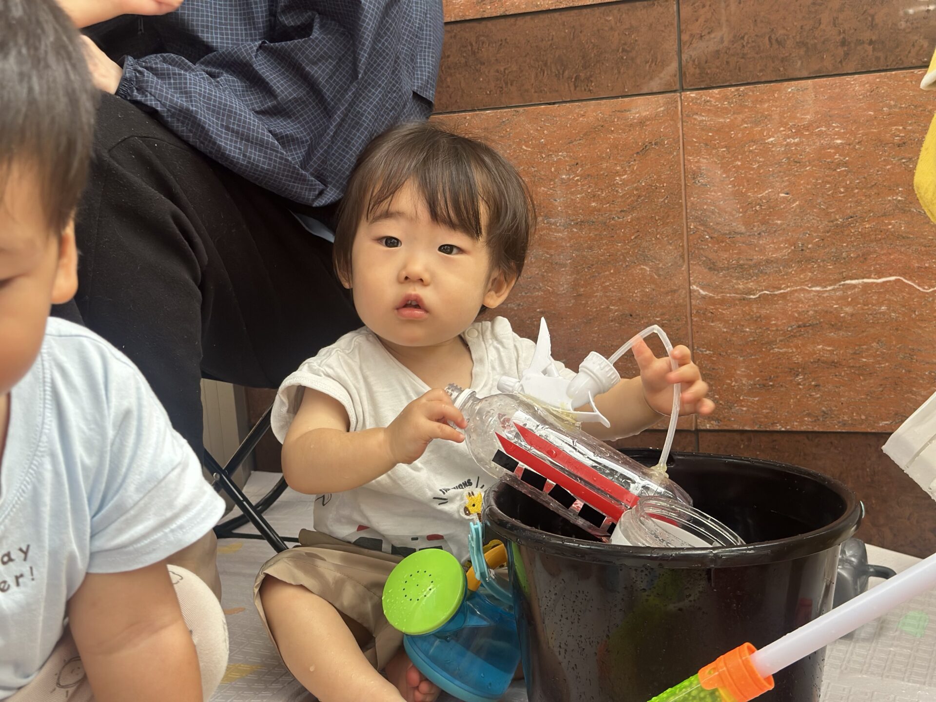 暖かいシャワーだったので、長い時間もにこにこ楽しんで遊べました☁️𓂃 𓈒𓏸💙
