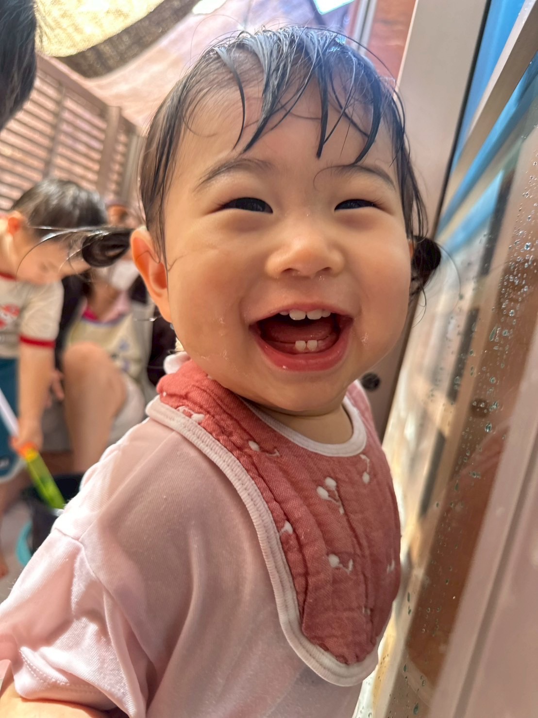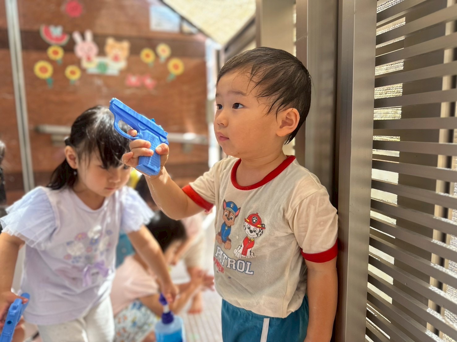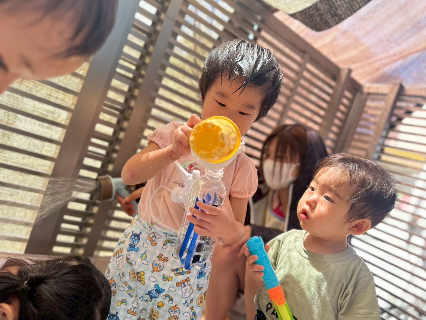 氷などを触って「つめたい😖❄️」と言いながらも氷が溶けるところを見たり、バケツに水を汲んで友達にかけたりと最後までニコニコで楽しんでいました🔫💦