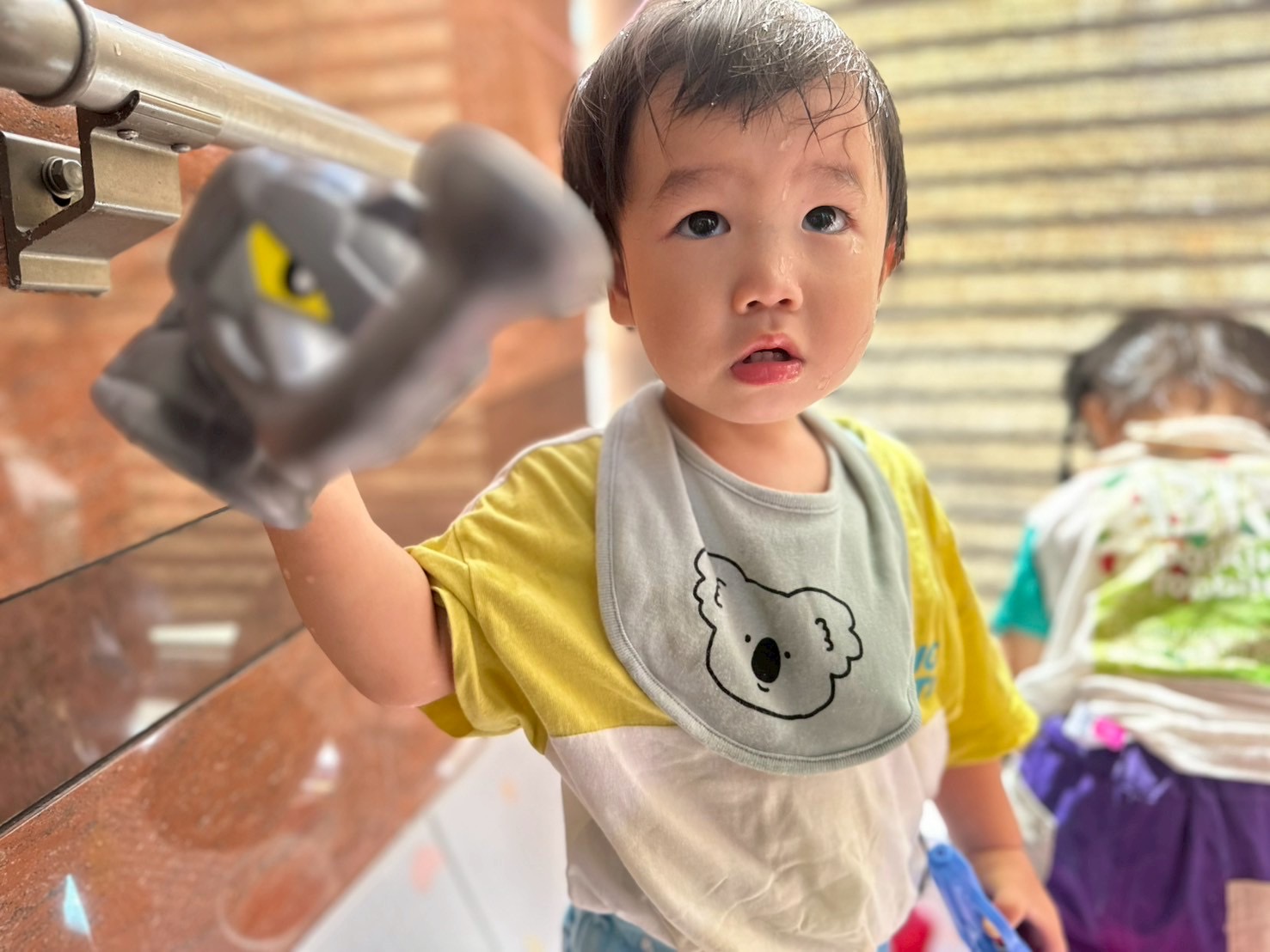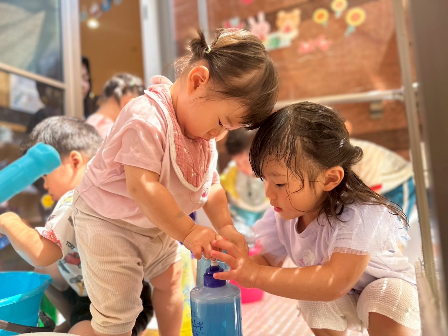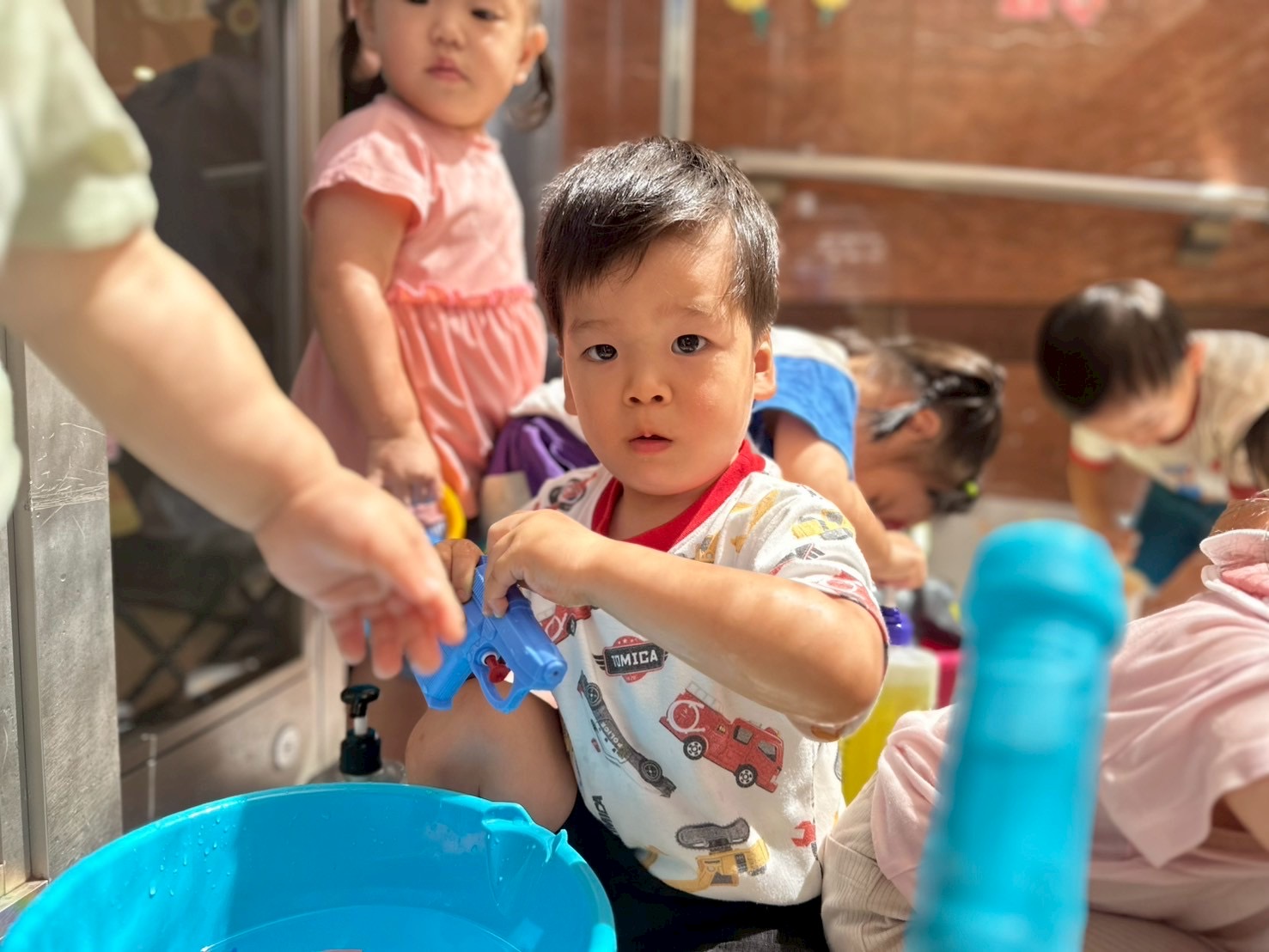 氷などを触って「つめたい😖❄️」と言いながらも氷が溶けるところを見たり、バケツに水を汲んで友達にかけたりと最後までニコニコで楽しんでいました🔫💦