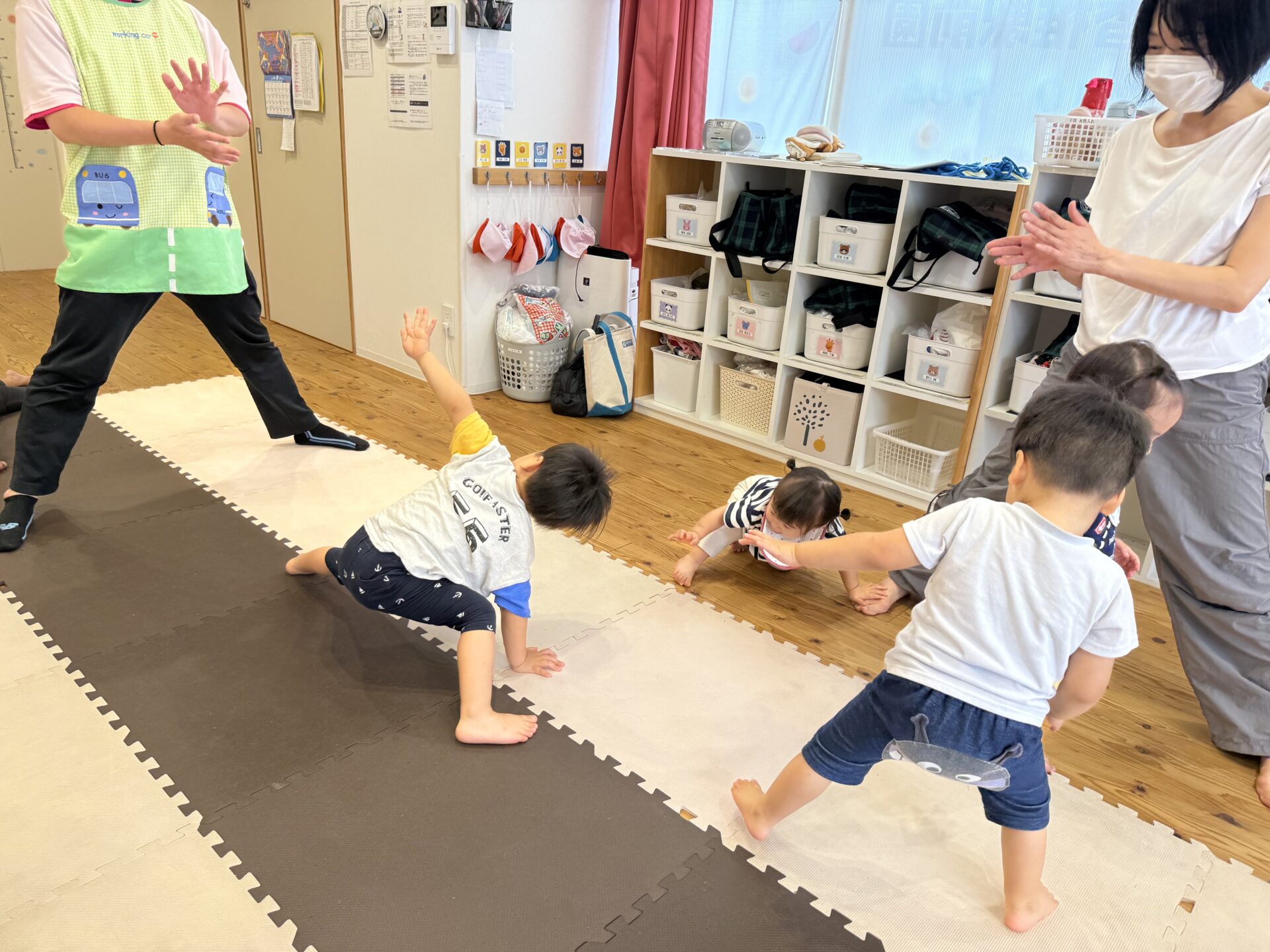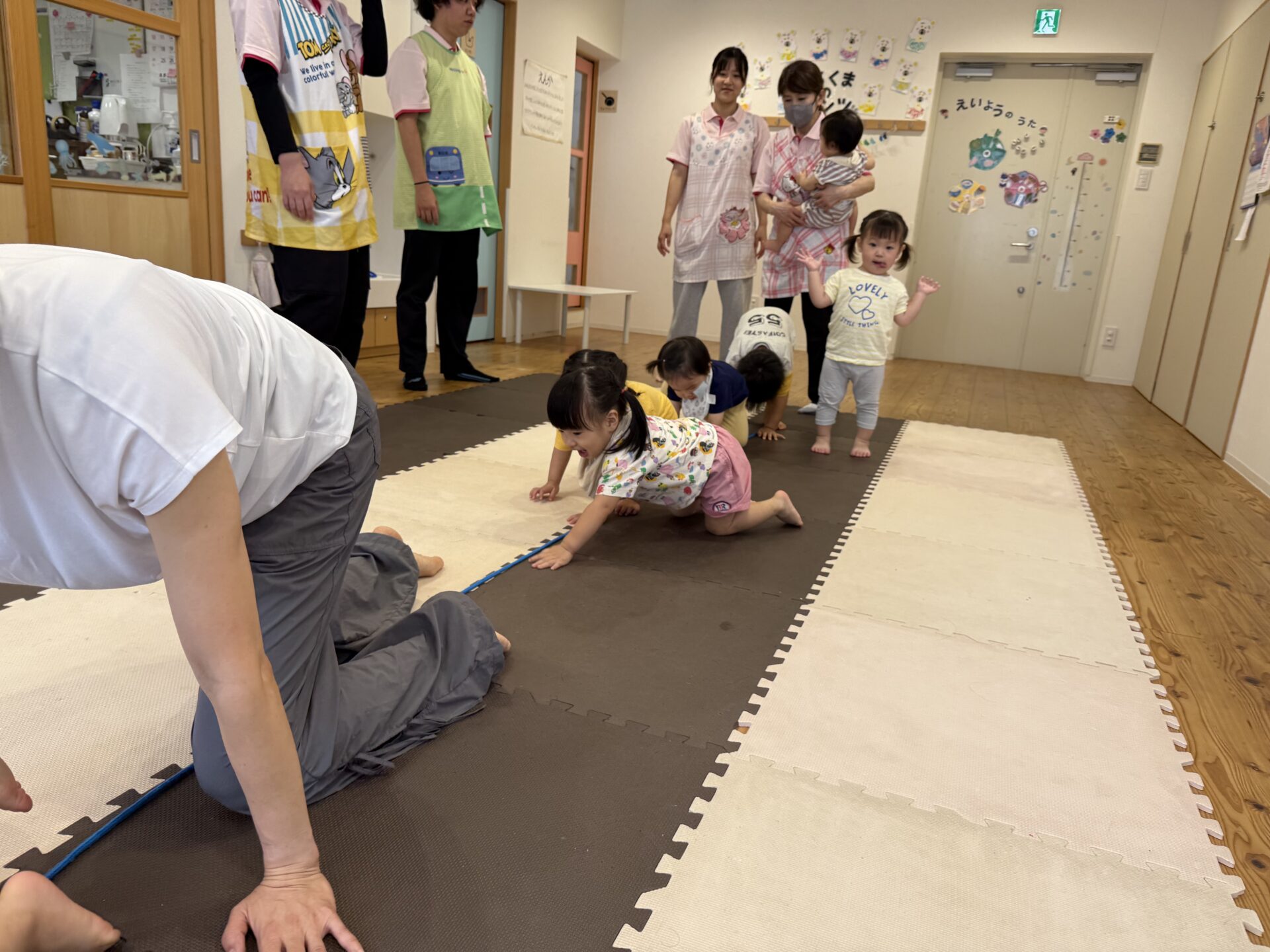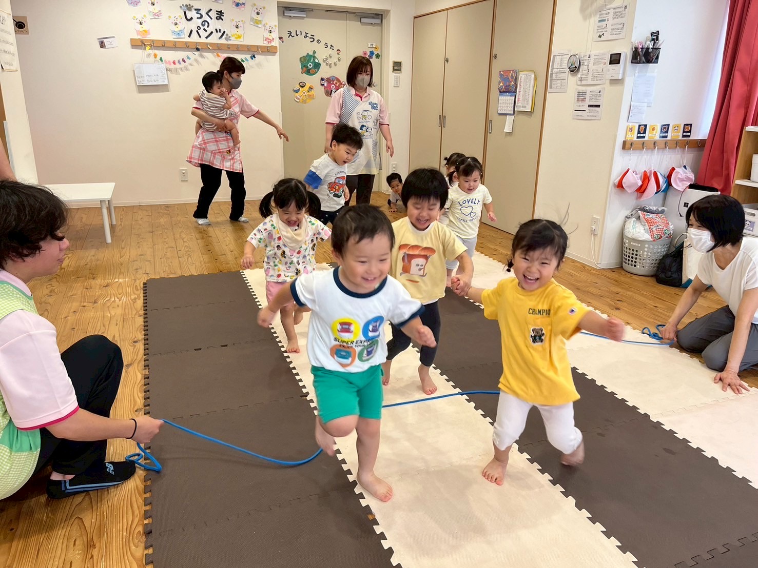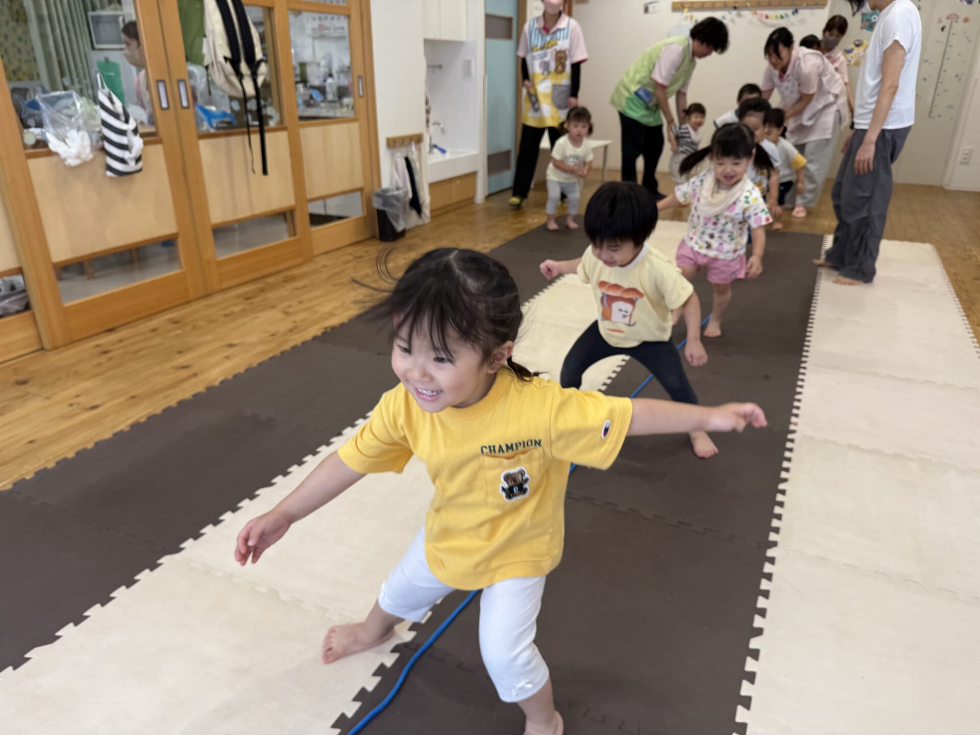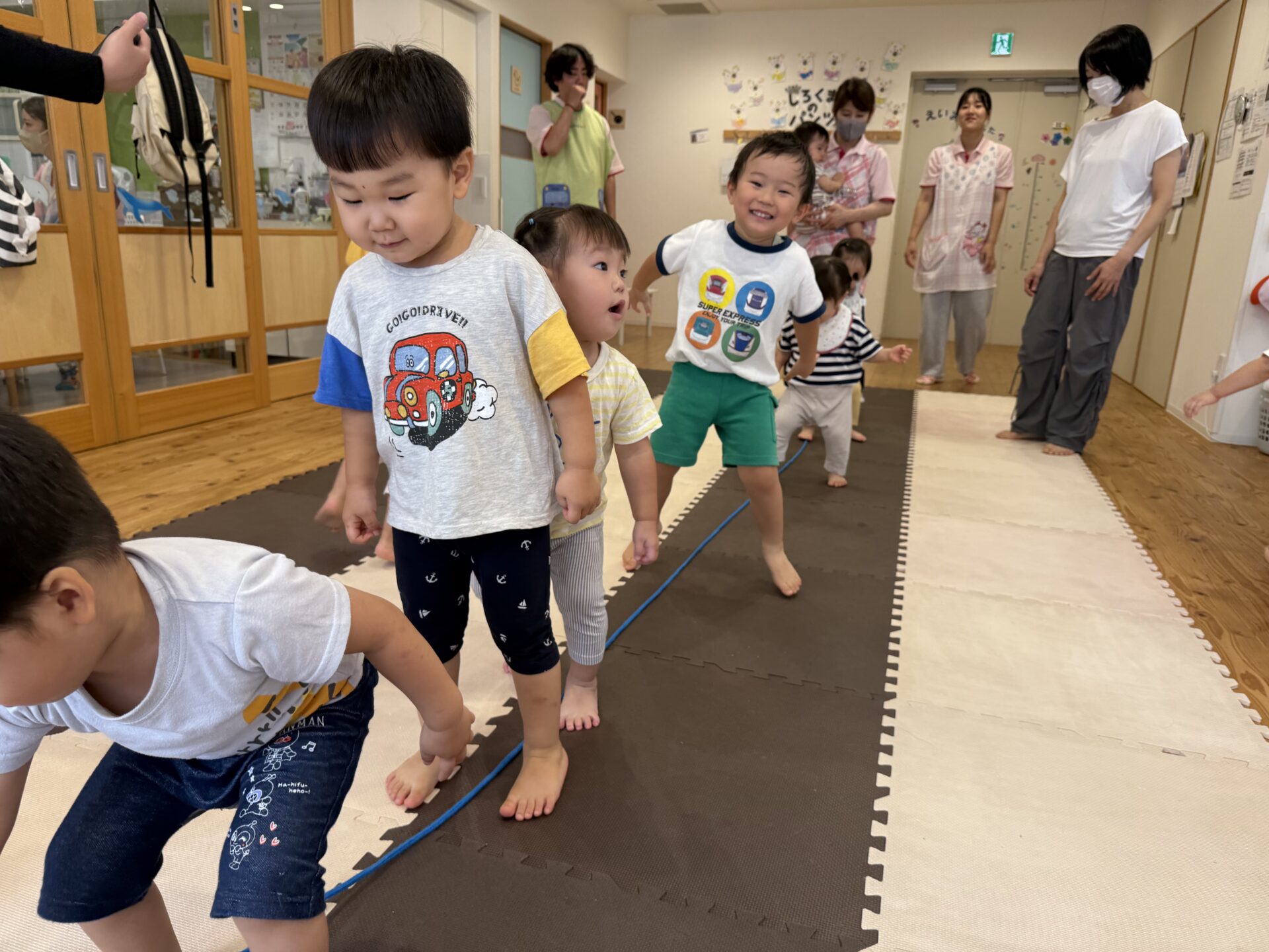 走ったり、ハイハイしたり、ジャンプしたり…と色々な遊びをしてニコニコな子ども達です😊💕