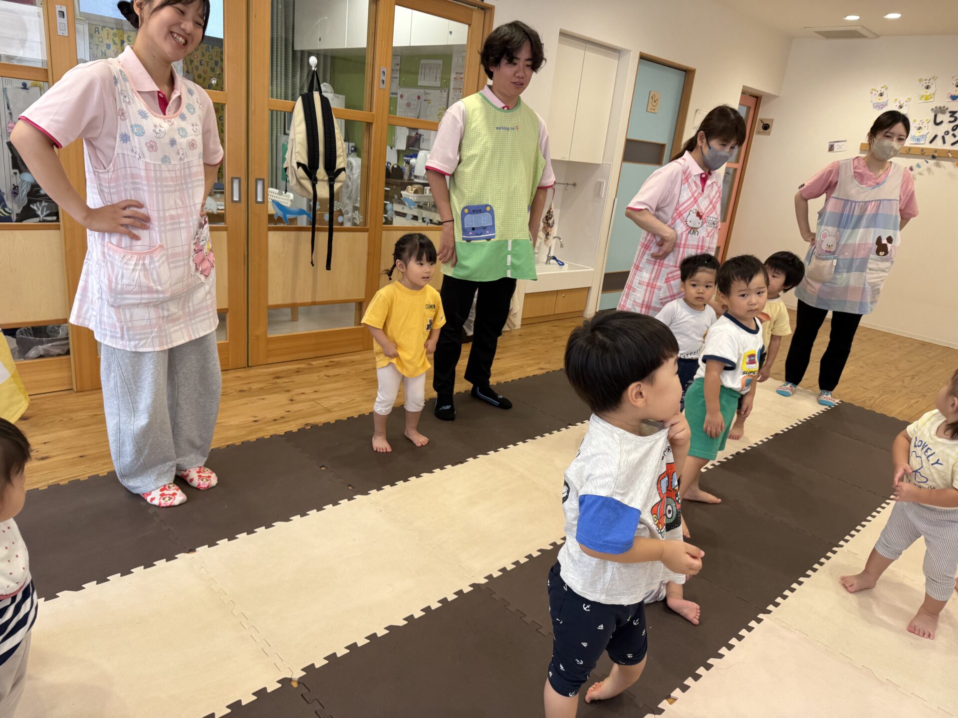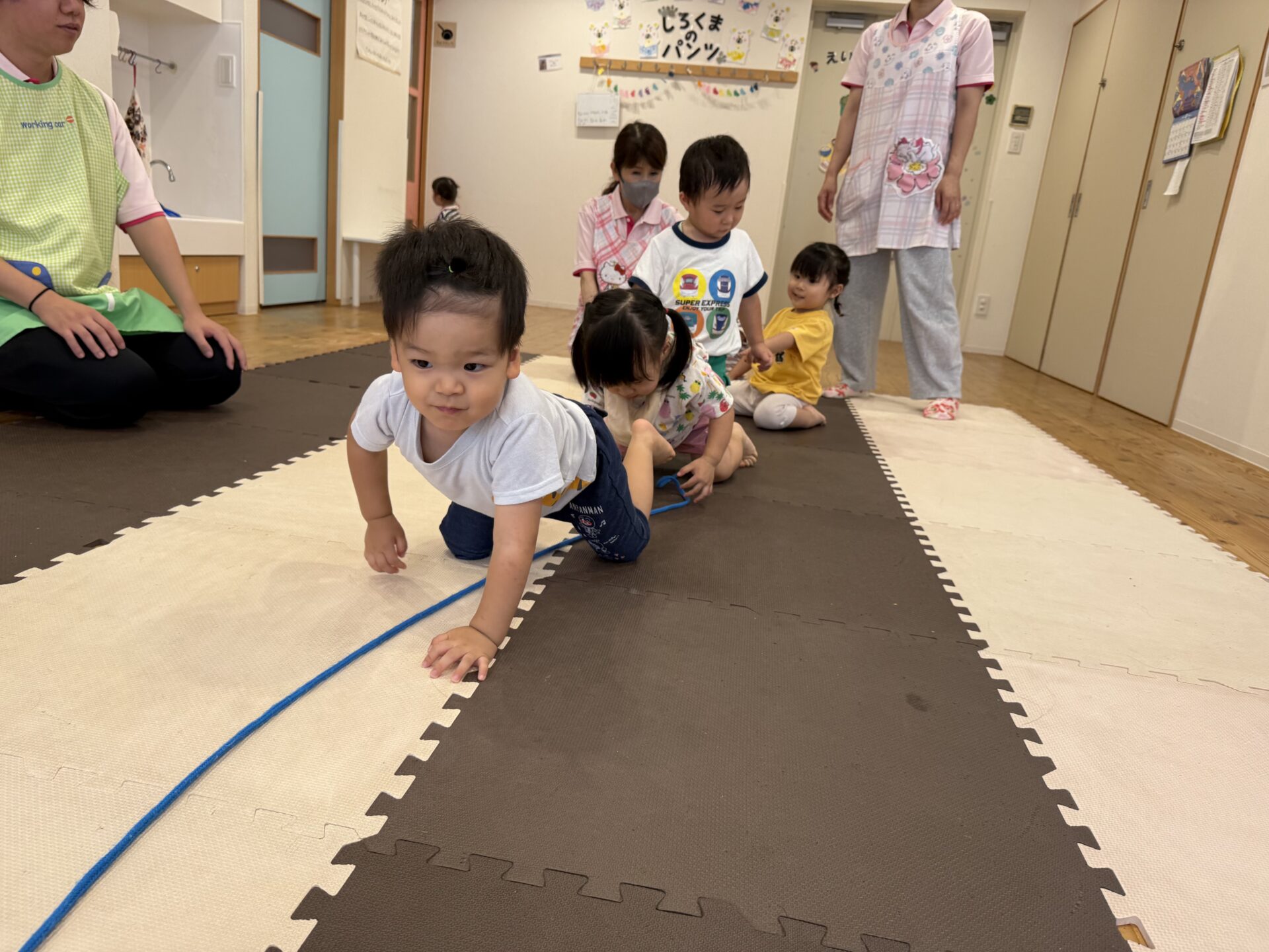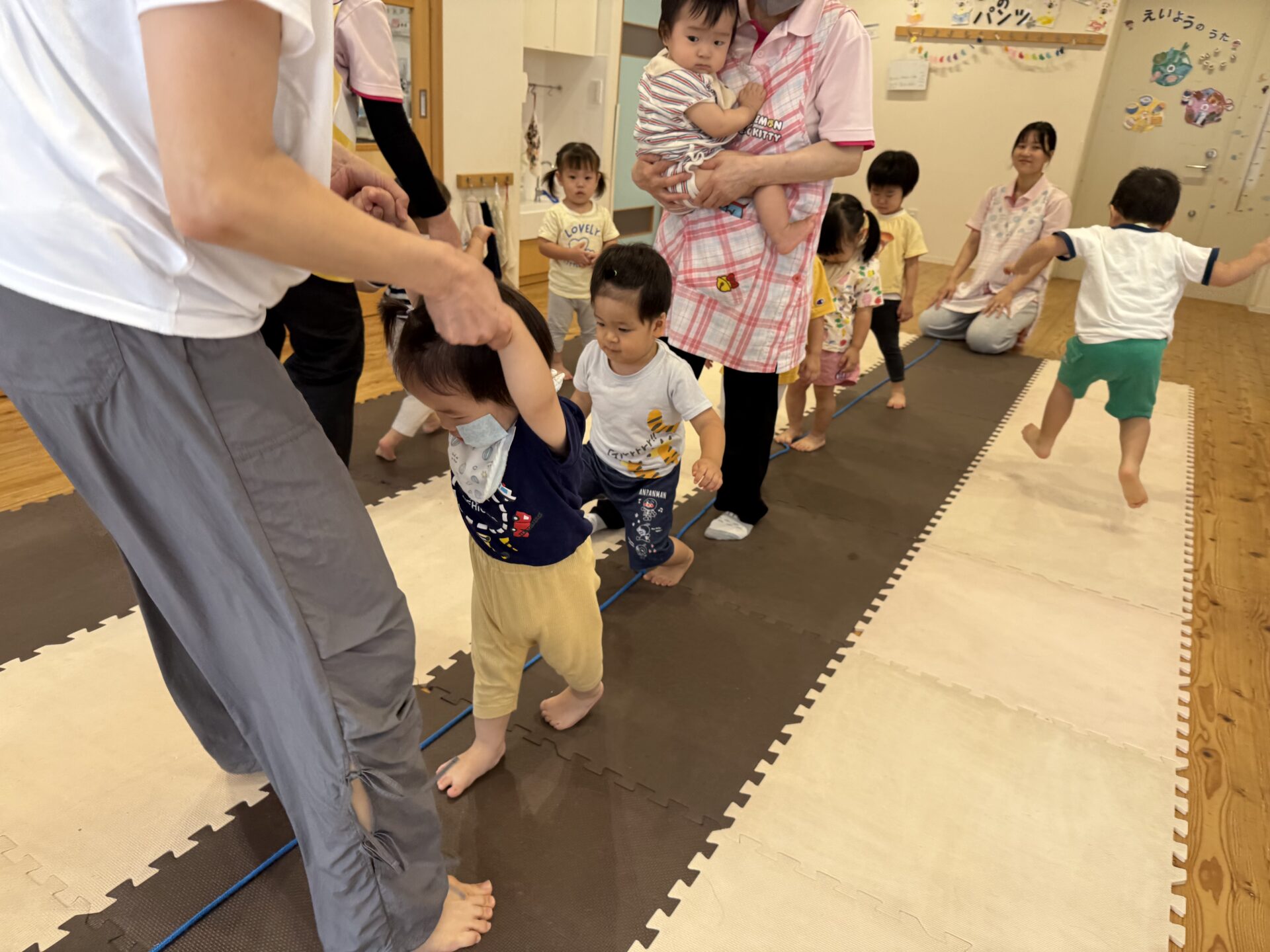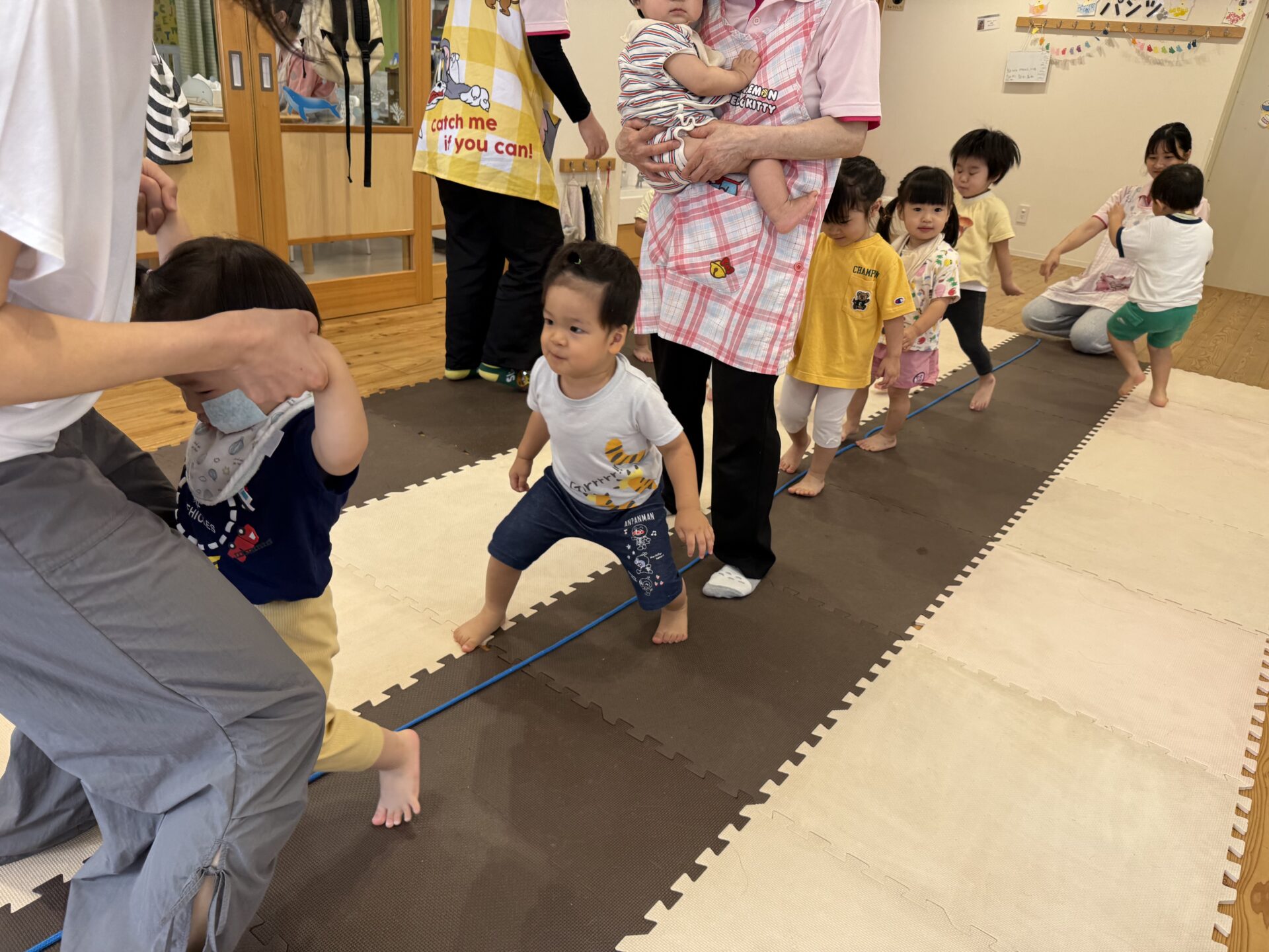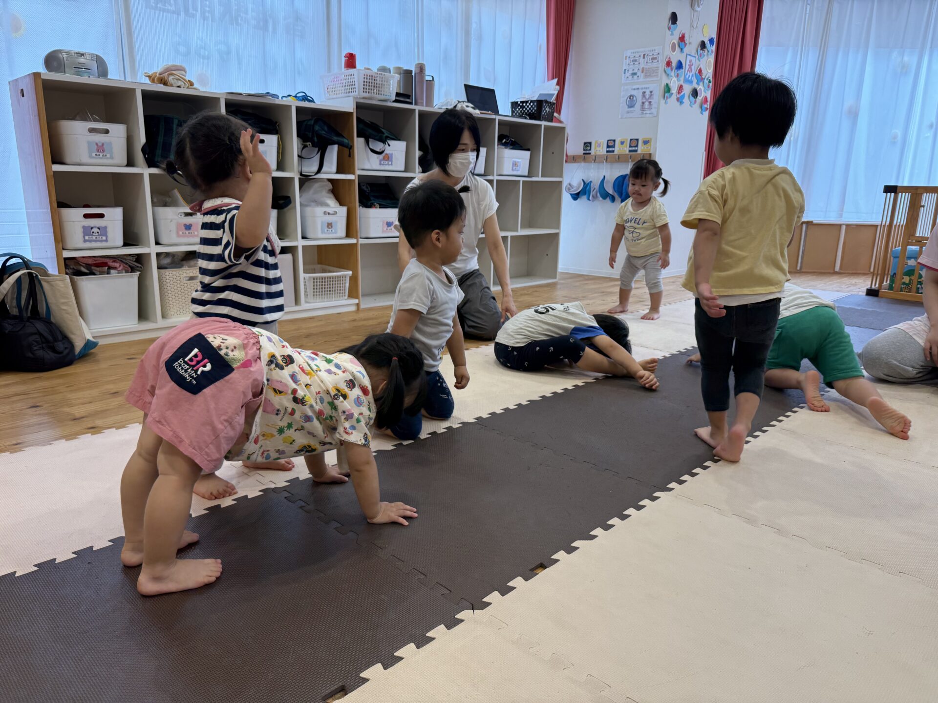 走ったり、ハイハイしたり、ジャンプしたり…と色々な遊びをしてニコニコな子ども達です😊💕