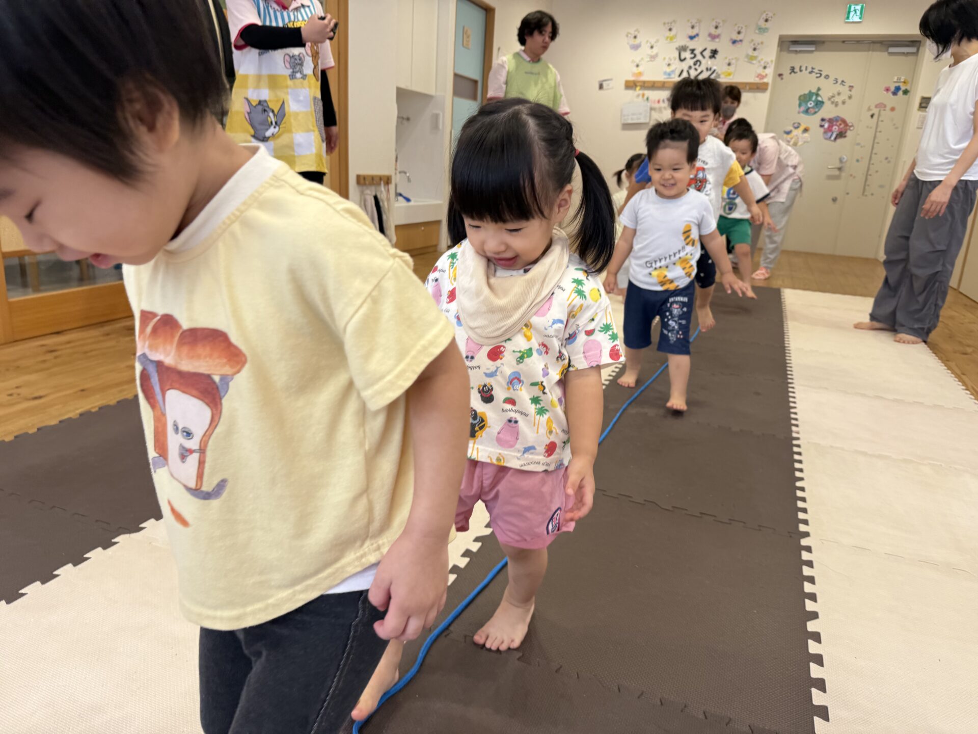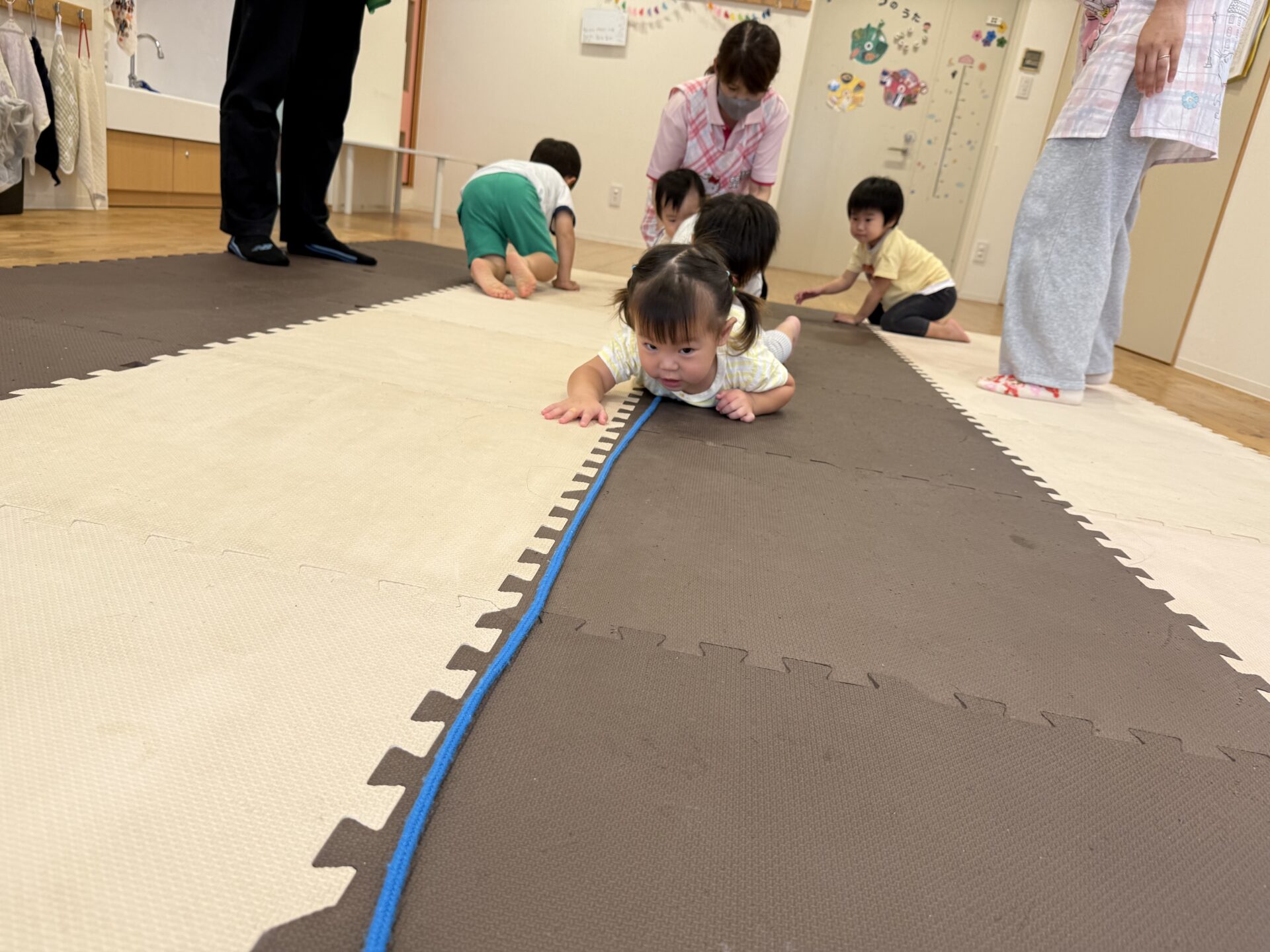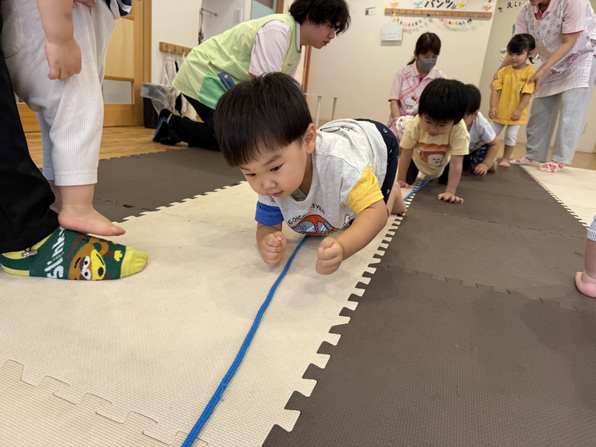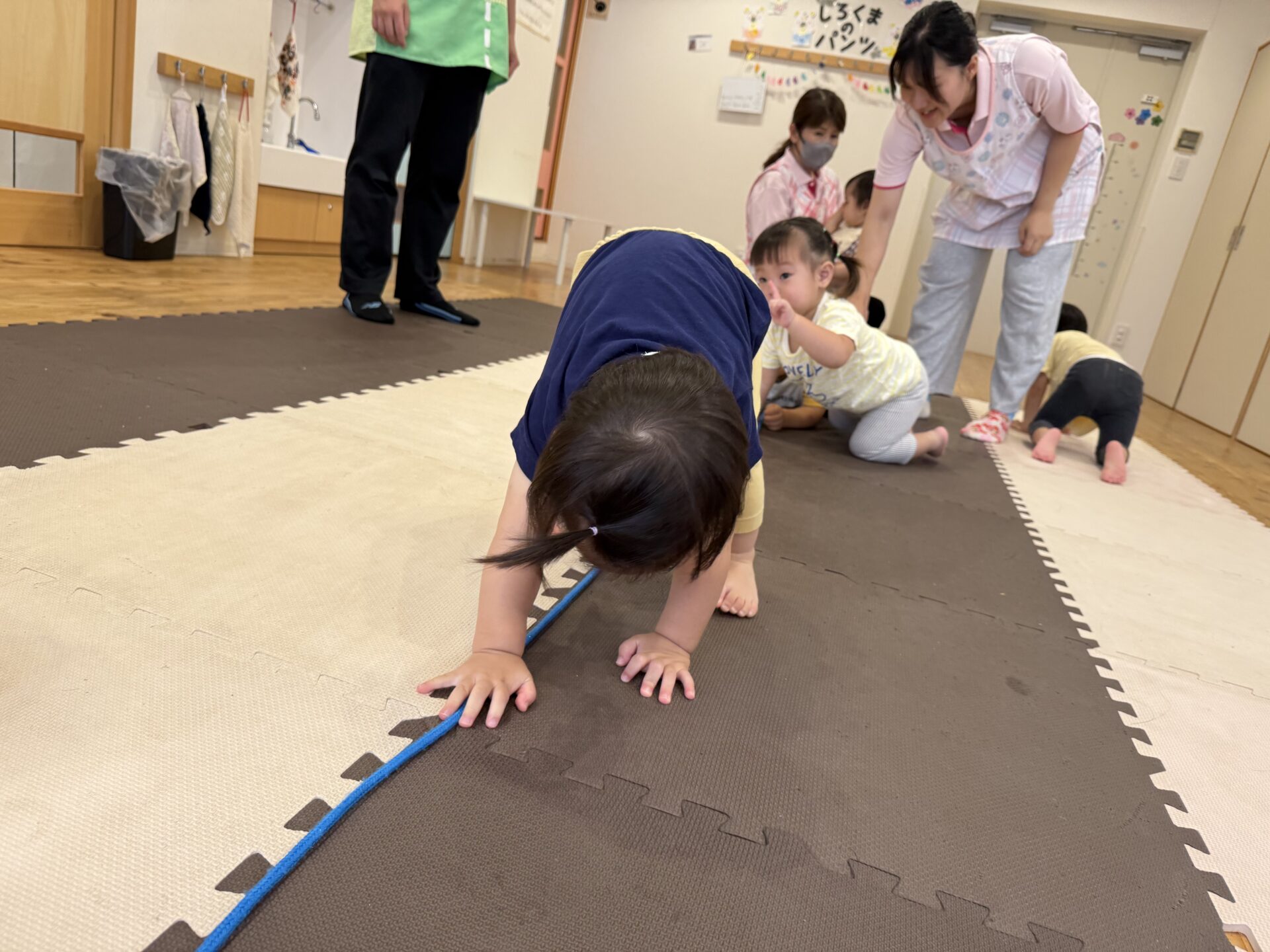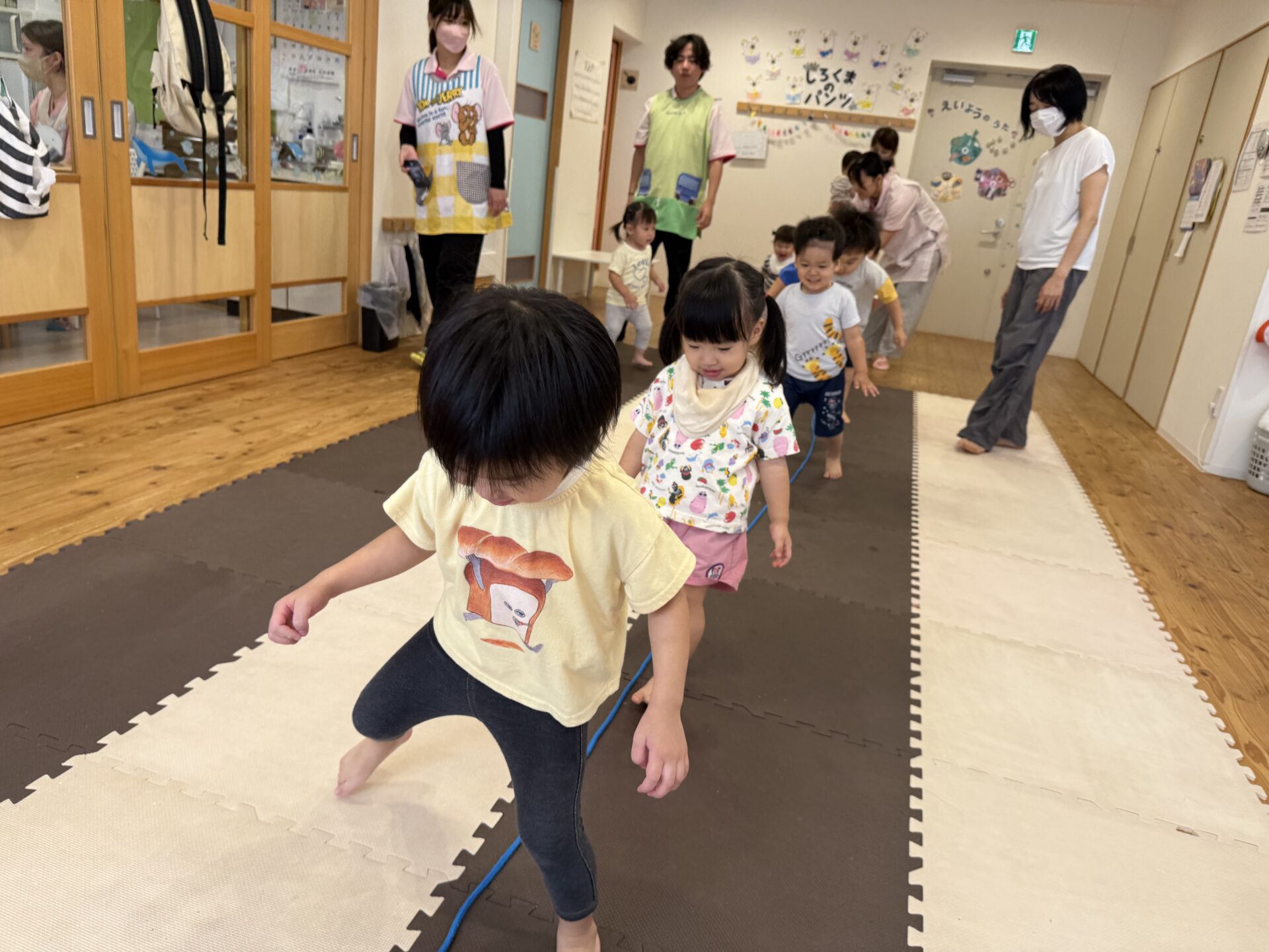 走ったり、ハイハイしたり、ジャンプしたり…と色々な遊びをしてニコニコな子ども達です😊💕