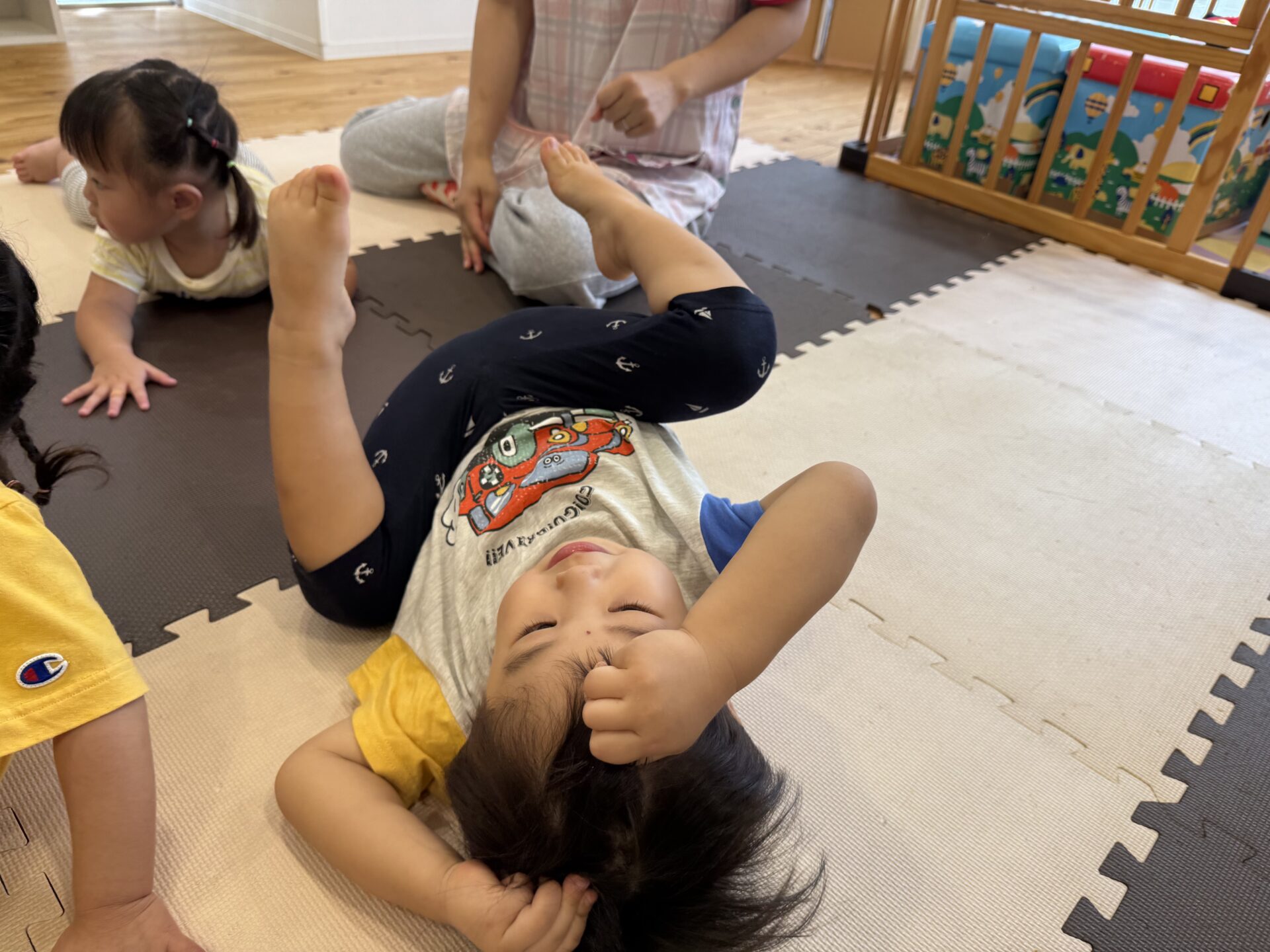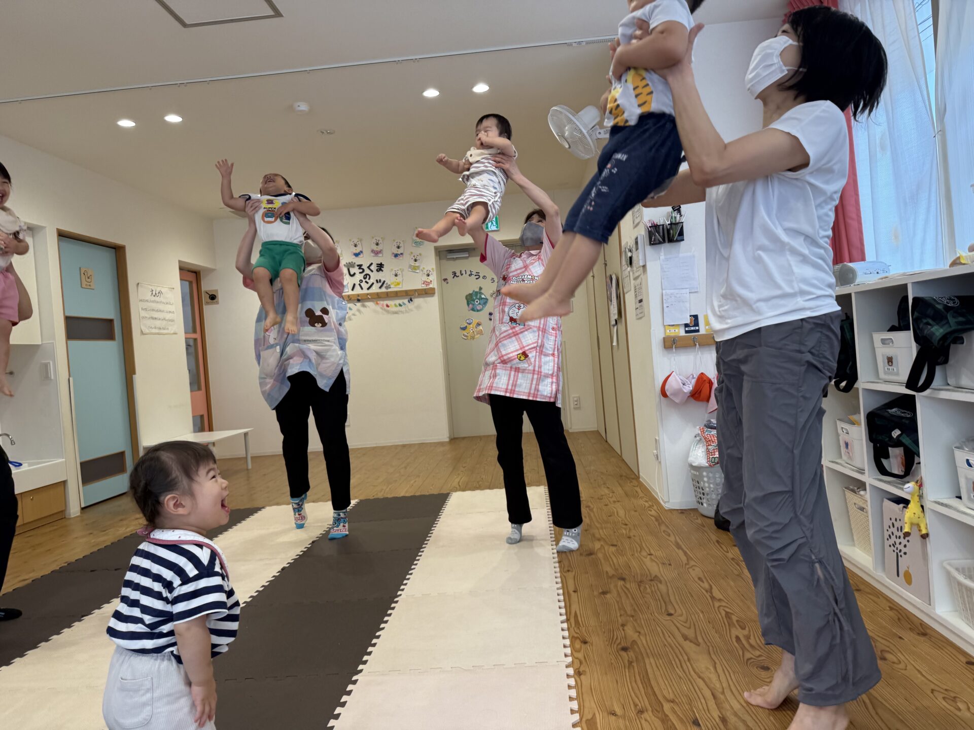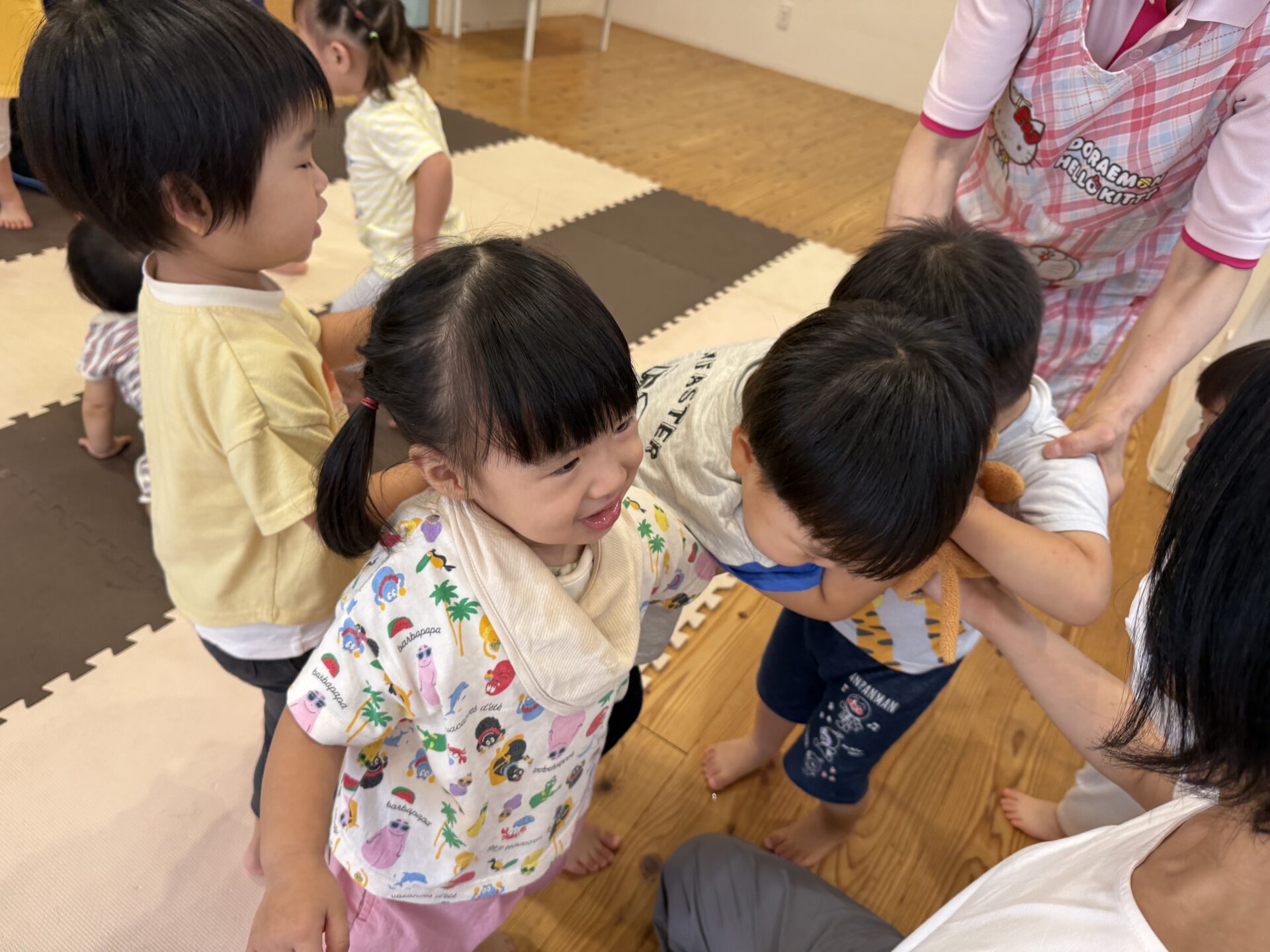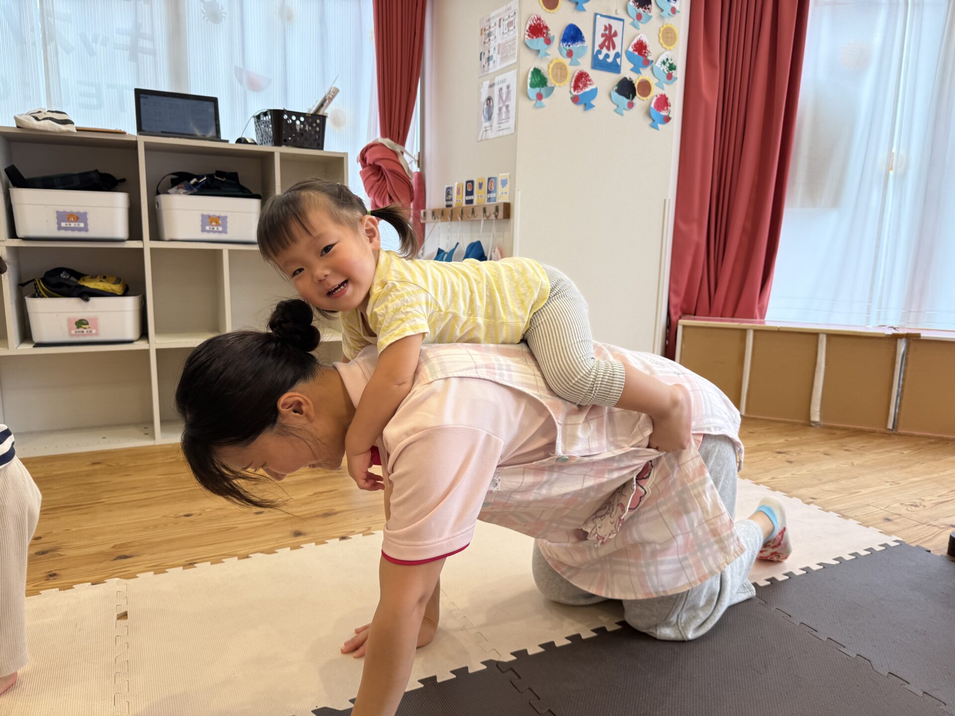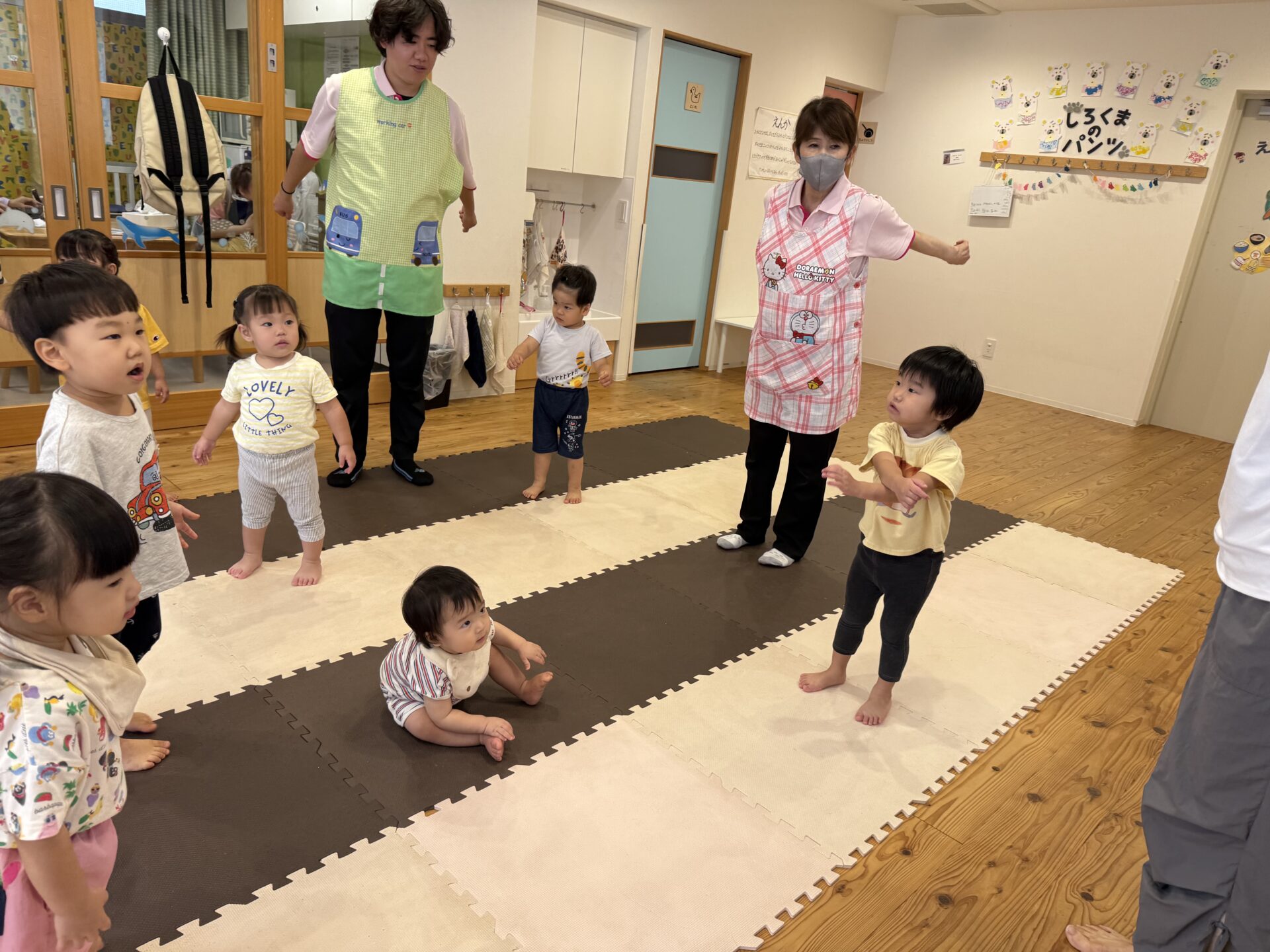 走ったり、ハイハイしたり、ジャンプしたり…と色々な遊びをしてニコニコな子ども達です😊💕