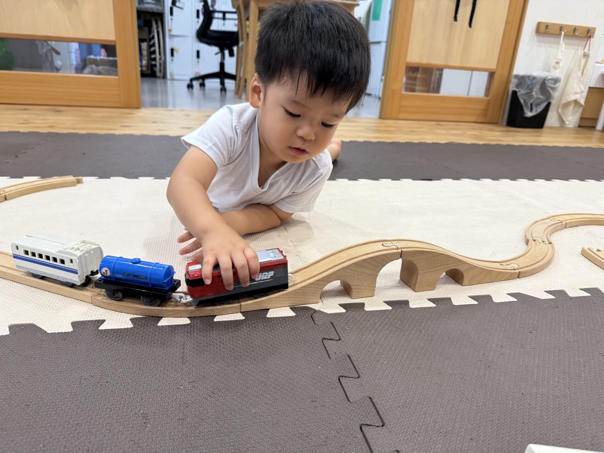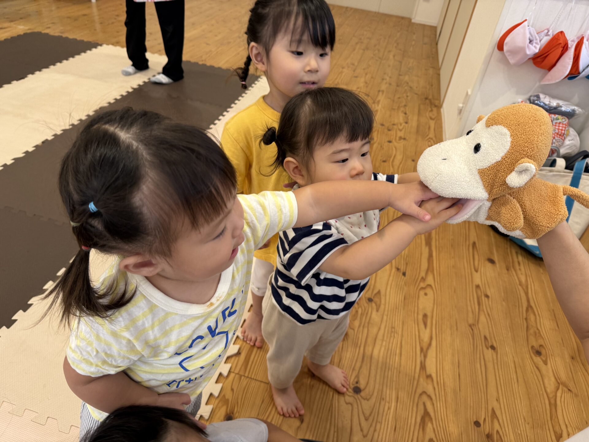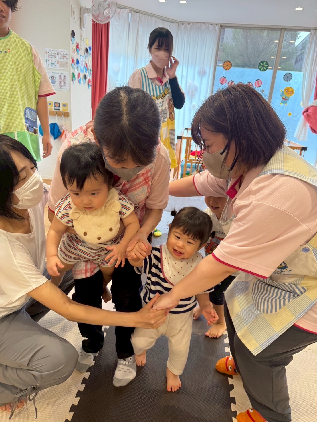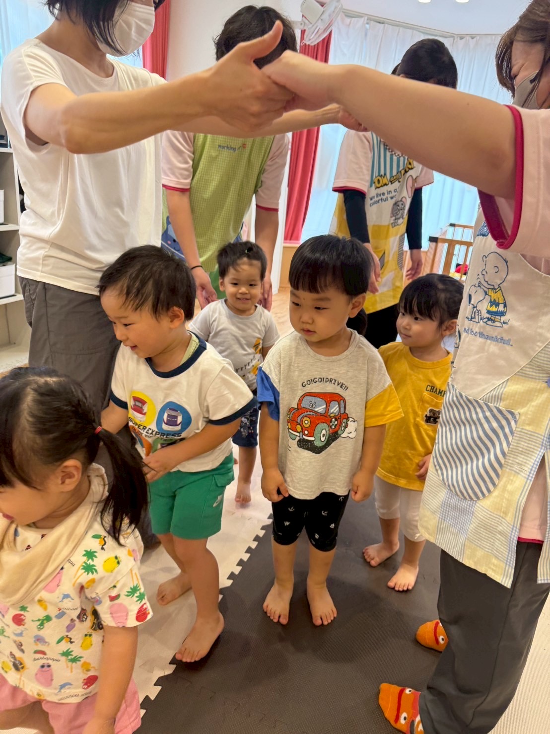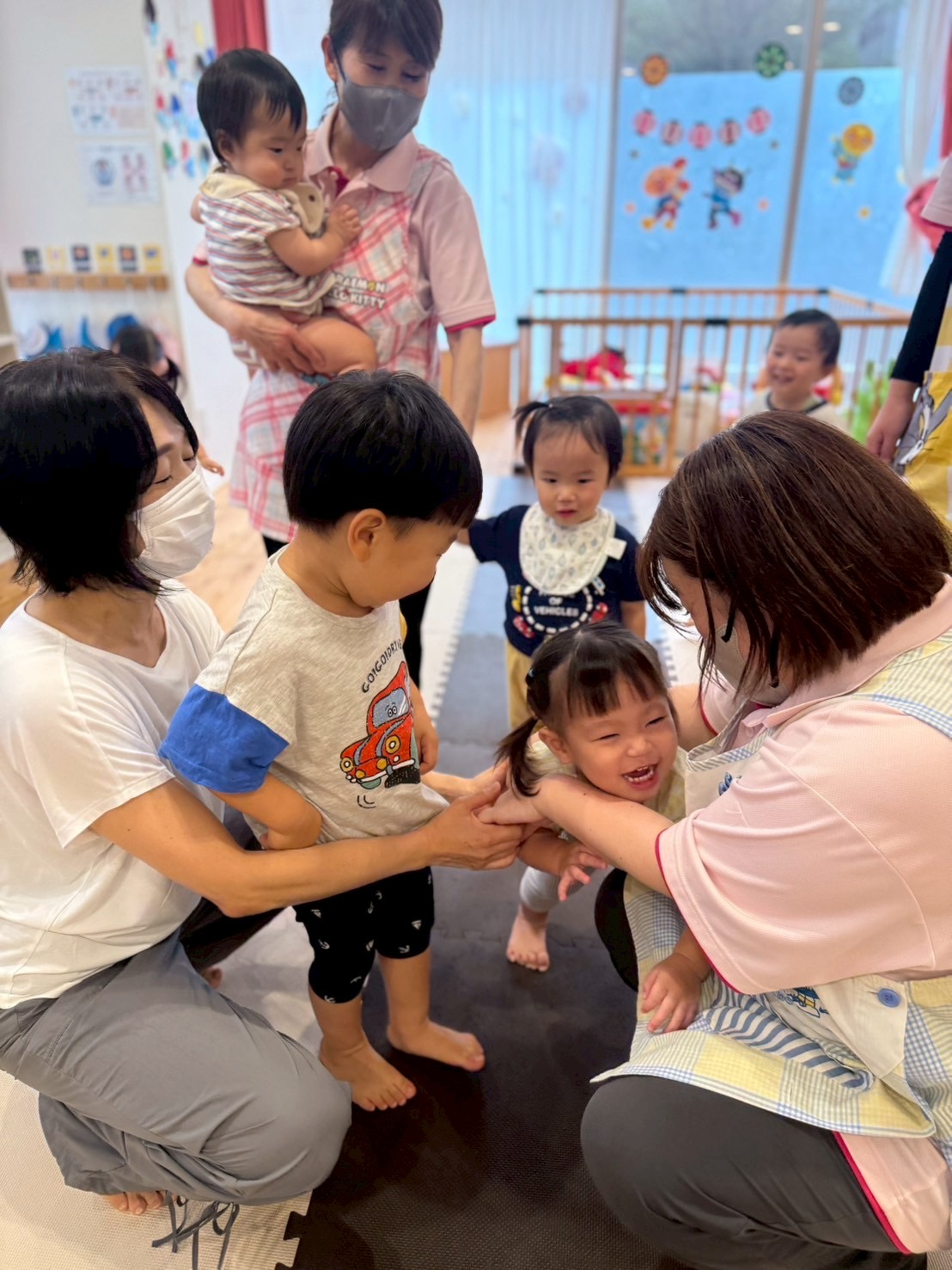 走ったり、ハイハイしたり、ジャンプしたり…と色々な遊びをしてニコニコな子ども達です😊💕