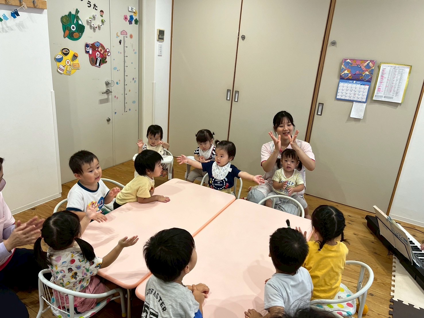 最初はハローの歌や英語の曲に合わせて踊って…🎶