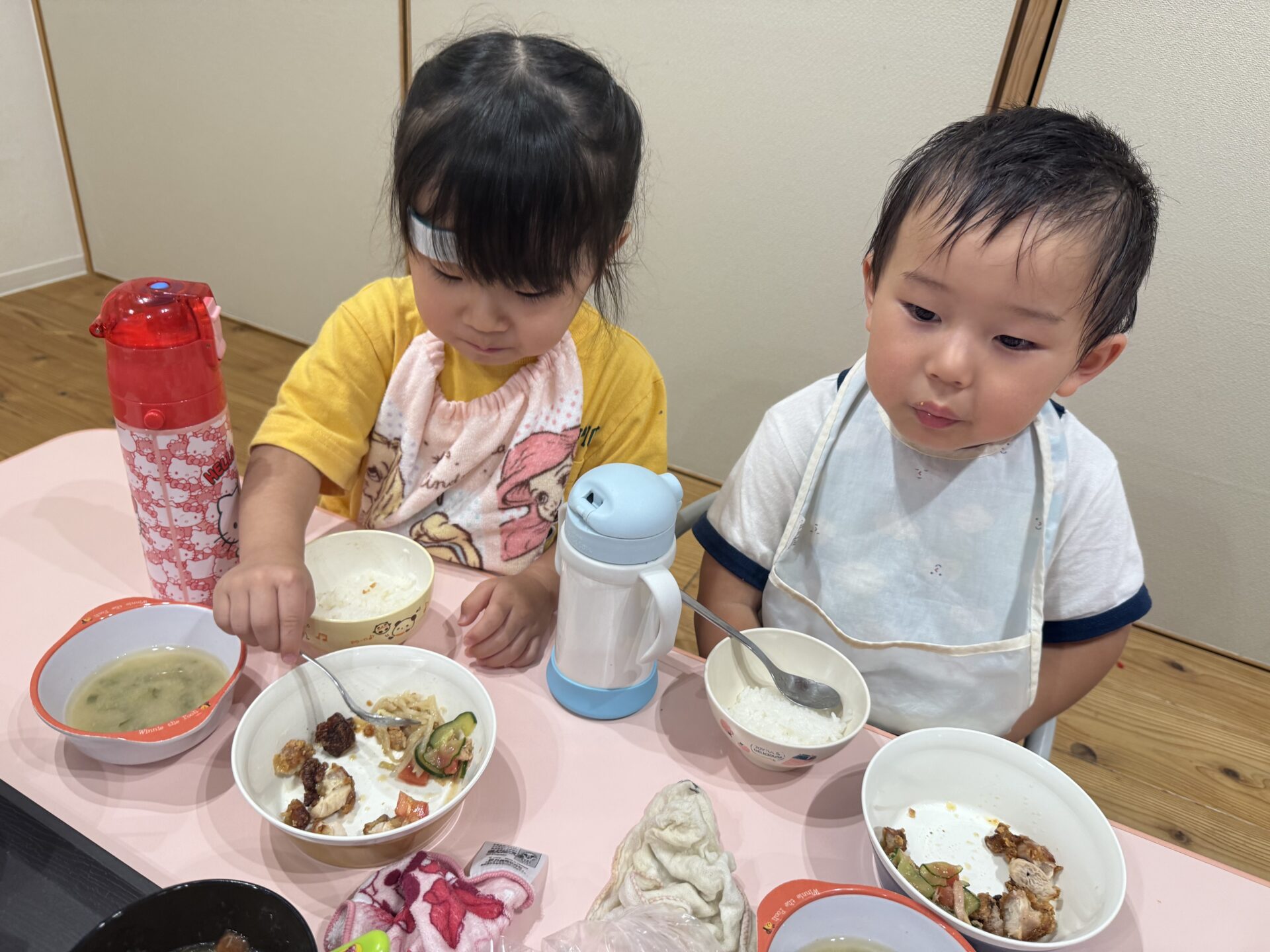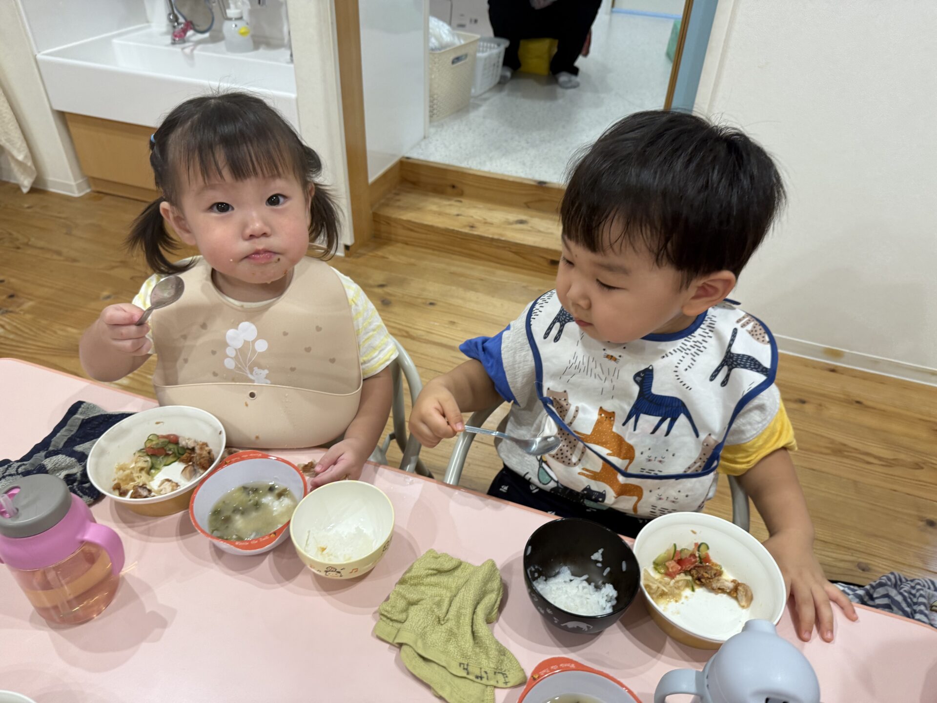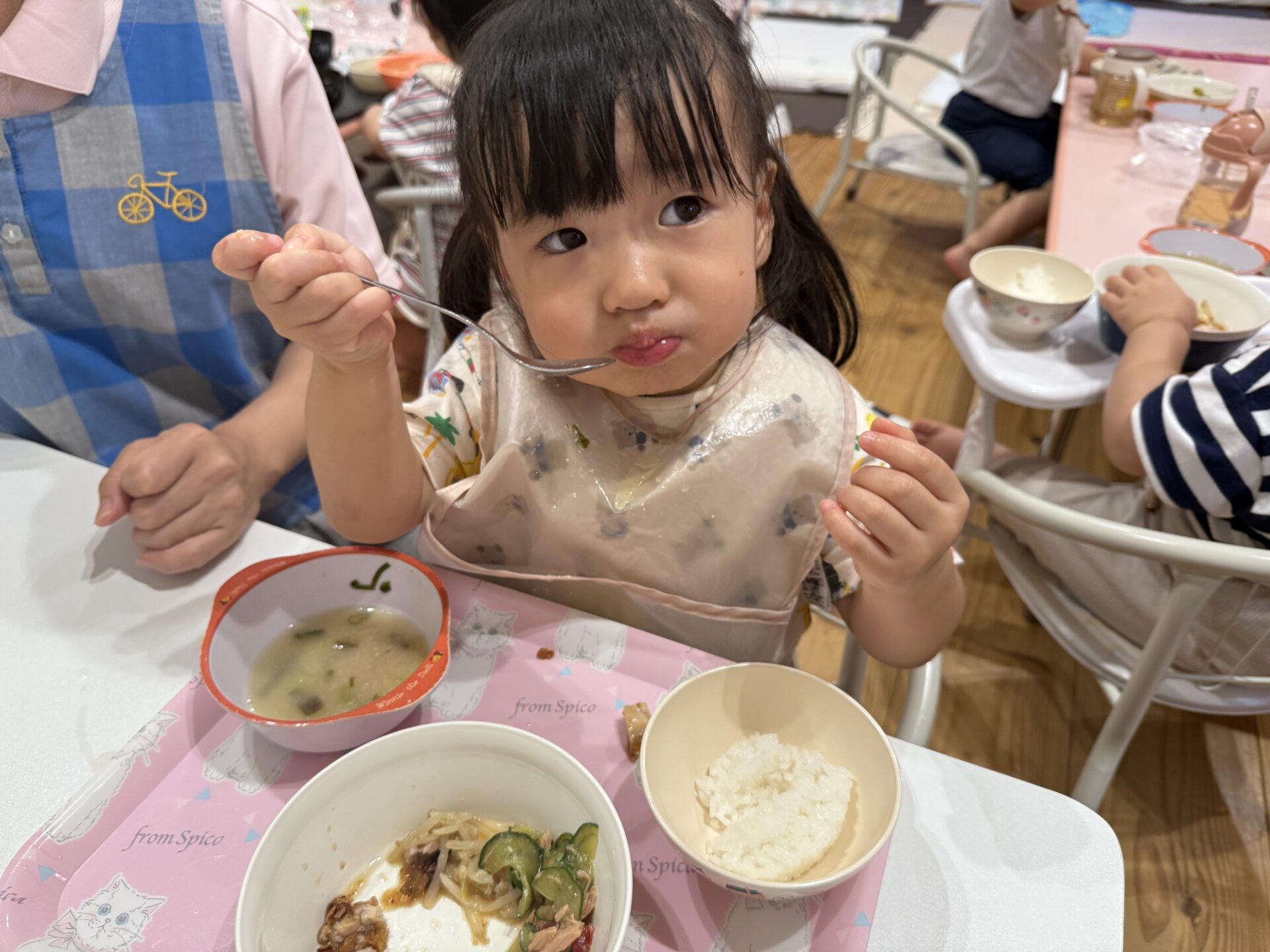 たくさん遊んだ後は嬉しい給食の時間😋❤️