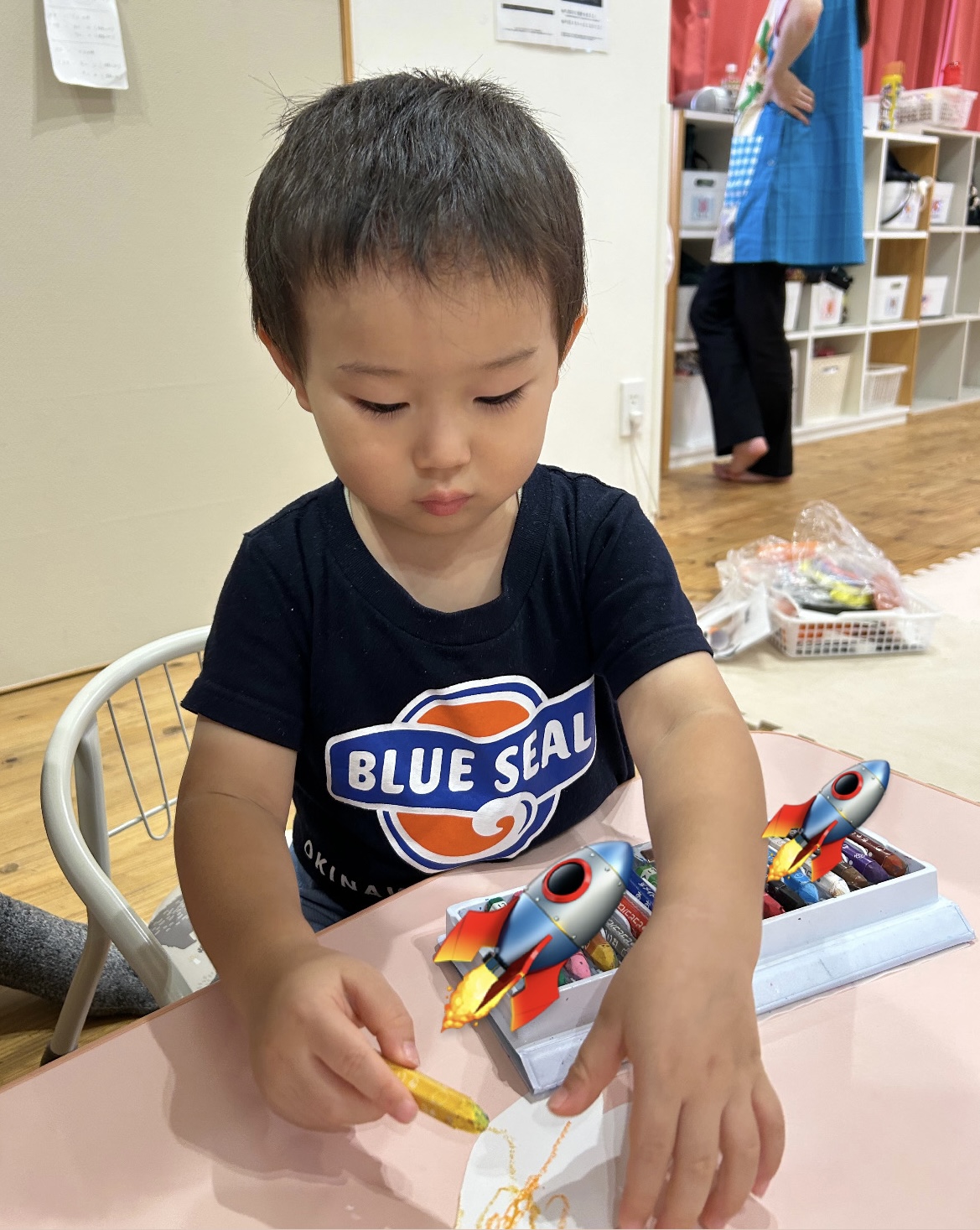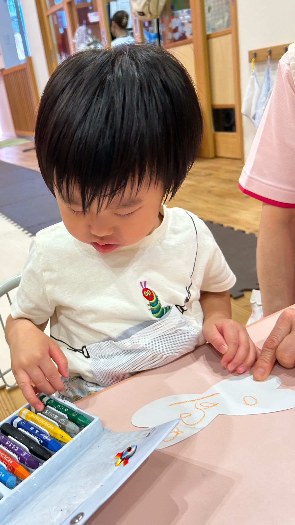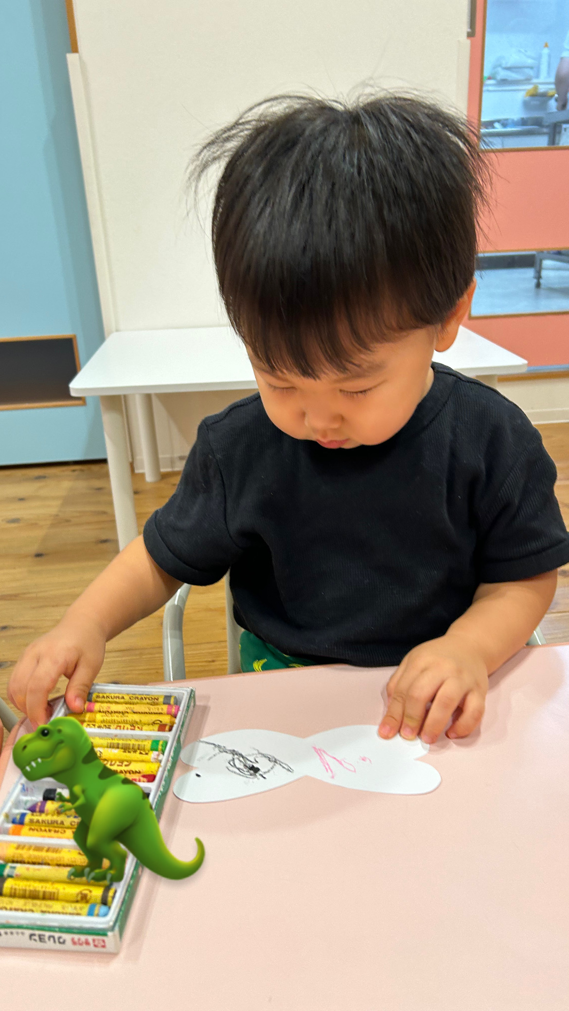 羽にクレヨンで色をつけて🖍