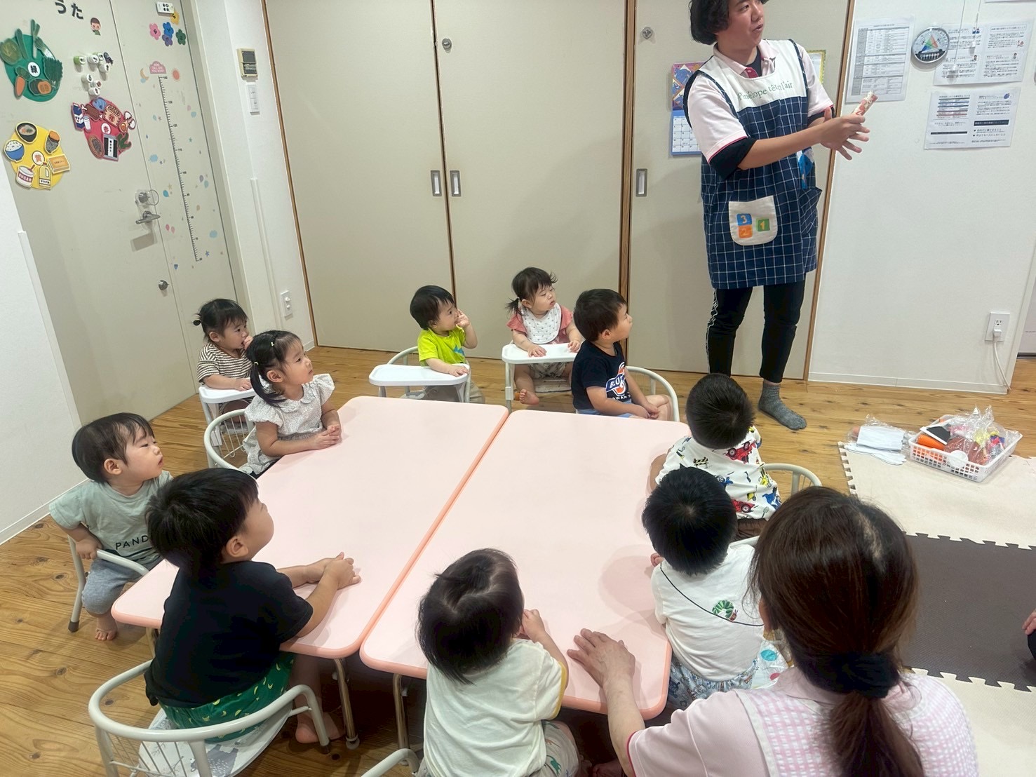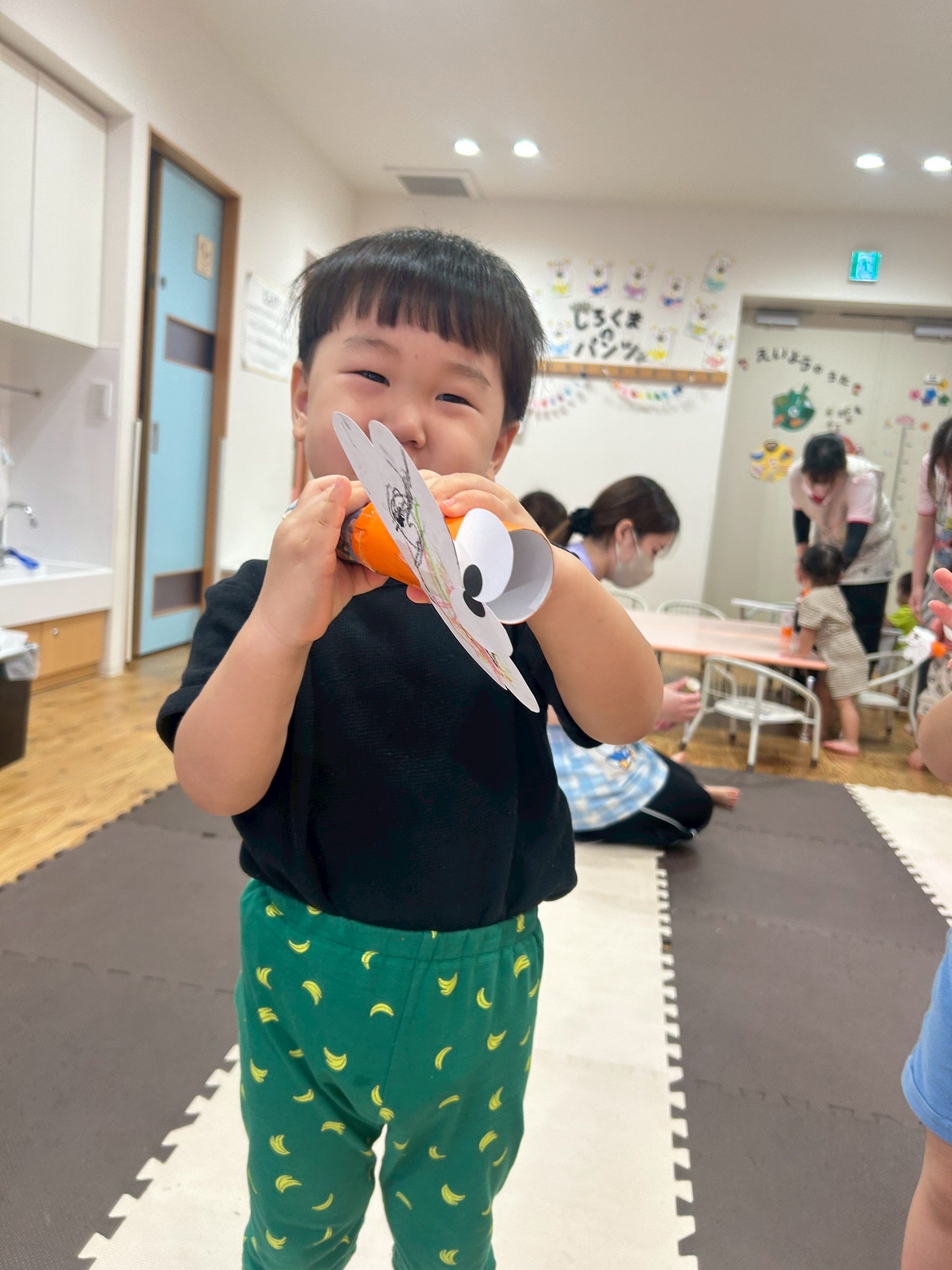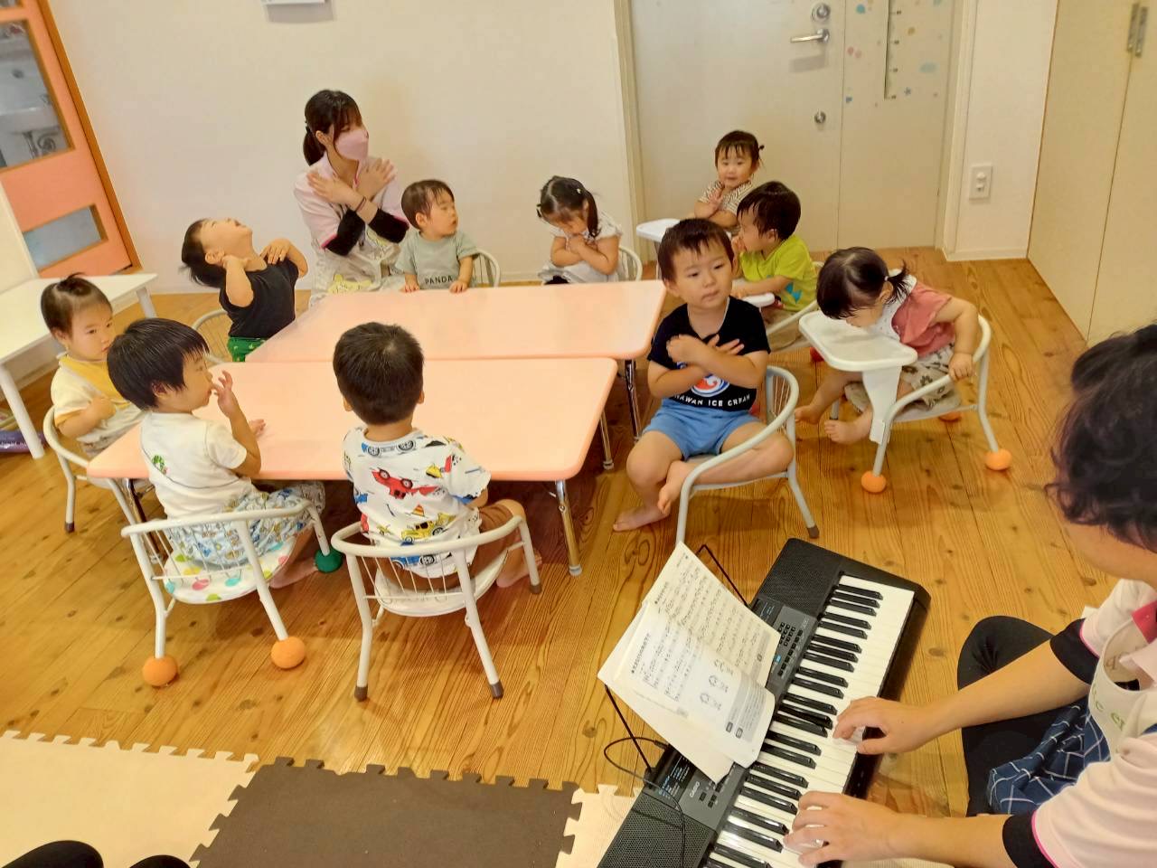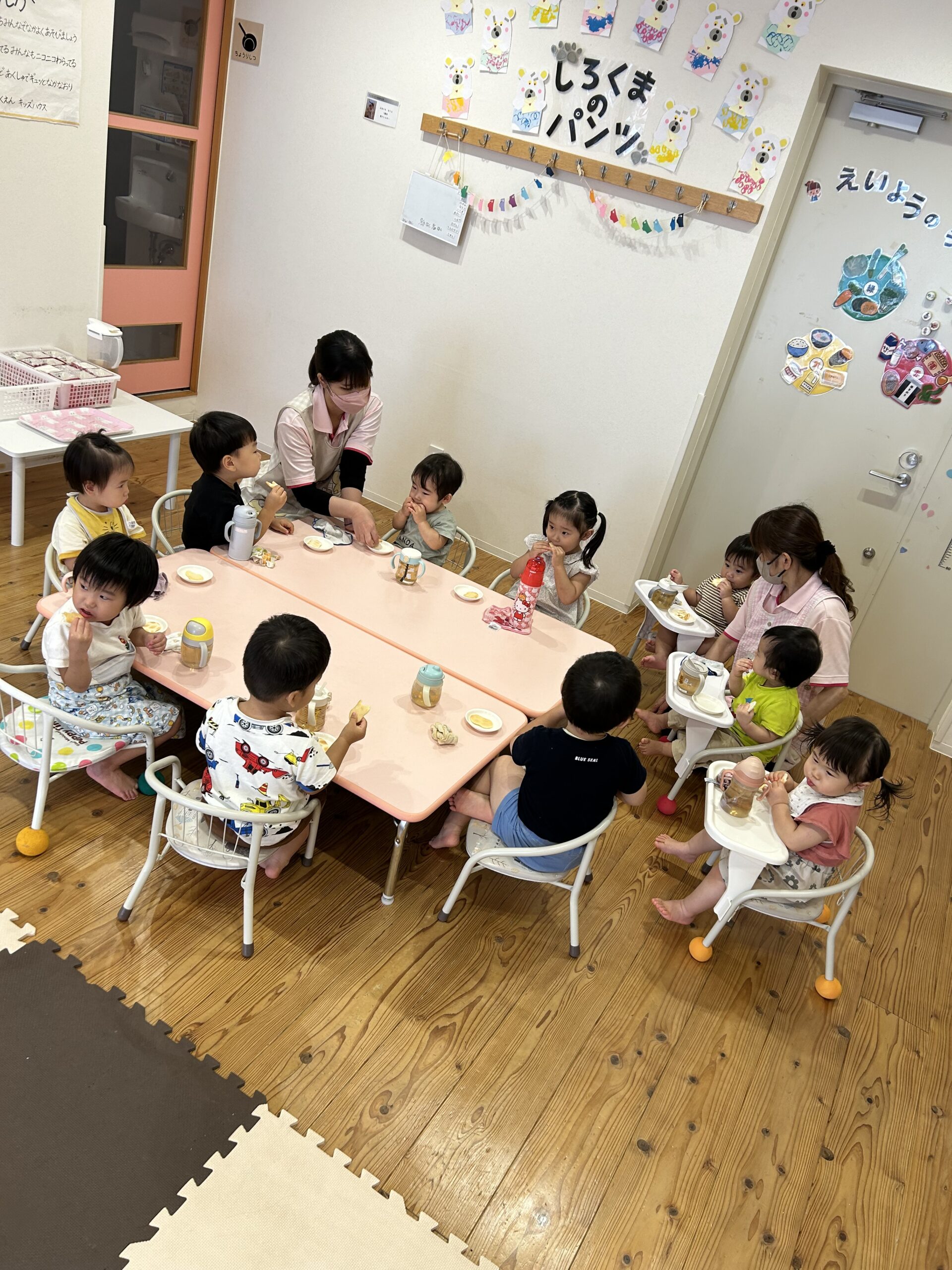 朝のおやつは大好きなおせんべいですぐに間食されて、朝の会は「大きな栗の木の下で」を振り付けを入れながら上手に歌いました🎶