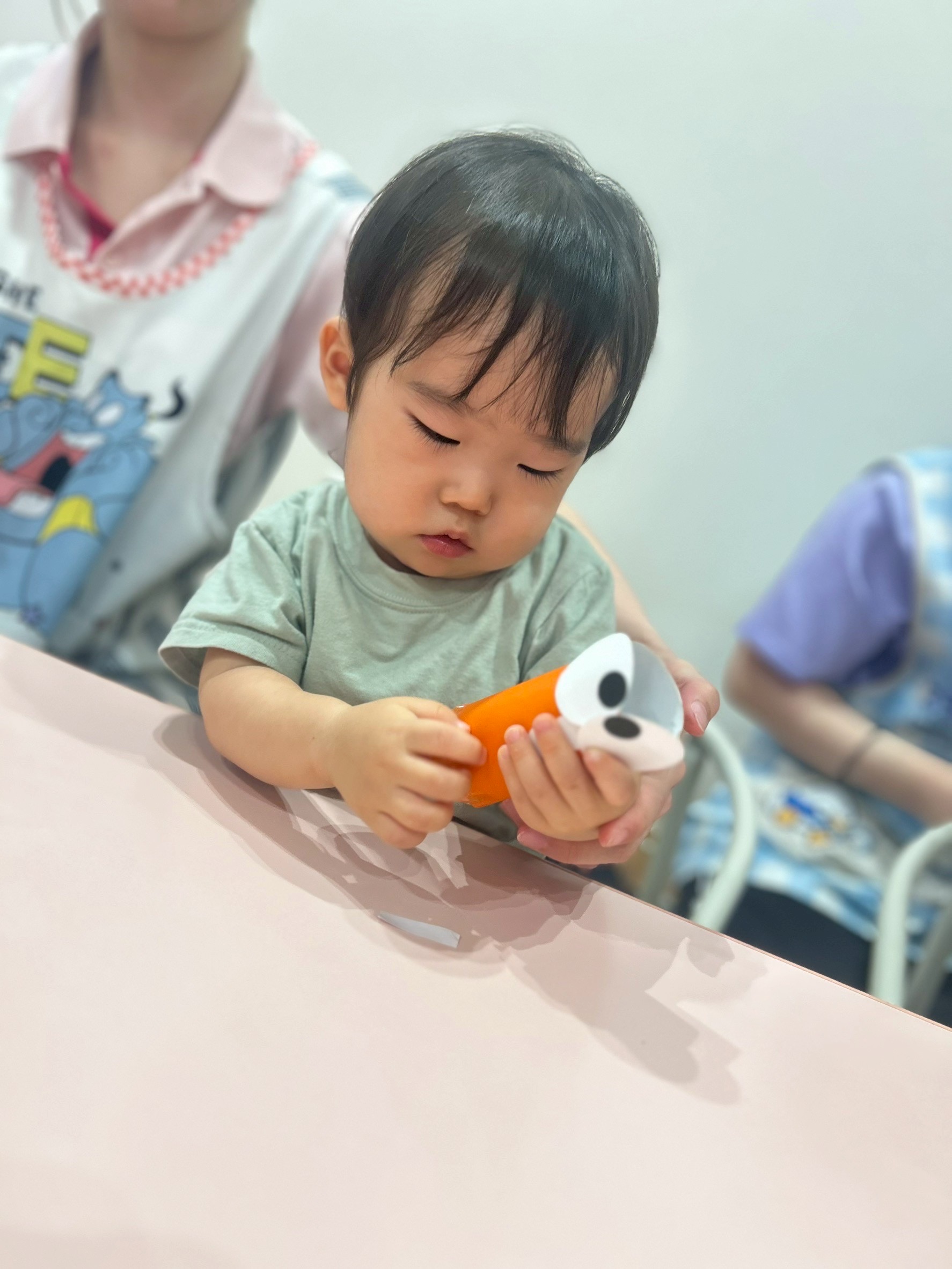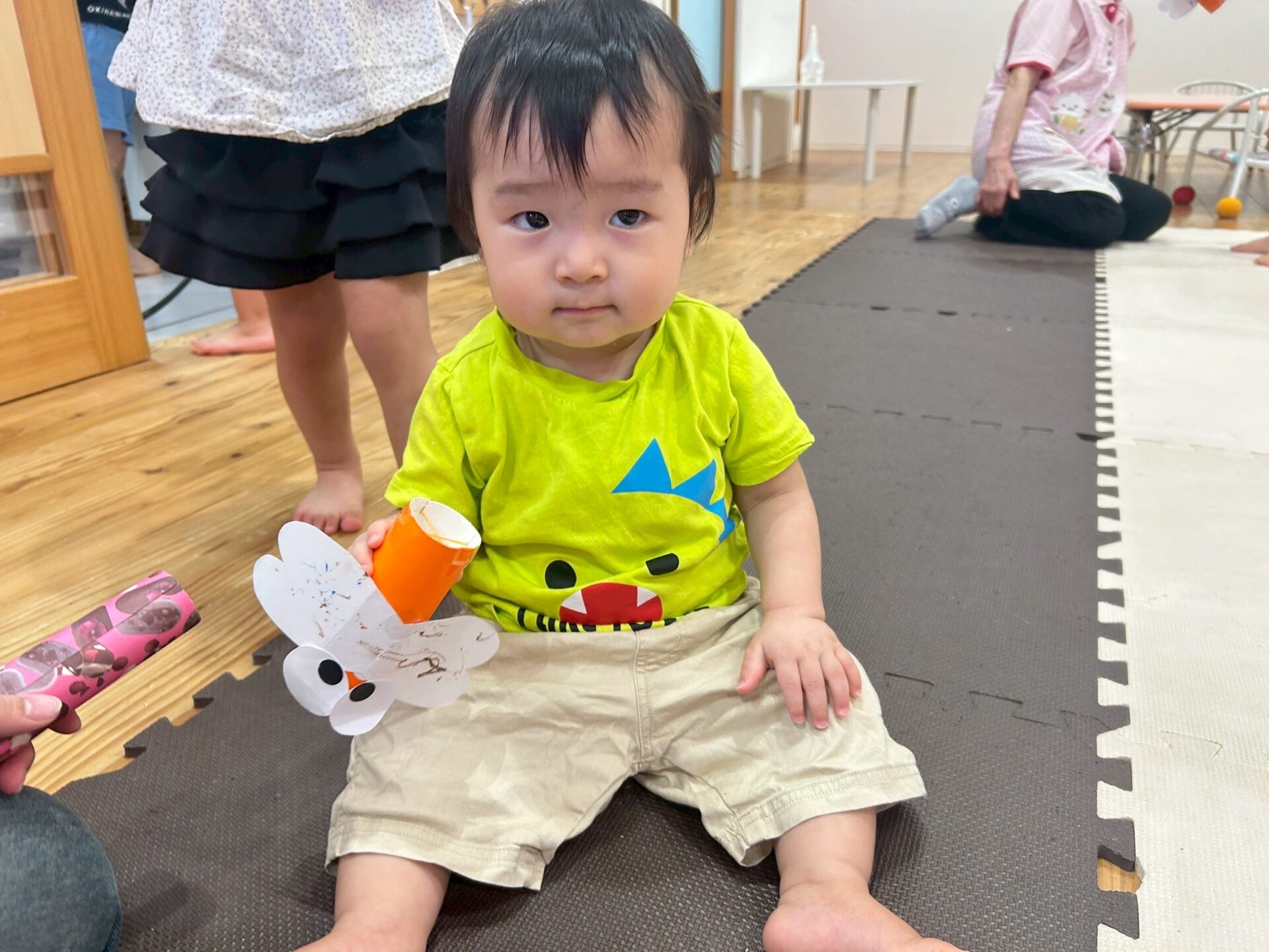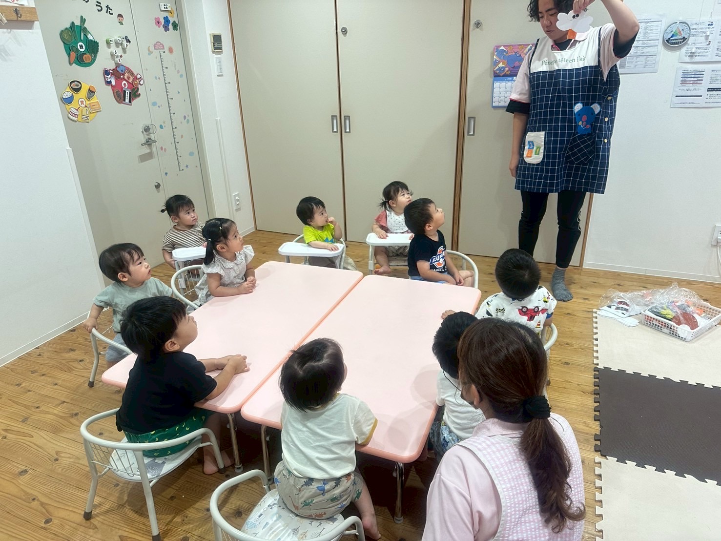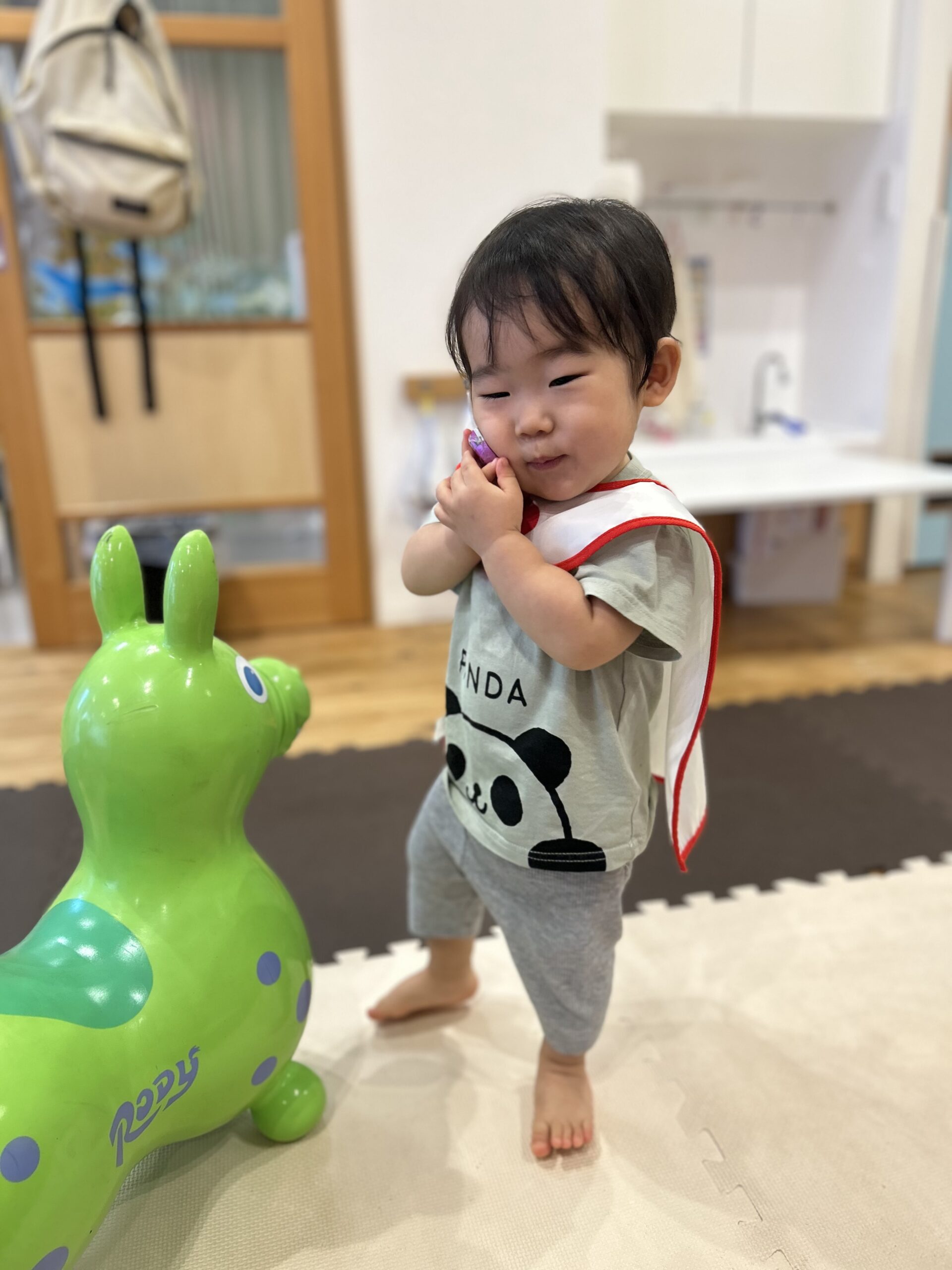 朝のおやつは大好きなおせんべいですぐに間食されて、朝の会は「大きな栗の木の下で」を振り付けを入れながら上手に歌いました🎶