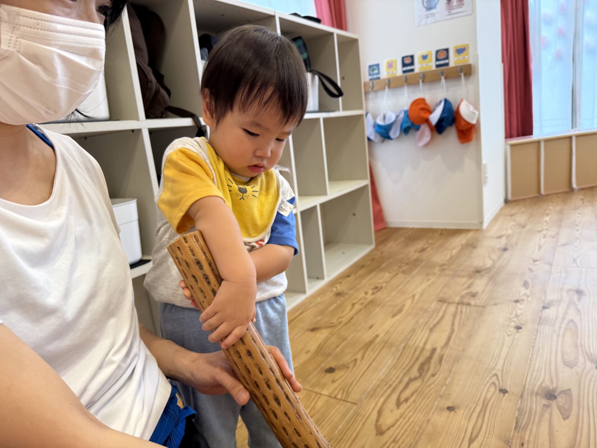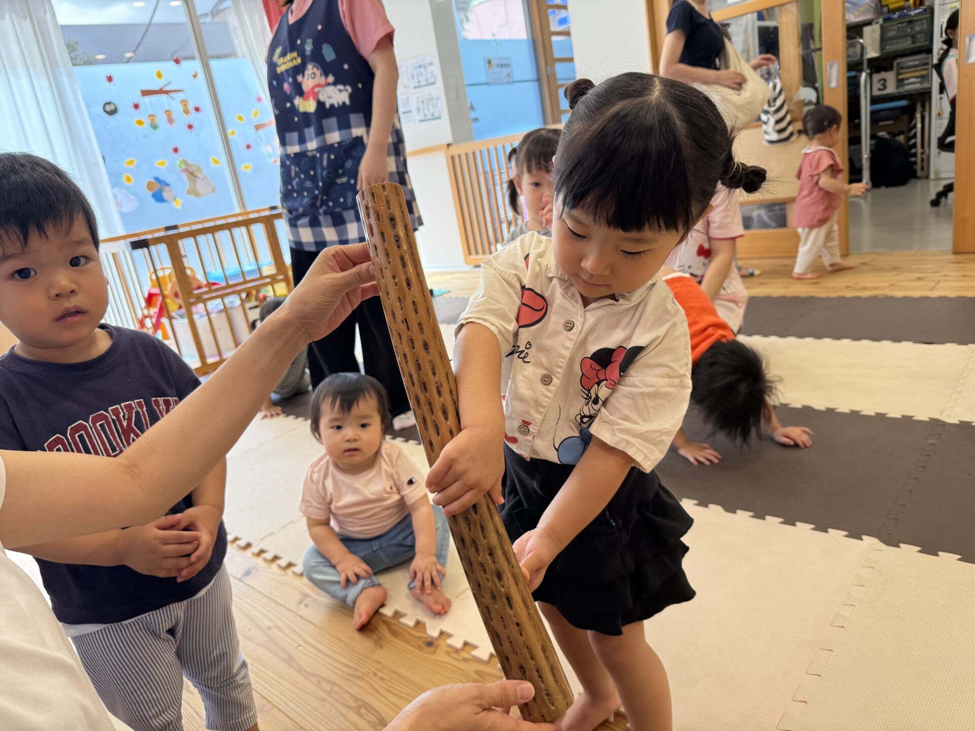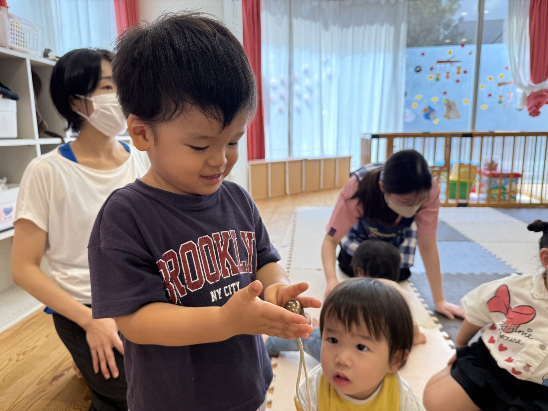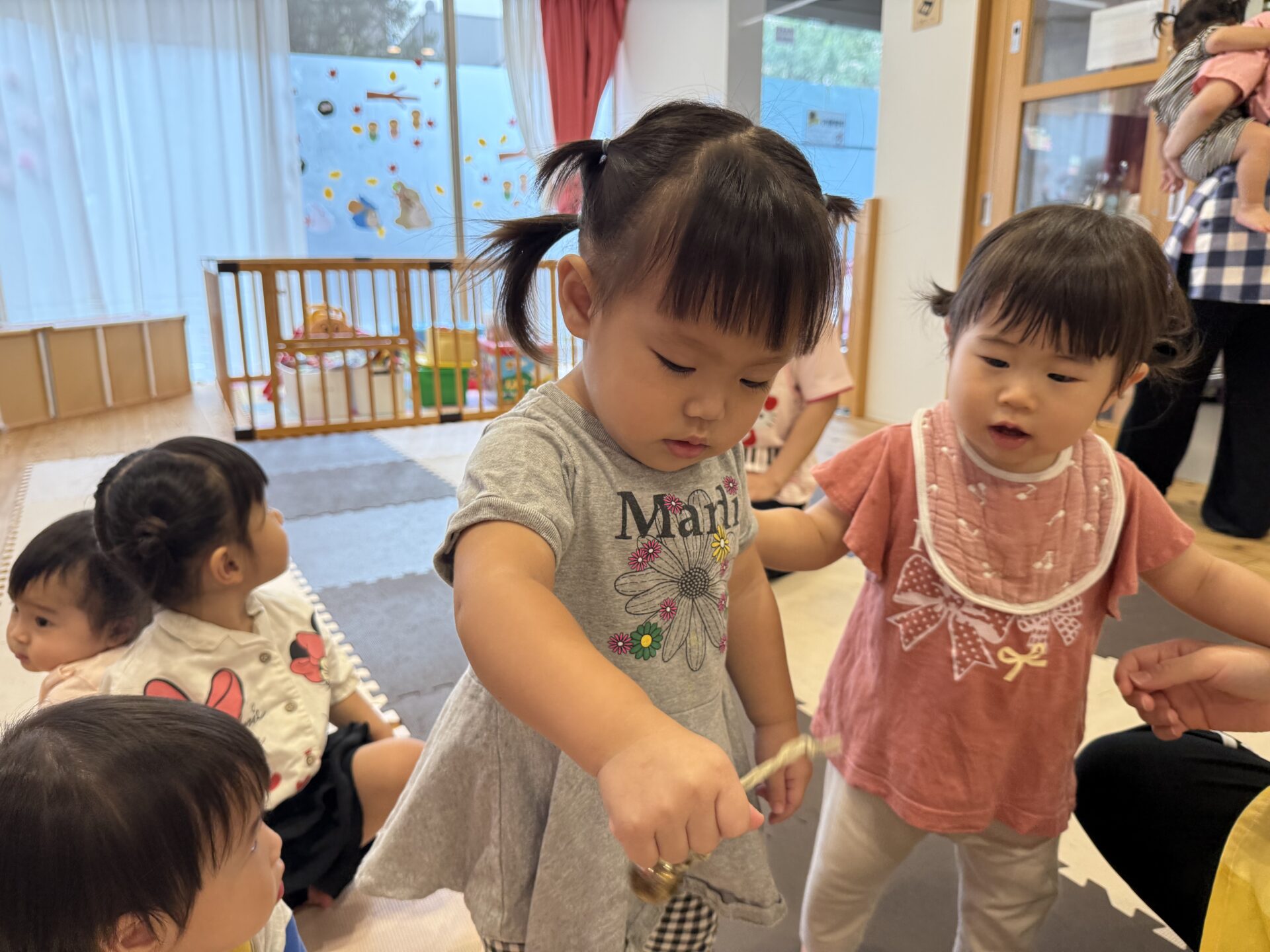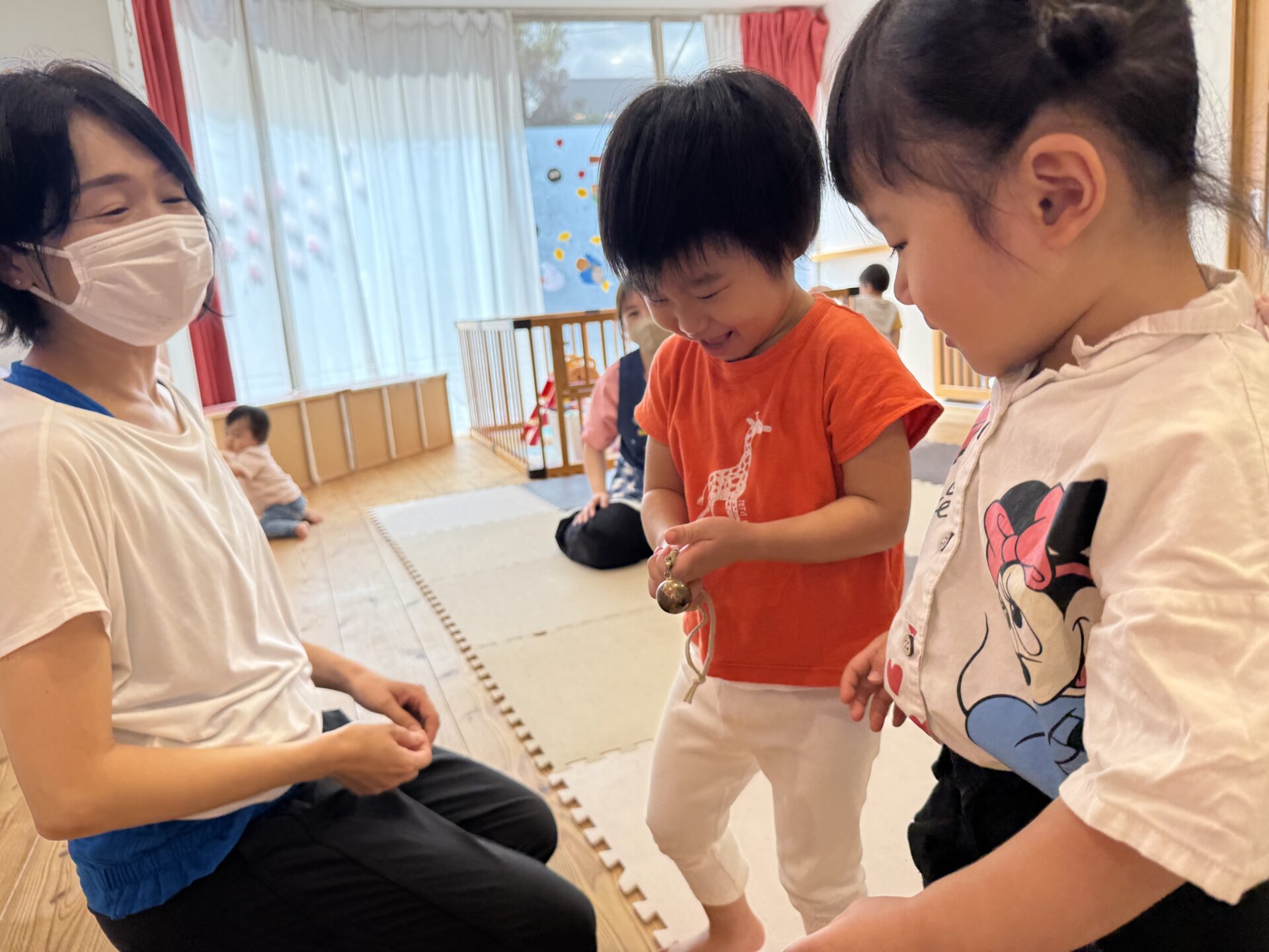 次はあや先生が色々な楽器を持ってきてくれて、雨の音や鈴の音など鳴らして音色を楽しみました☺️🎶