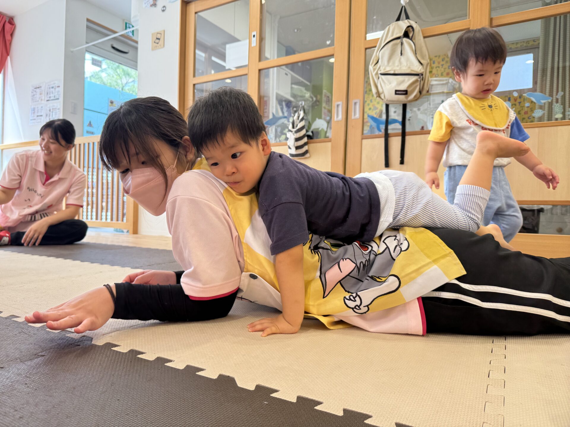 その後は大好きなロケットジャンプ🚀✨先生に高い高いをしてもらってニコニコな子ども達です🤭💓