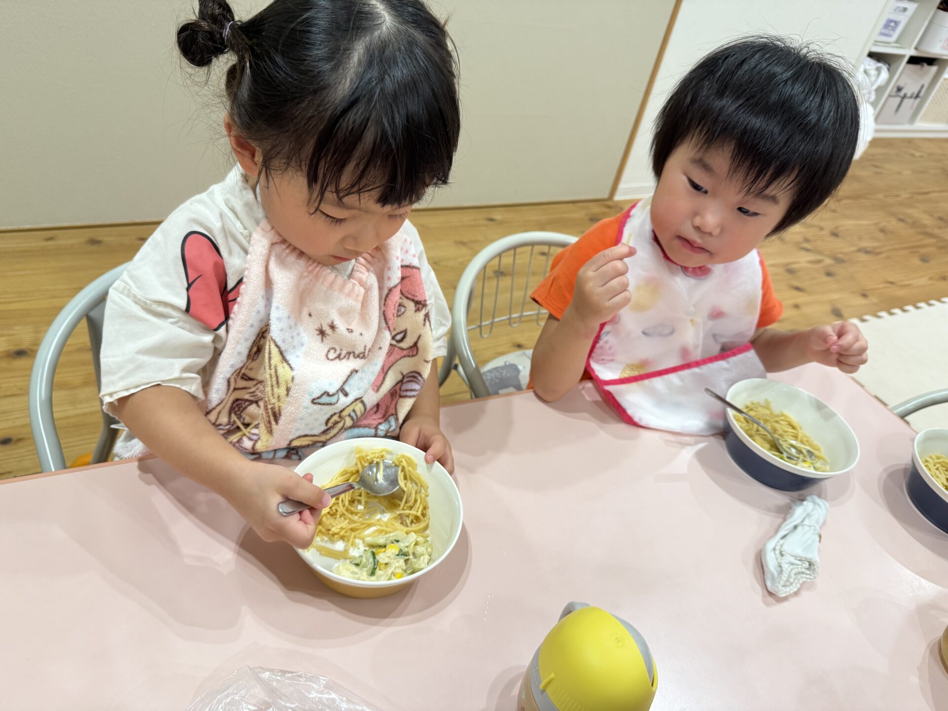 おやつを食べて朝の会をした後は…✨
