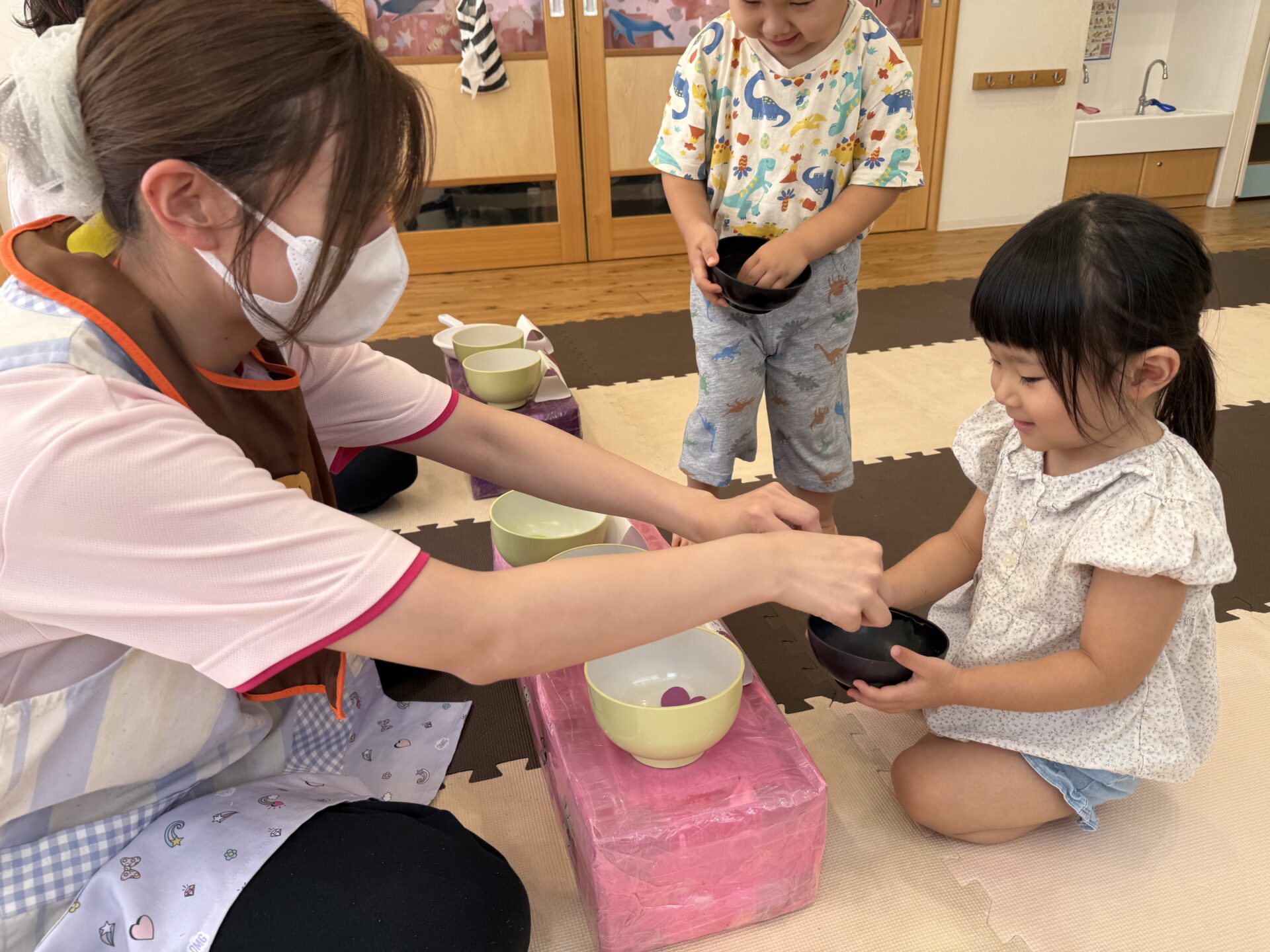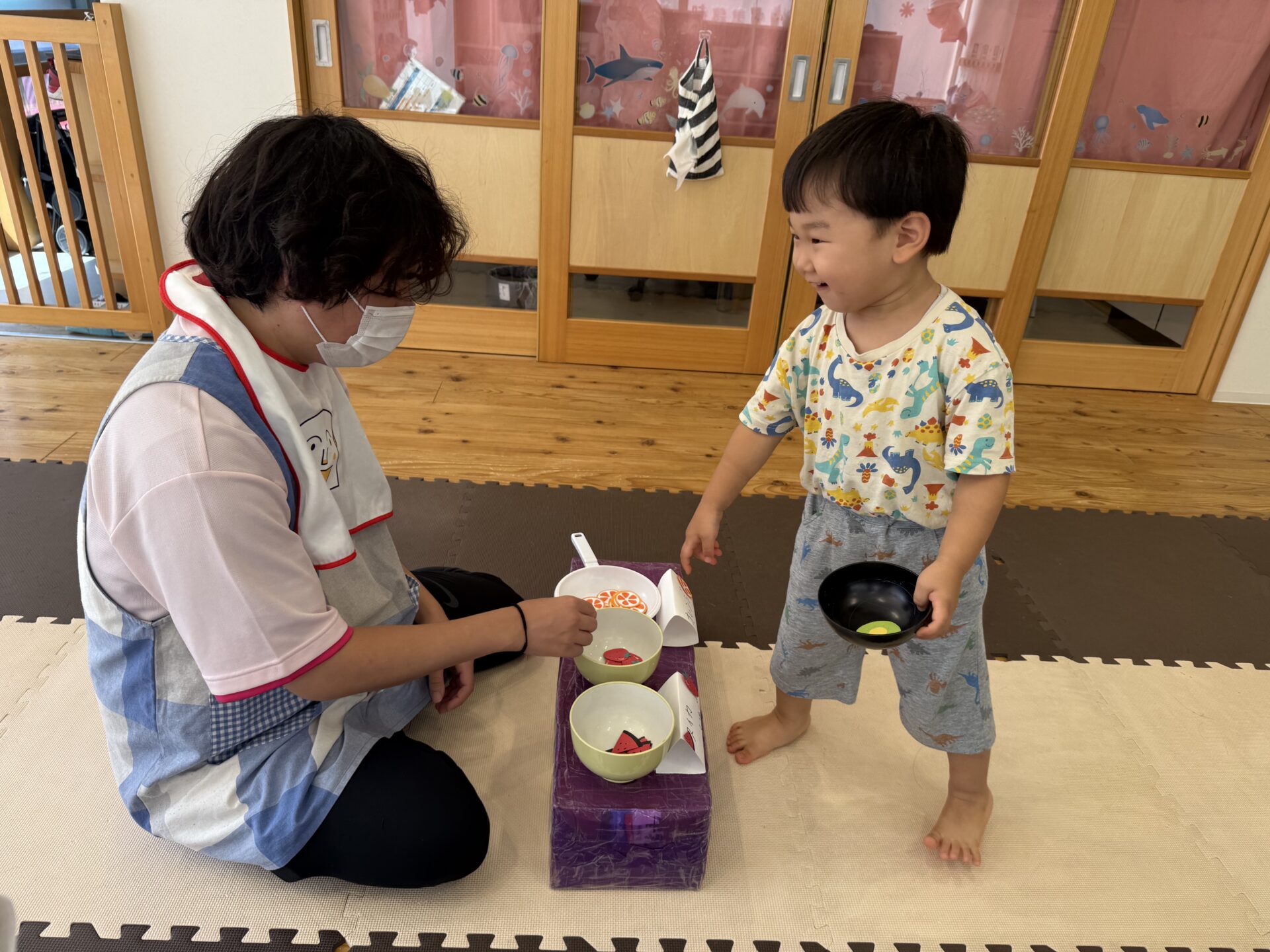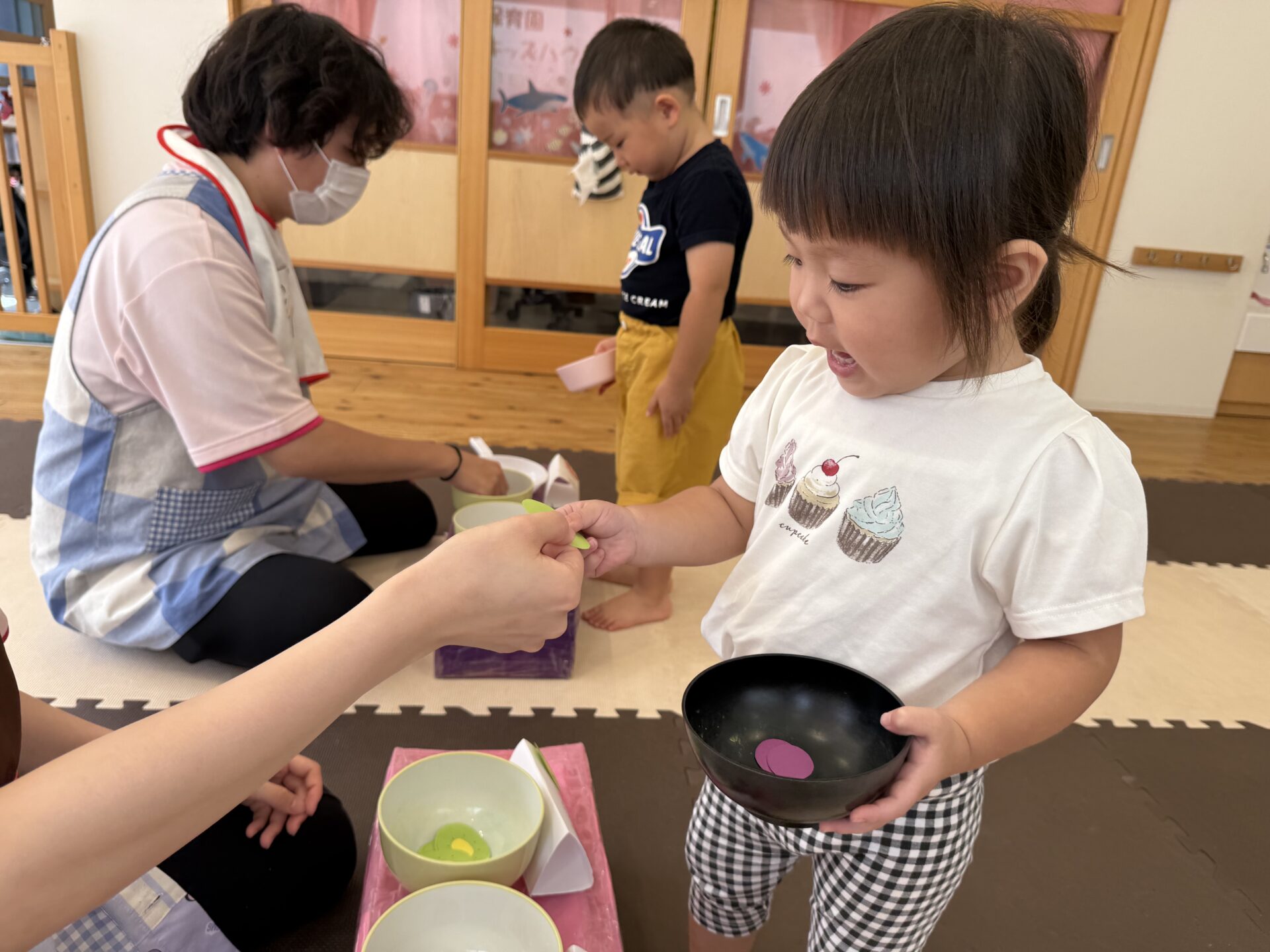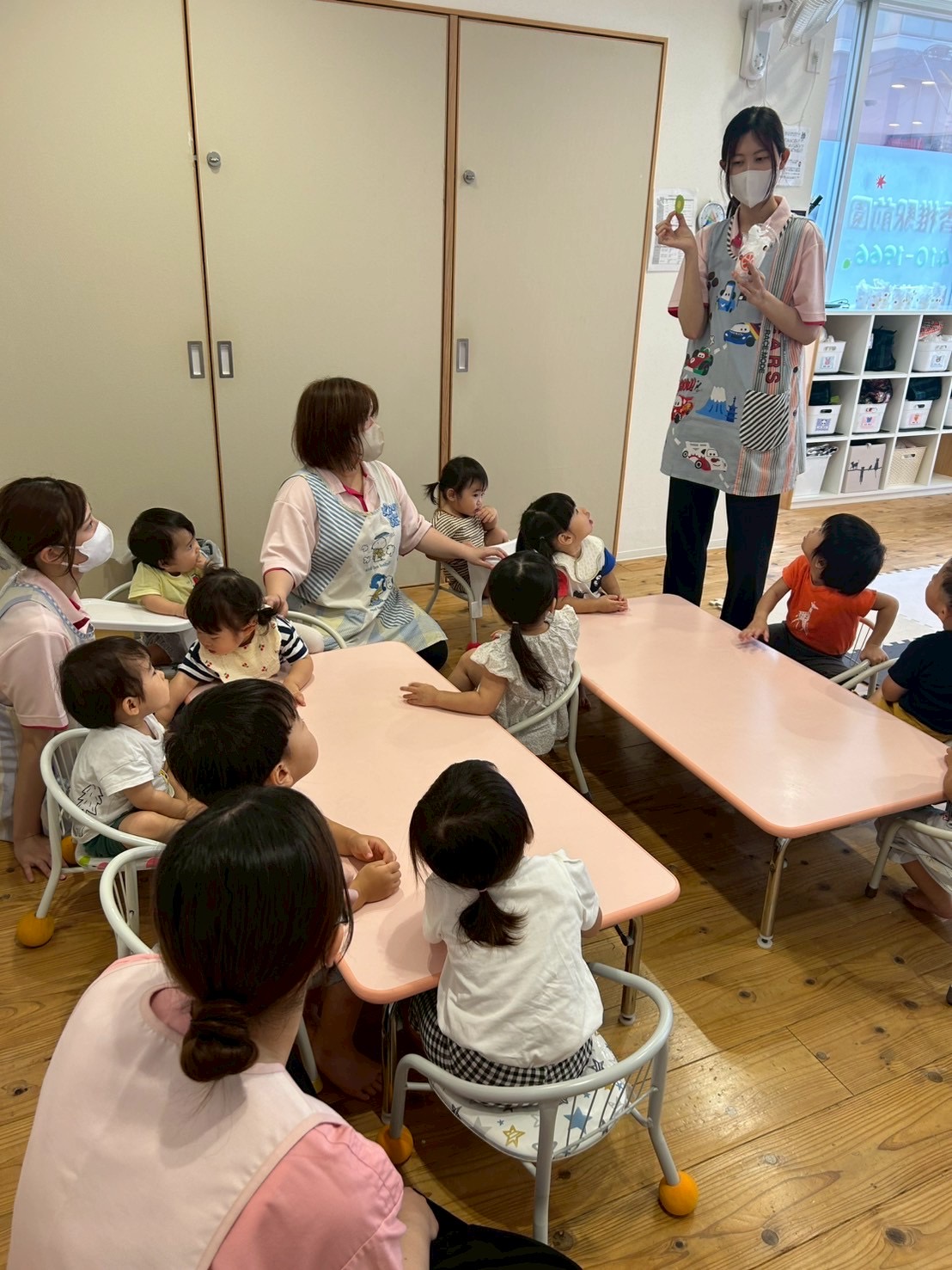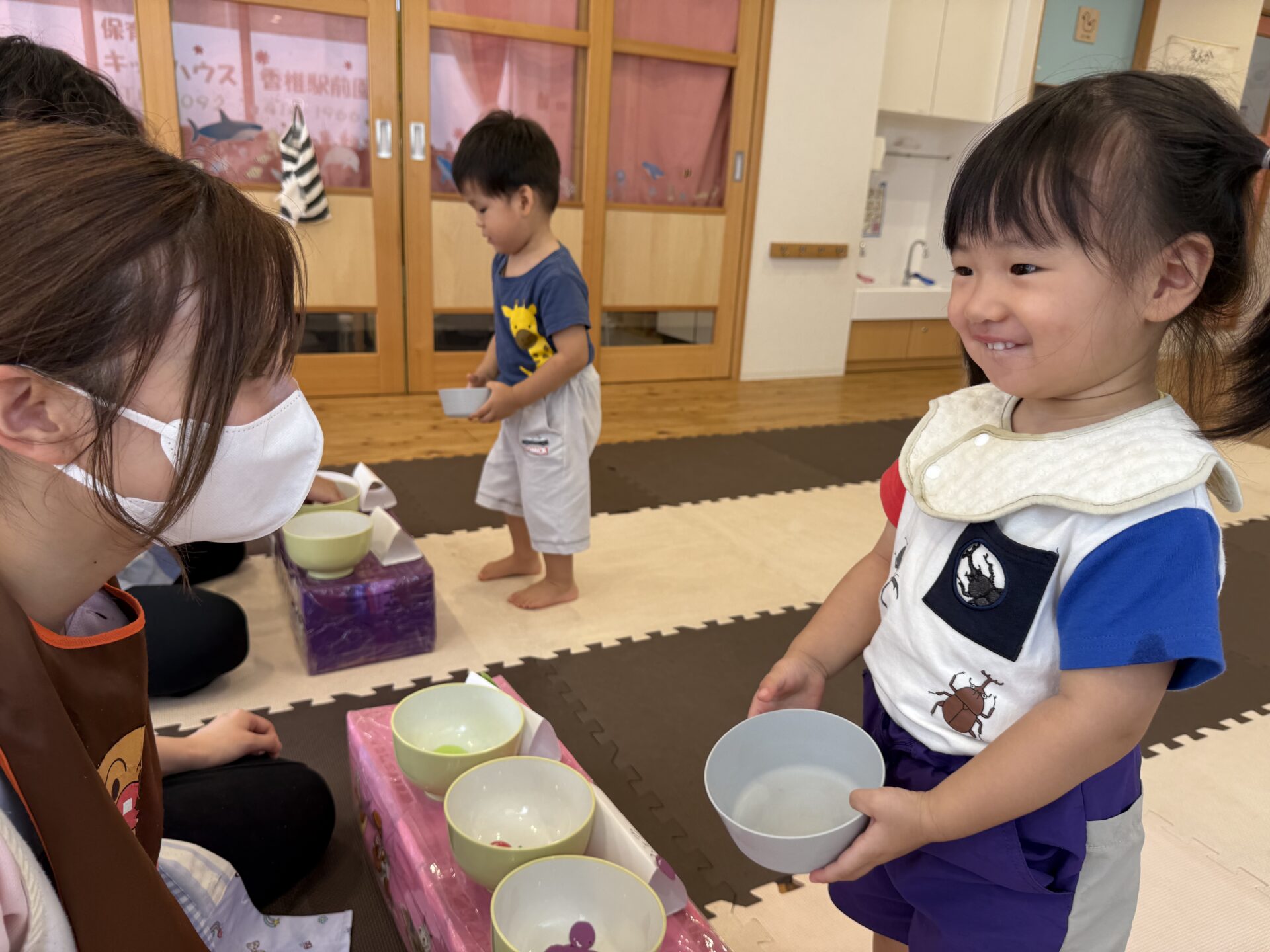 おやつを食べて朝の会をした後は…✨