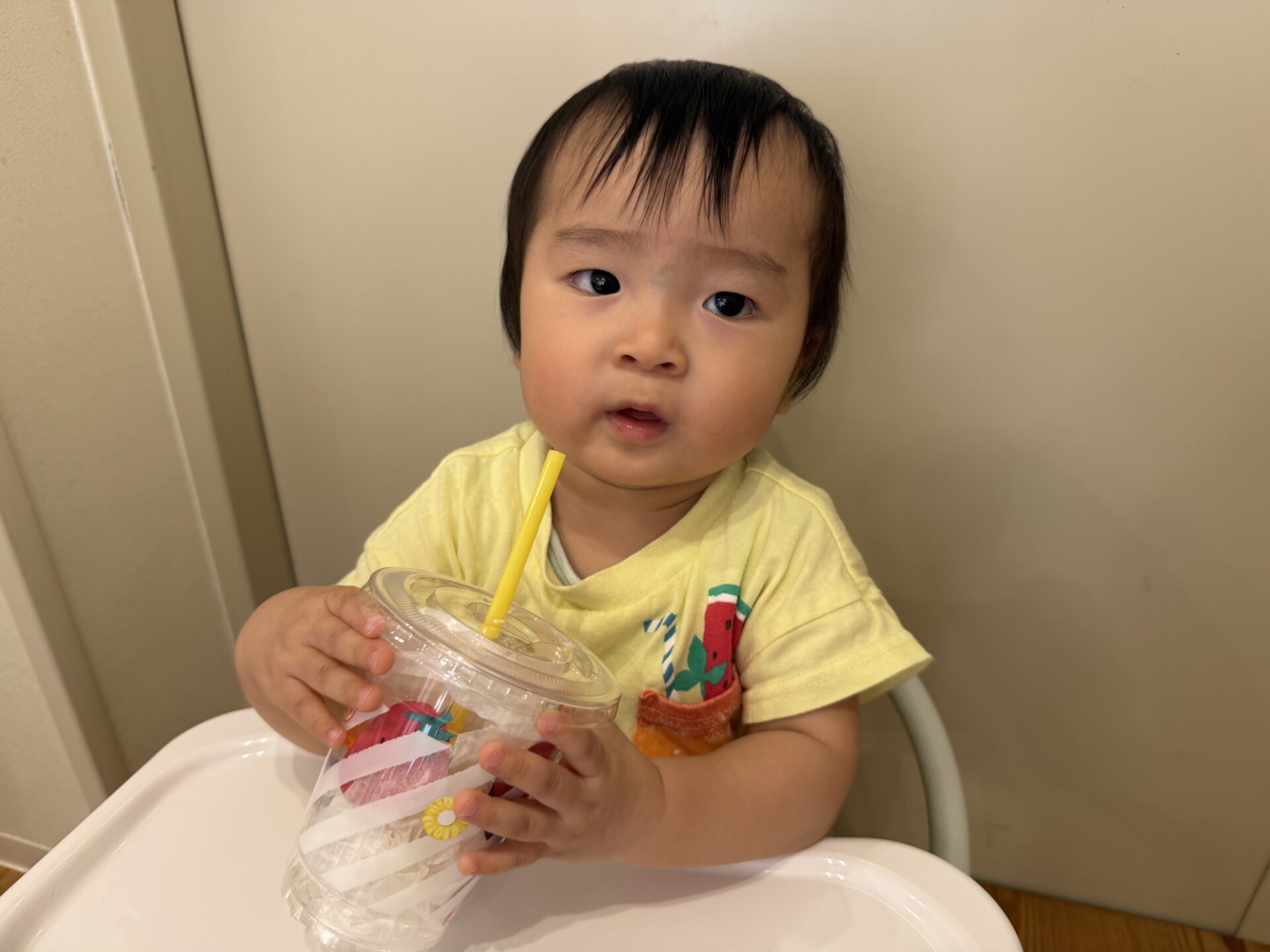 買い物が終わった後は作ったジュースの中に果物をいれて蓋をしてストローをつけて…ミックスジュースの出来上がり〜😁❤️