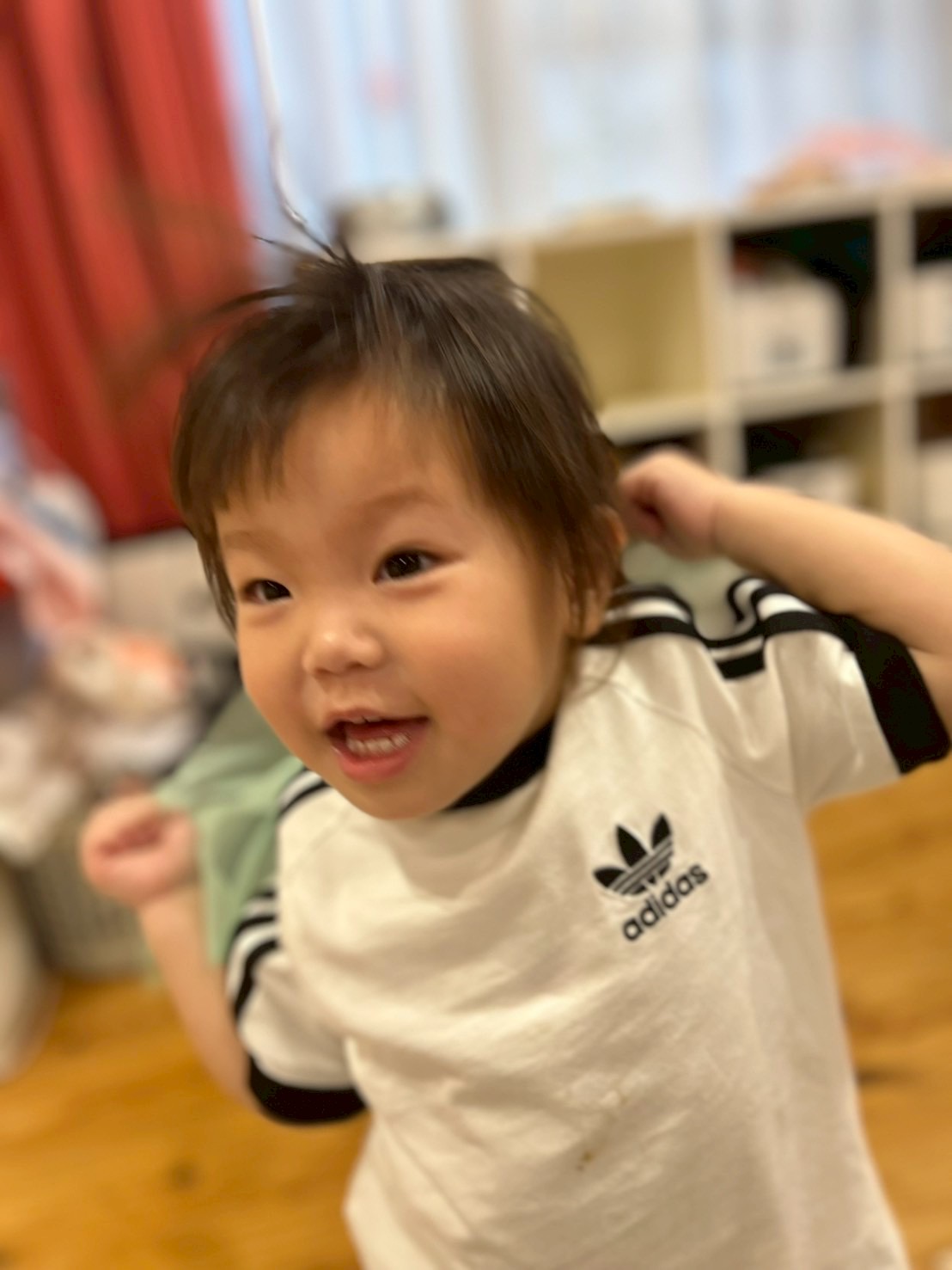 顔を隠して「いないいないばあ🙌🏻」や頭にのせてバランスバランス🎶