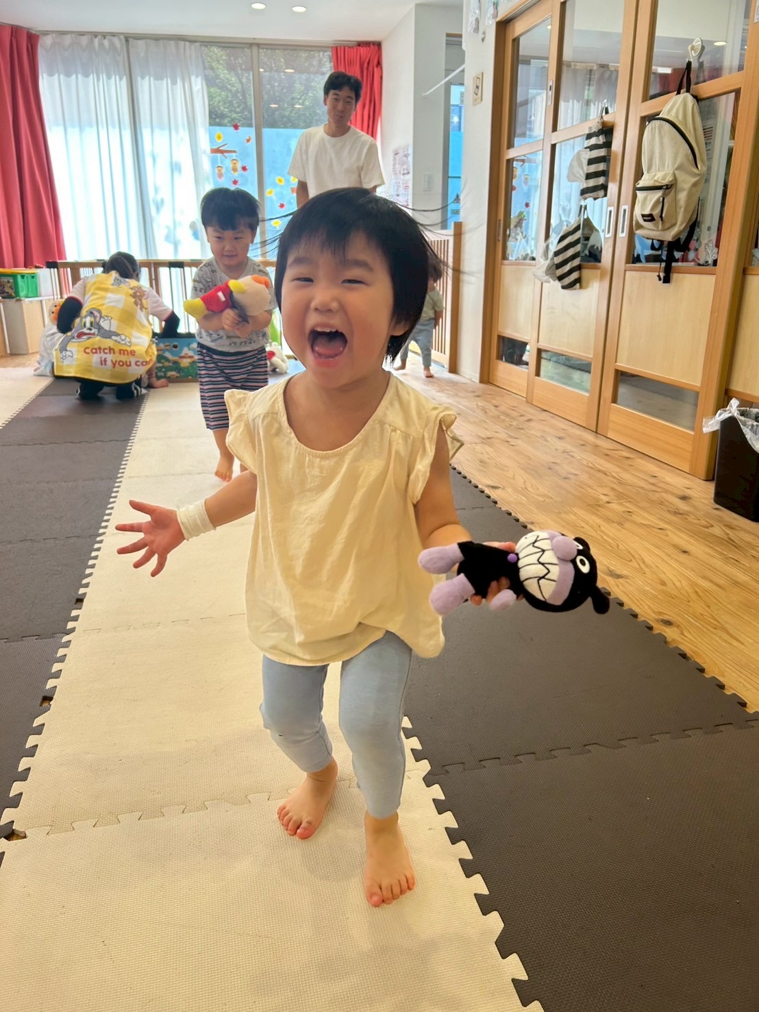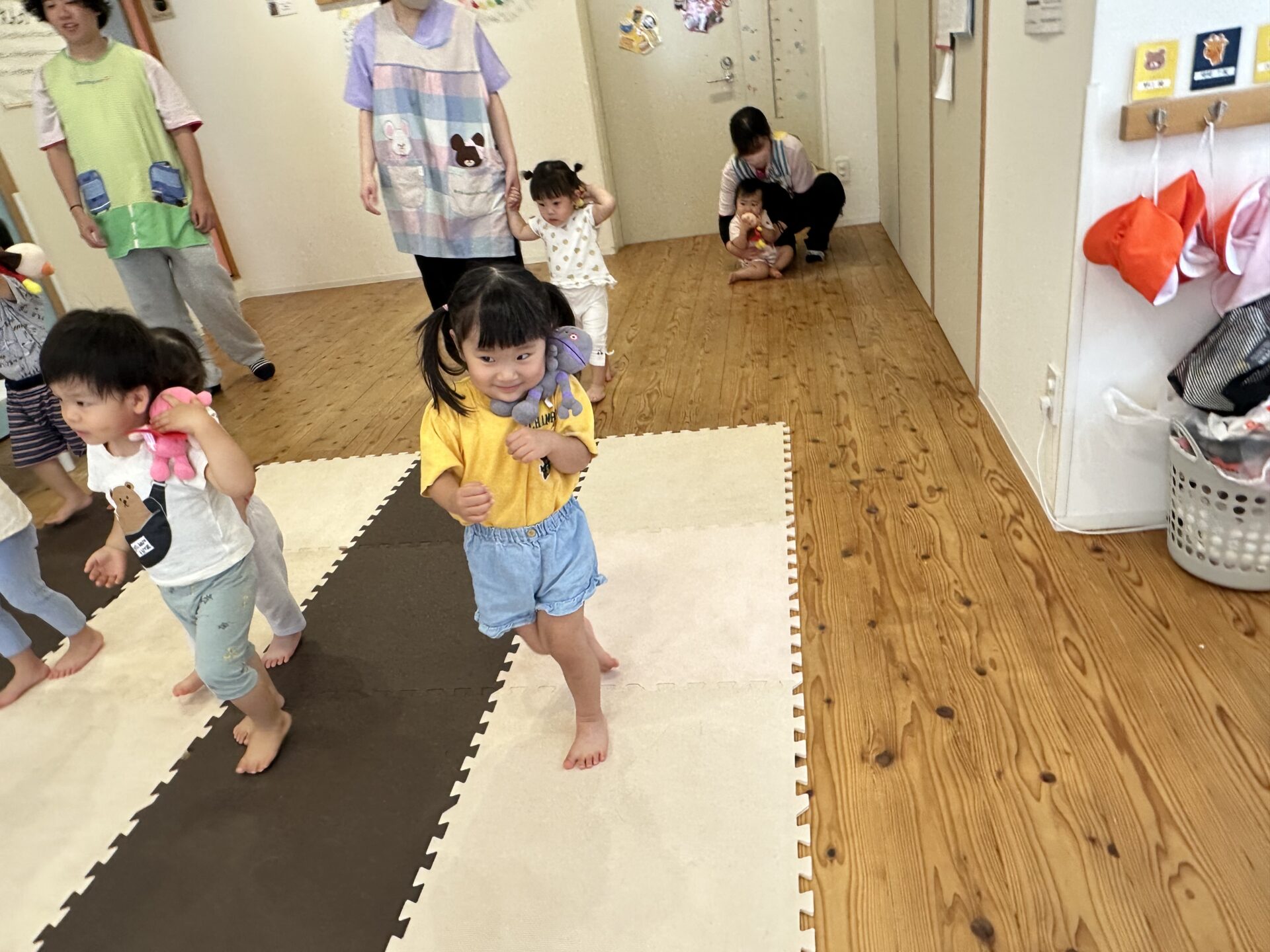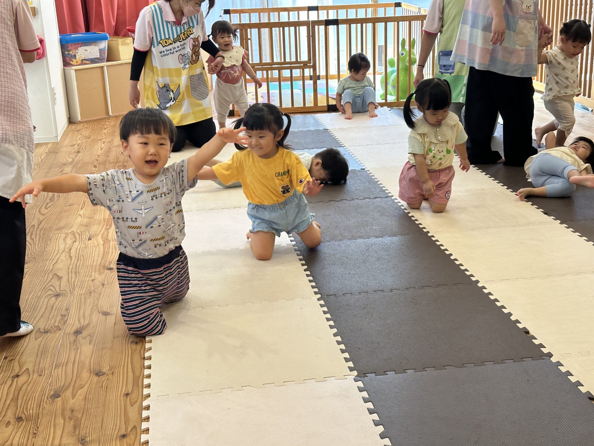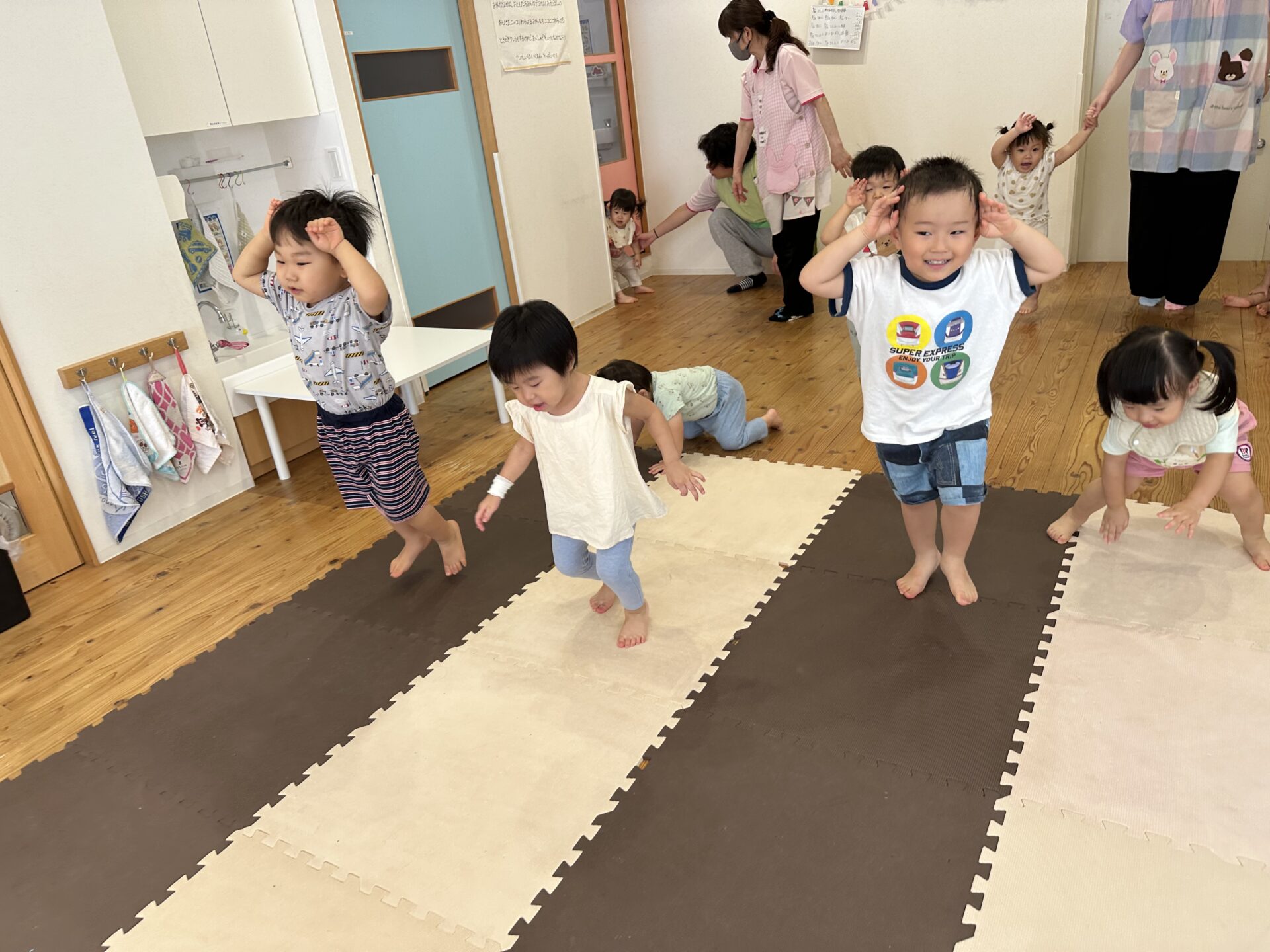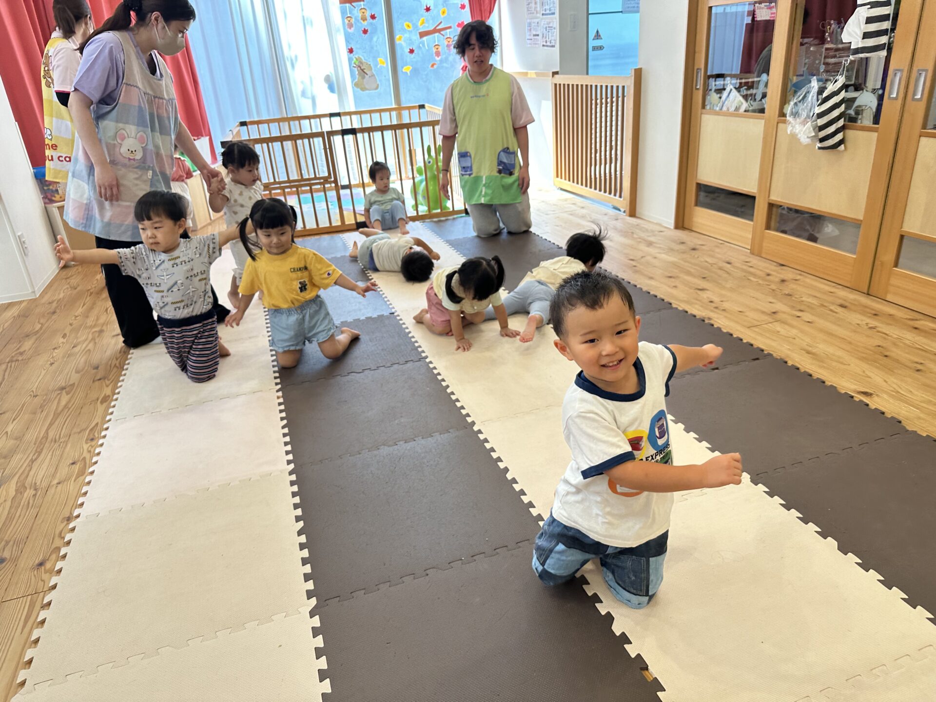 ジャンプしたり、ペンギンさん、くまさん歩きでよーいどんしたり元気いっぱい♪( ◜ω◝و(و “