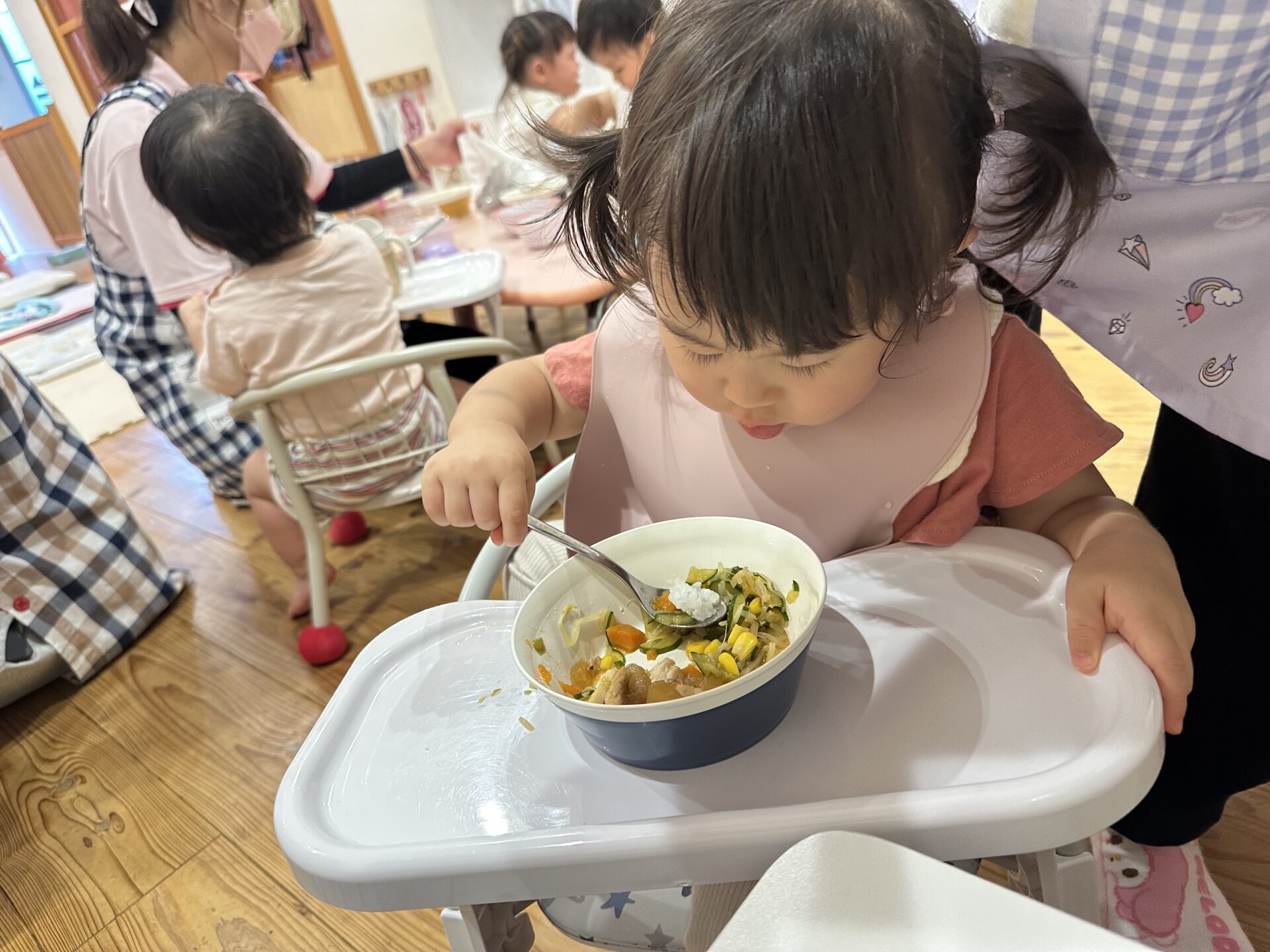 お花や蝶々を観察して帰ってくると、ご飯の時間🍙