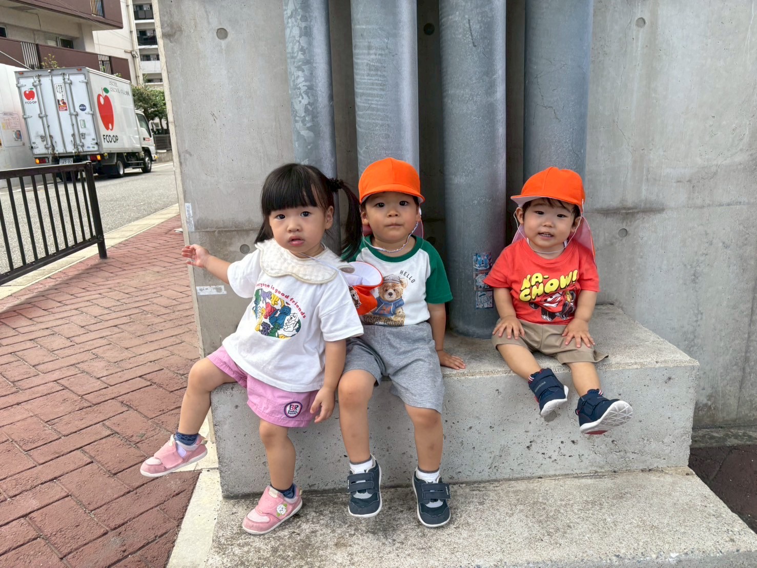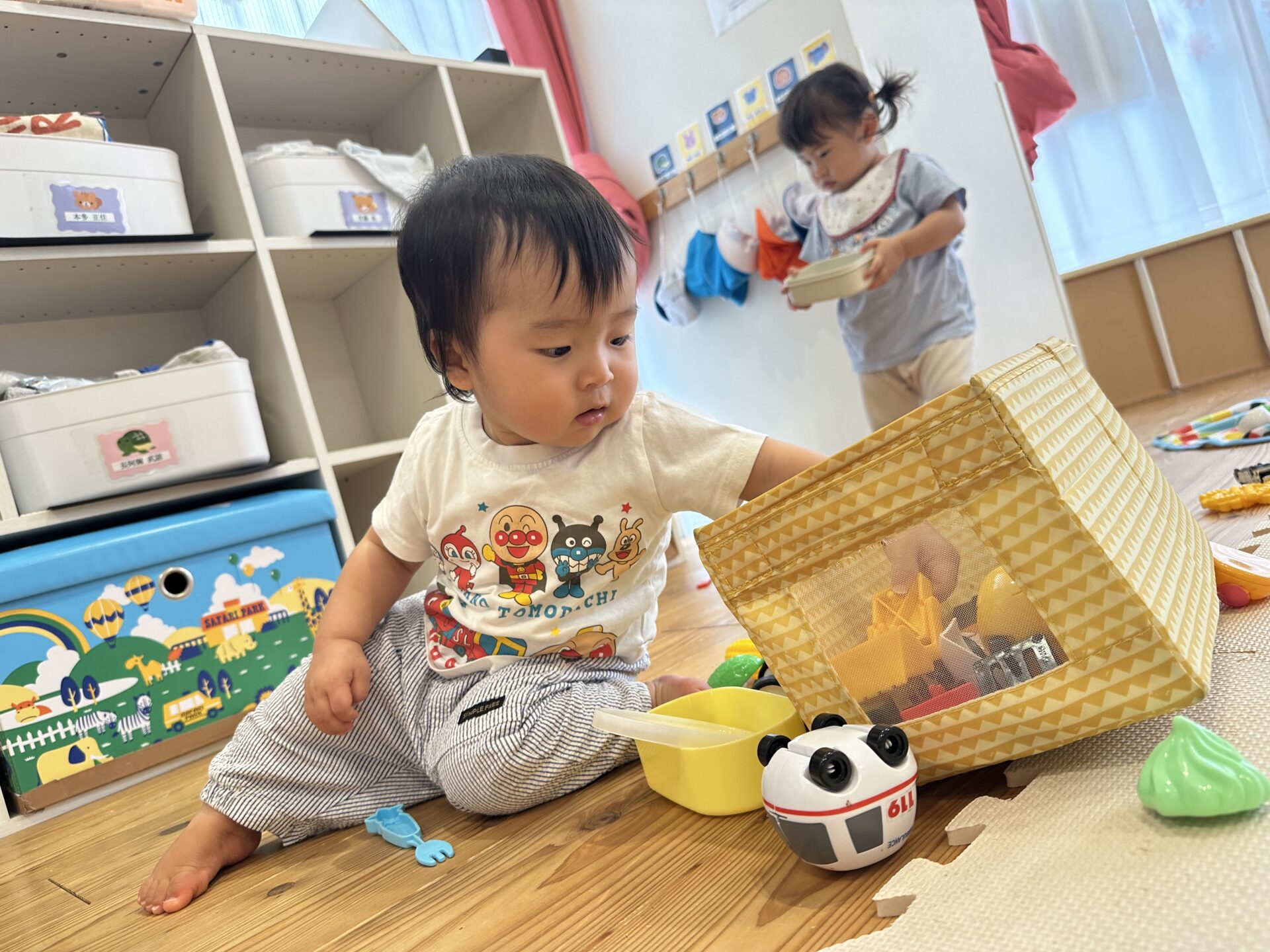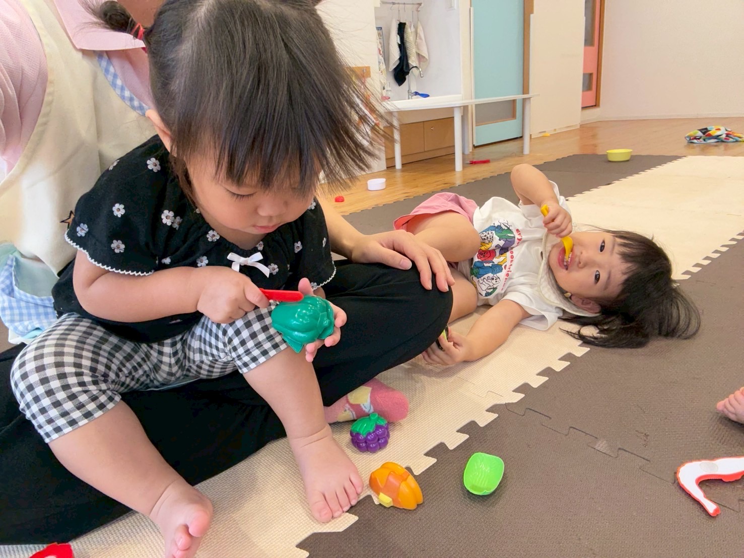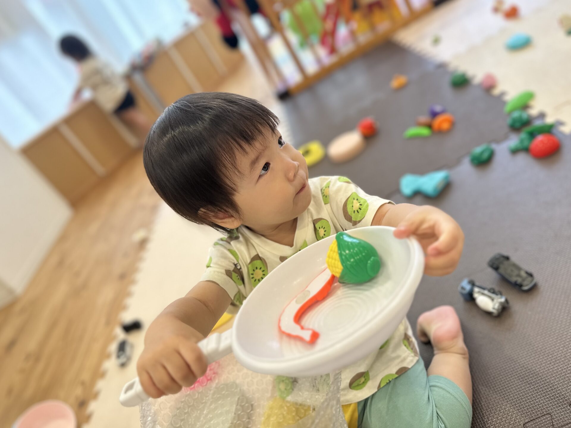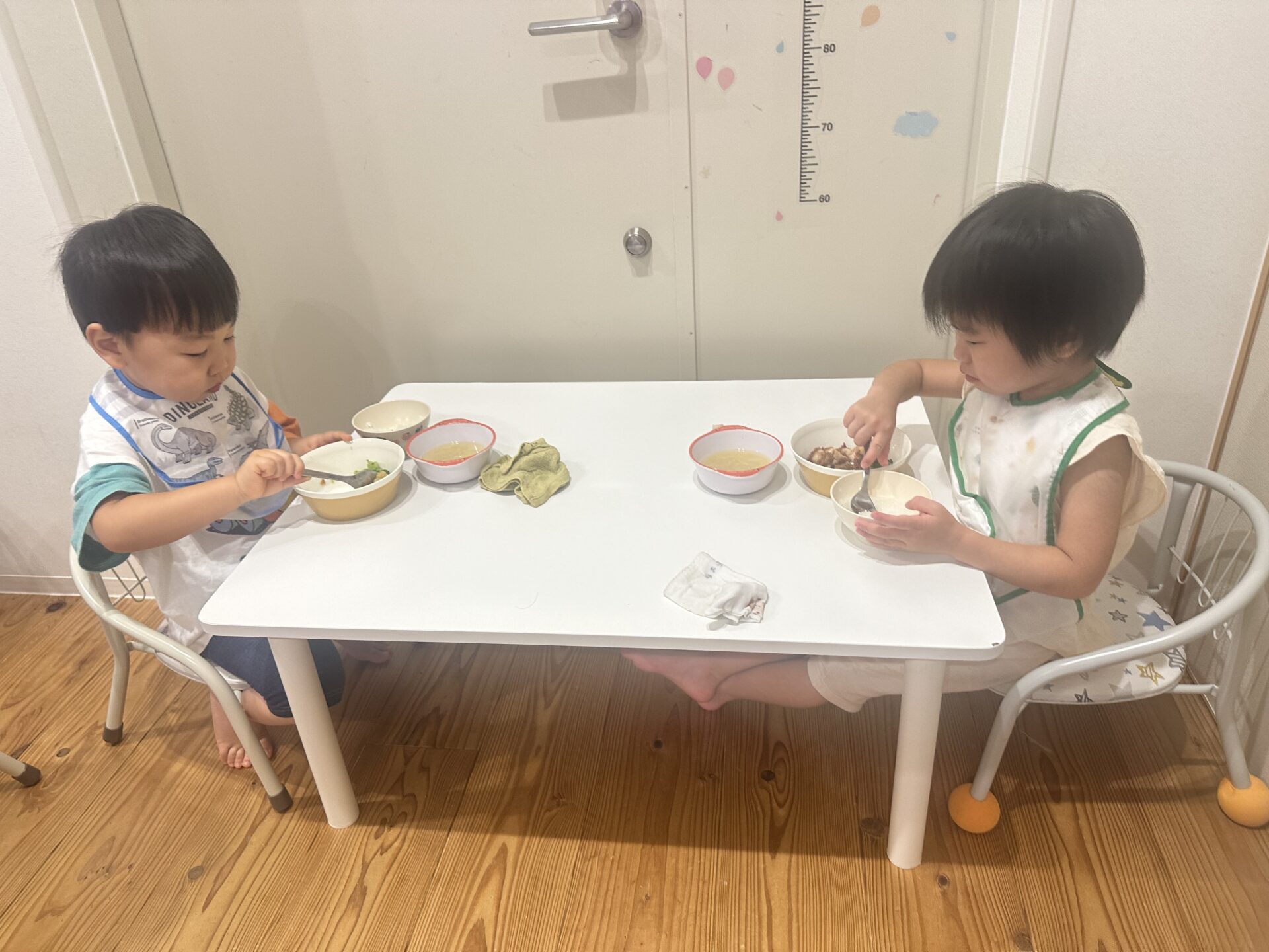 追いかけっこ、かくれんぼなどたくさん走り回ったあとは、お待ちかねの給食の時間🍙