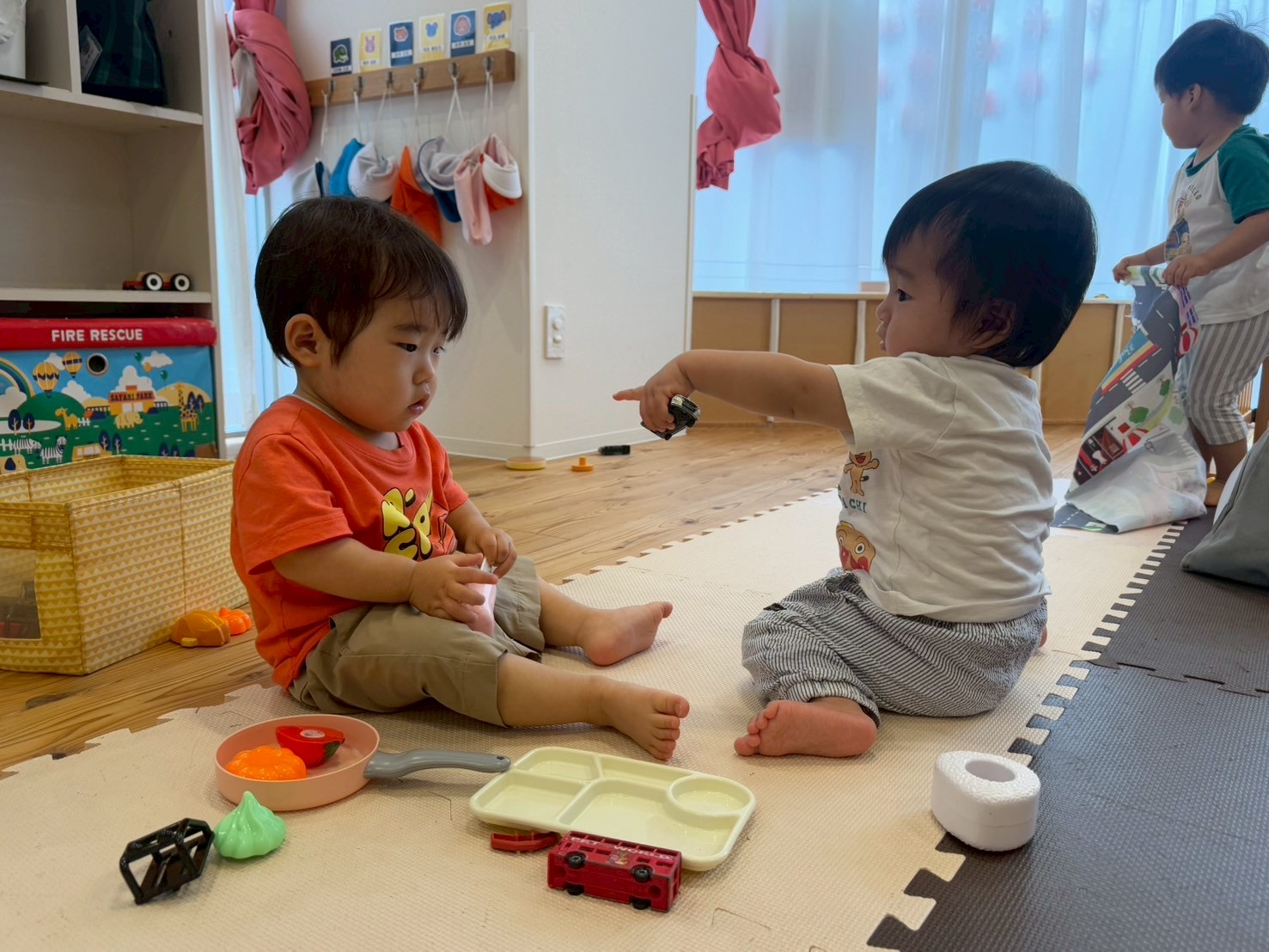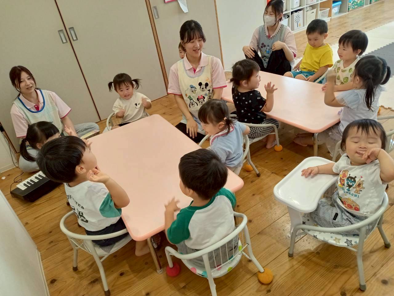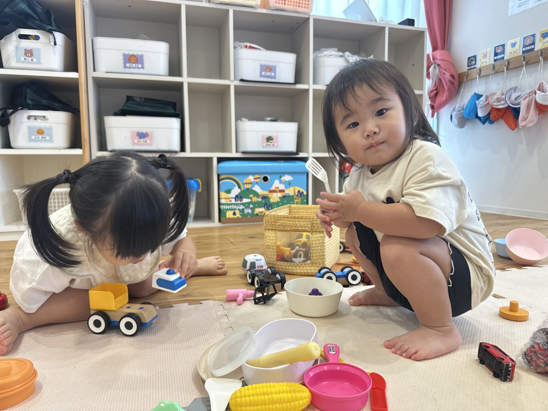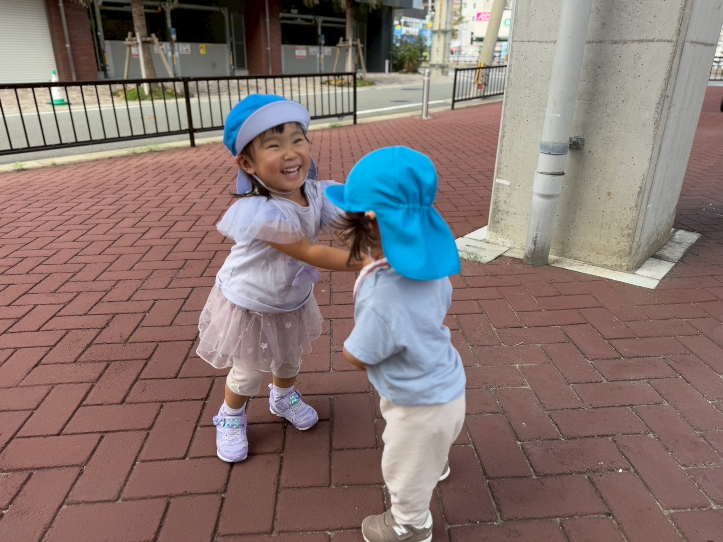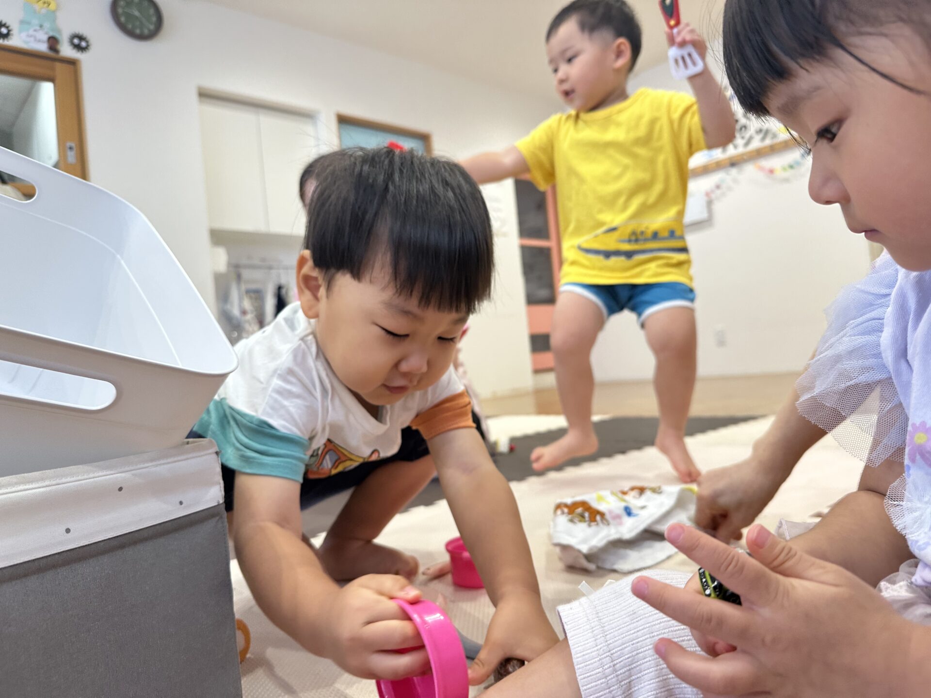 追いかけっこ、かくれんぼなどたくさん走り回ったあとは、お待ちかねの給食の時間🍙