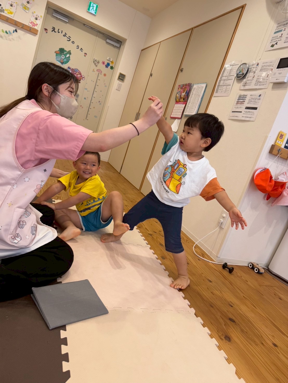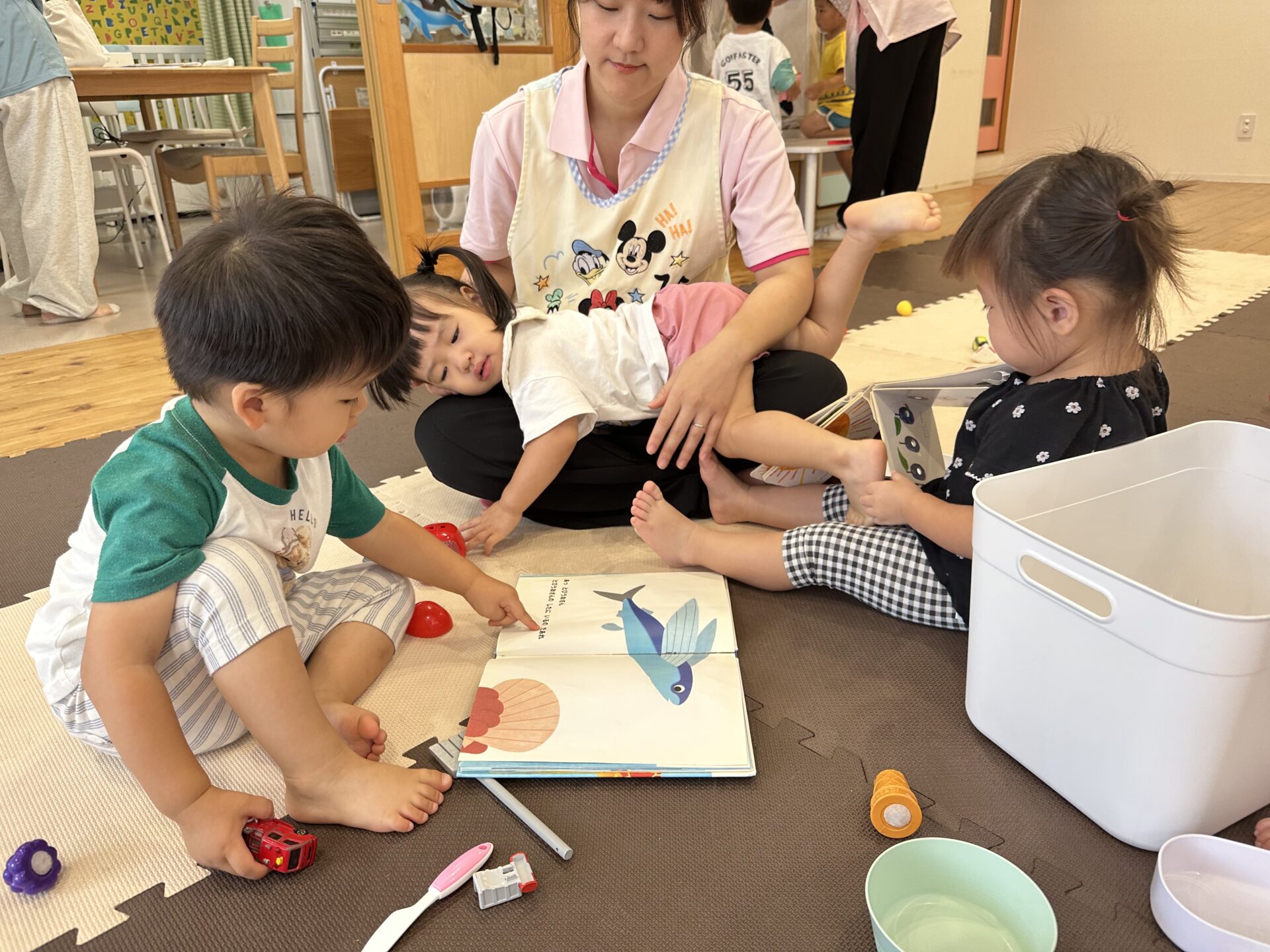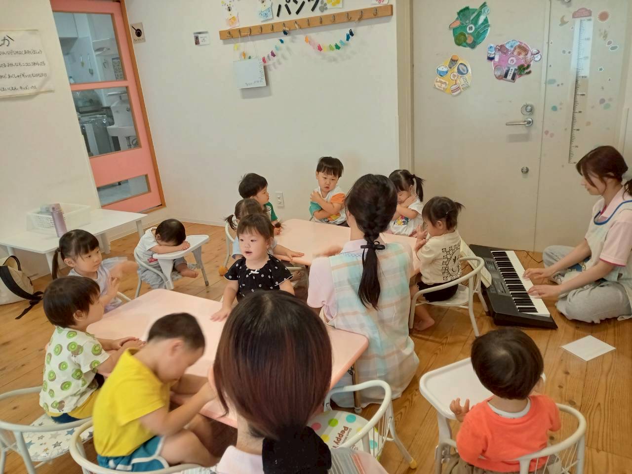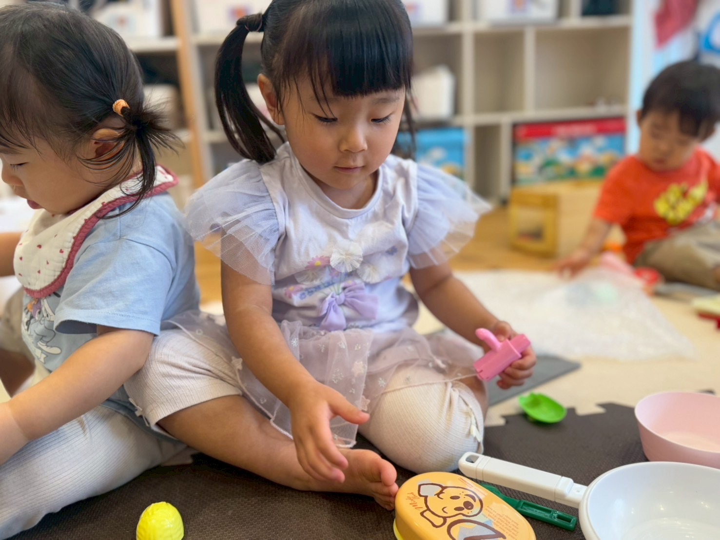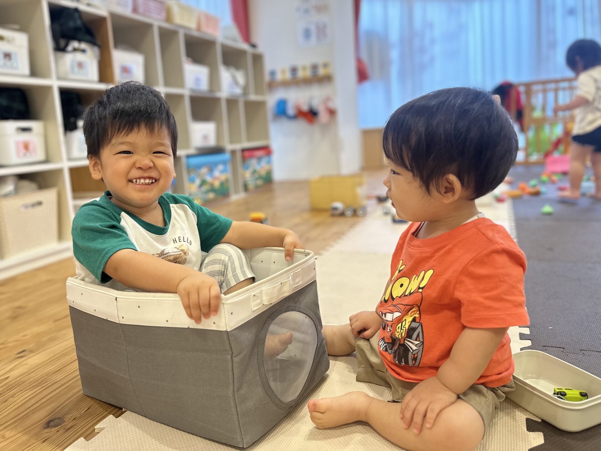 追いかけっこ、かくれんぼなどたくさん走り回ったあとは、お待ちかねの給食の時間🍙