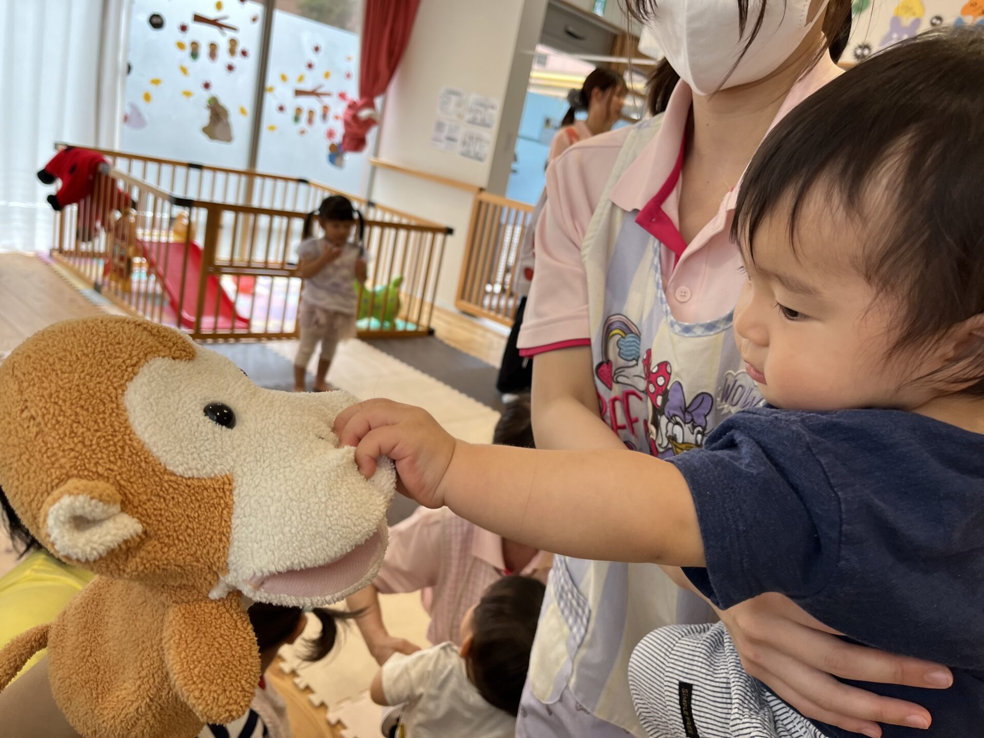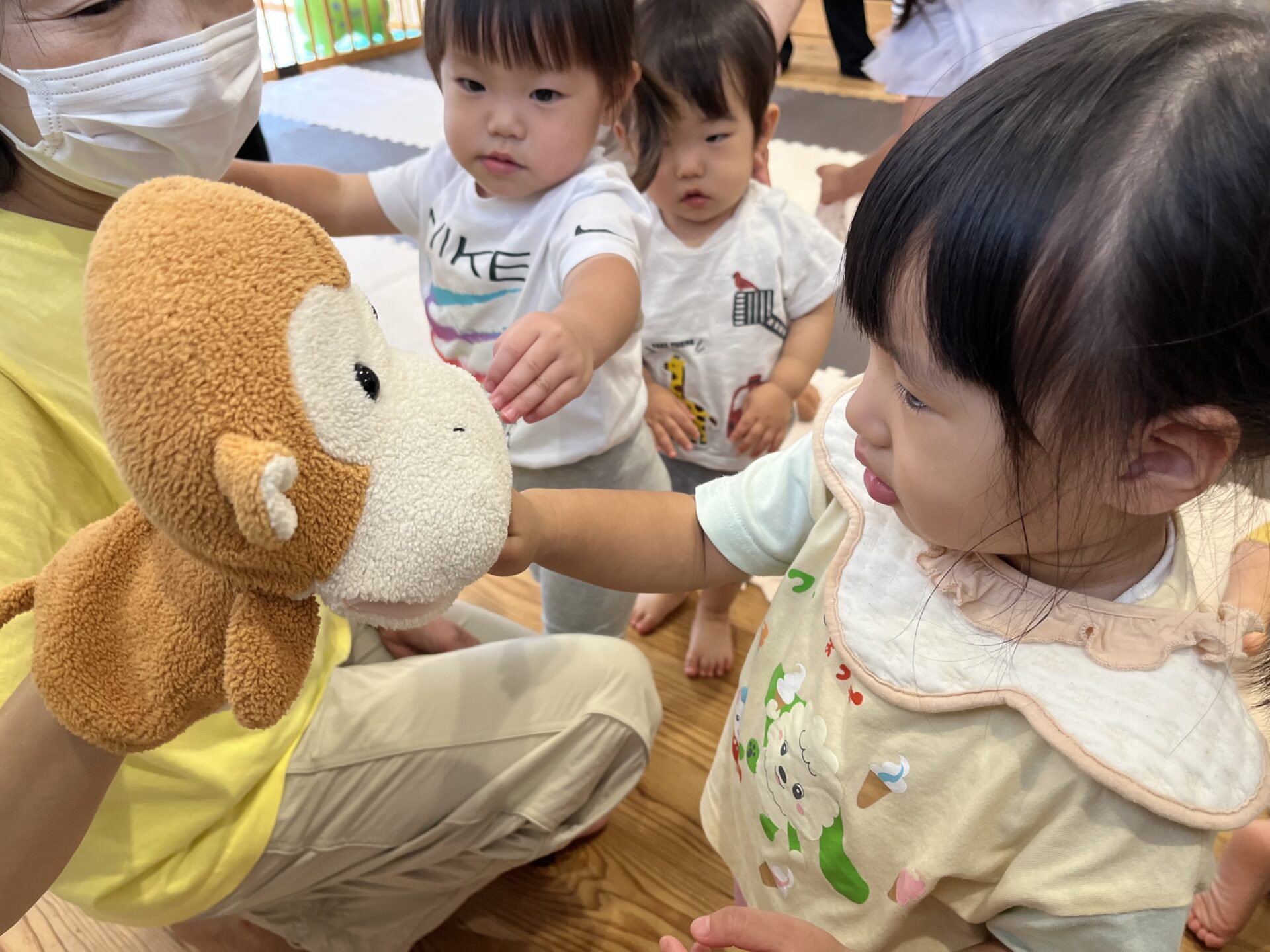 おさるのジョージにも挨拶できてニコニコな子どもたちです🤭 ̖́-