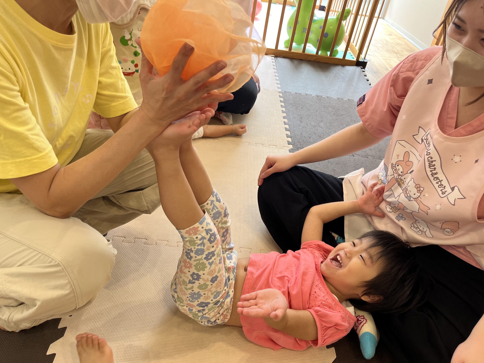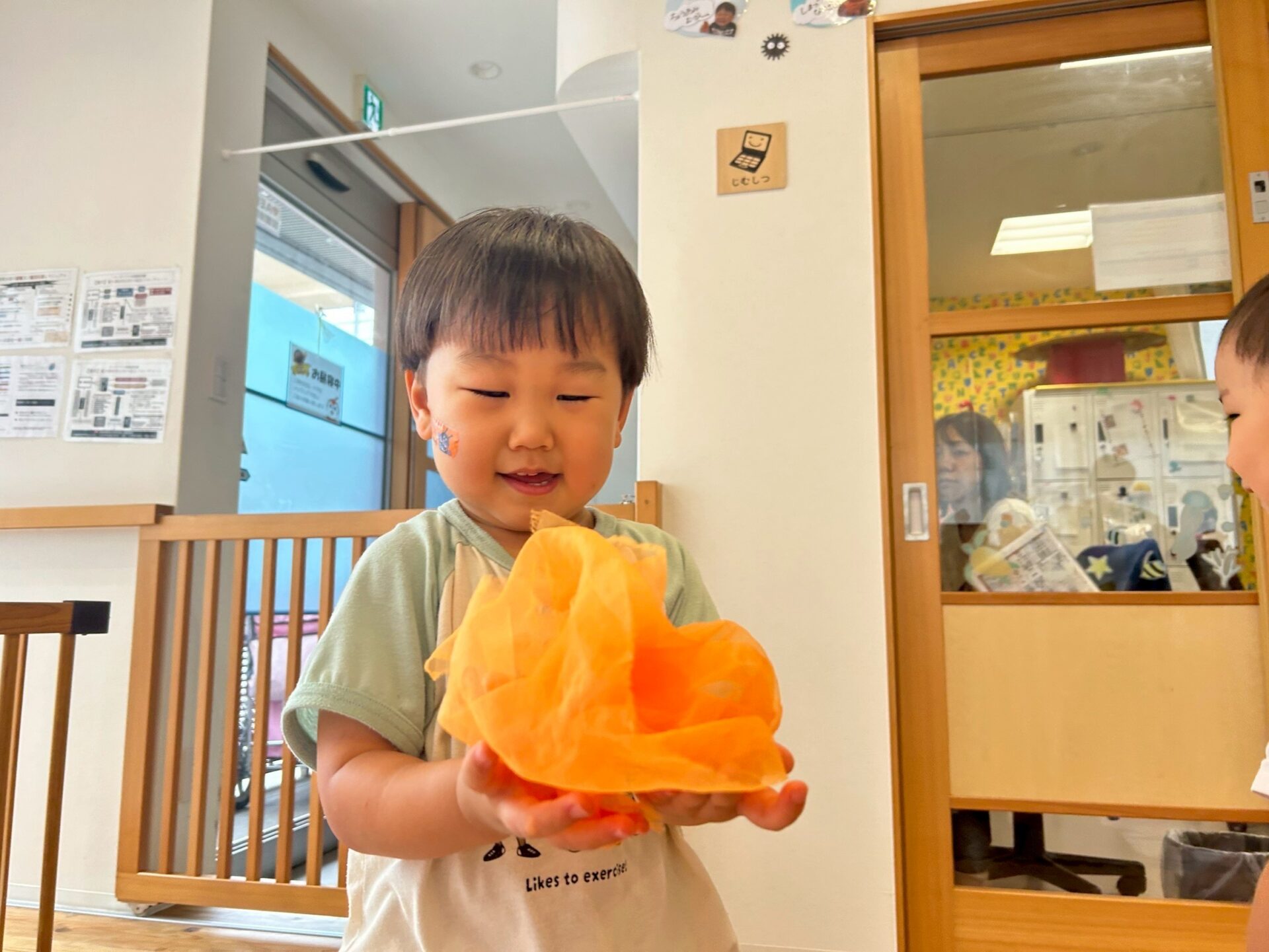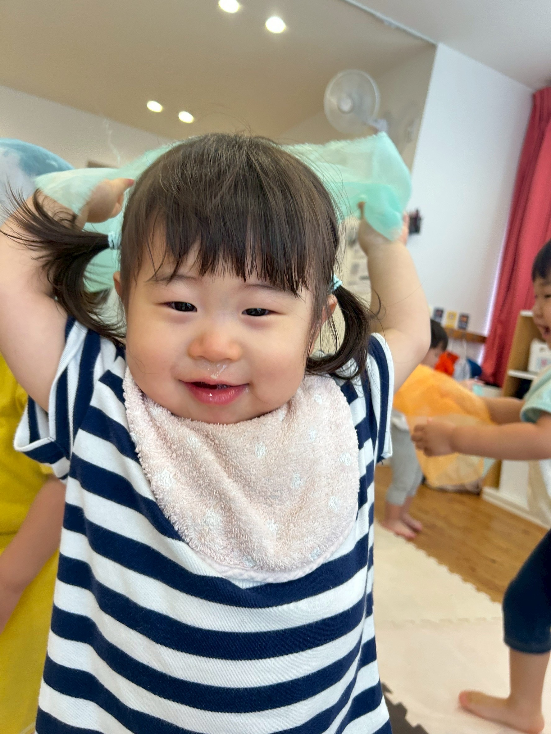 顔を隠して『ピーカーブー』や、クシャクシャポイッと投げてキャッチ( •ᴗ•)*♪