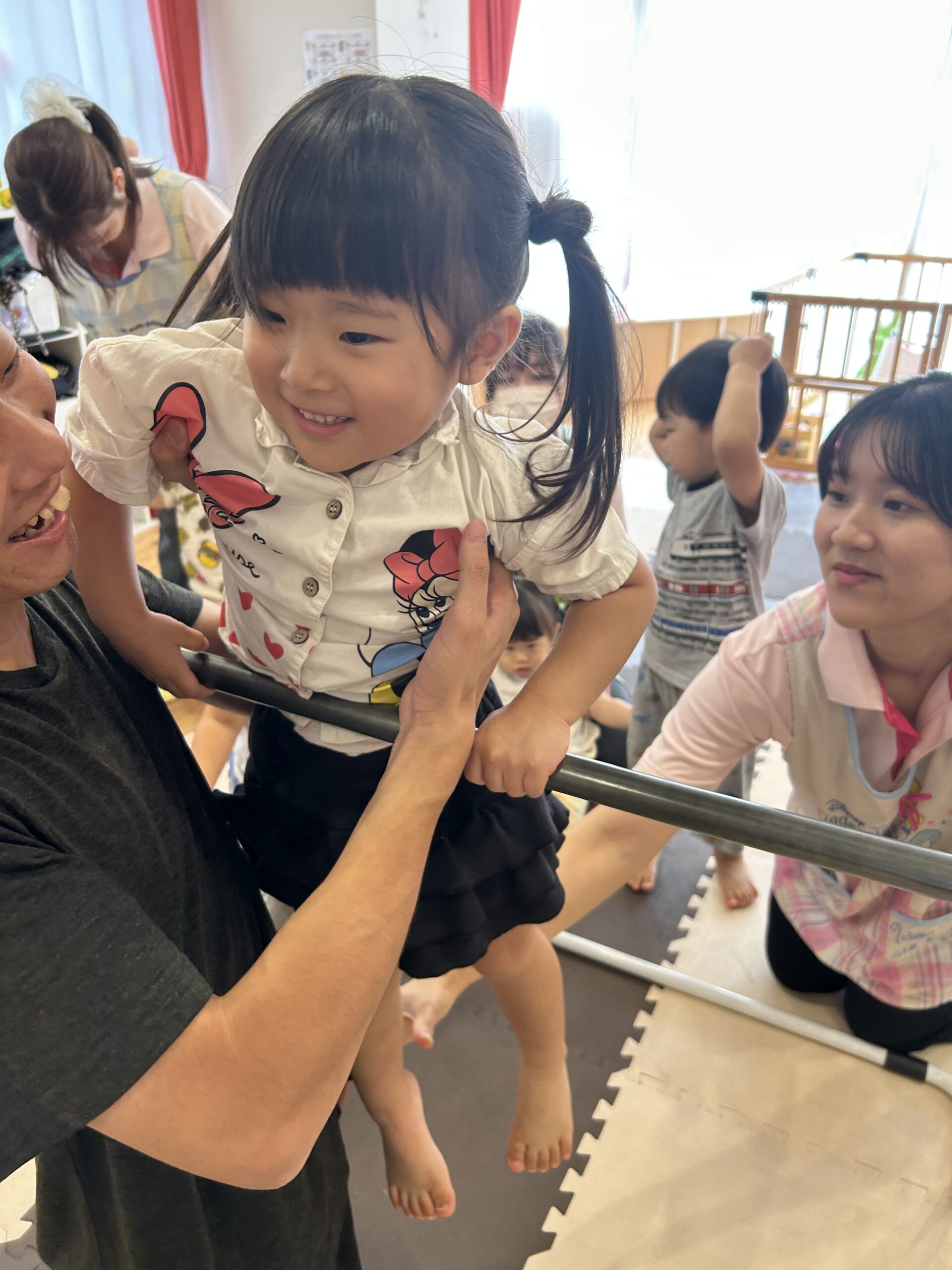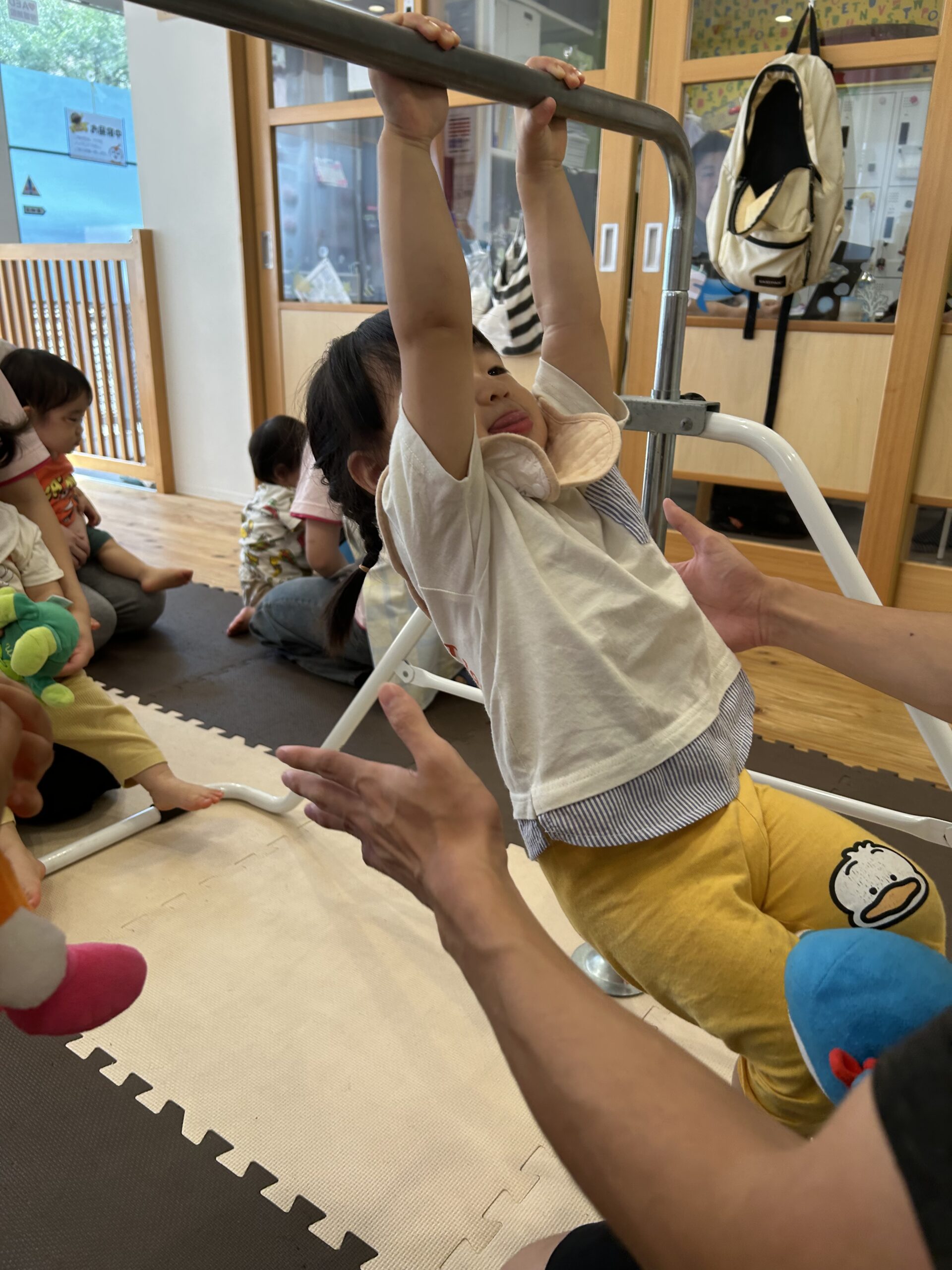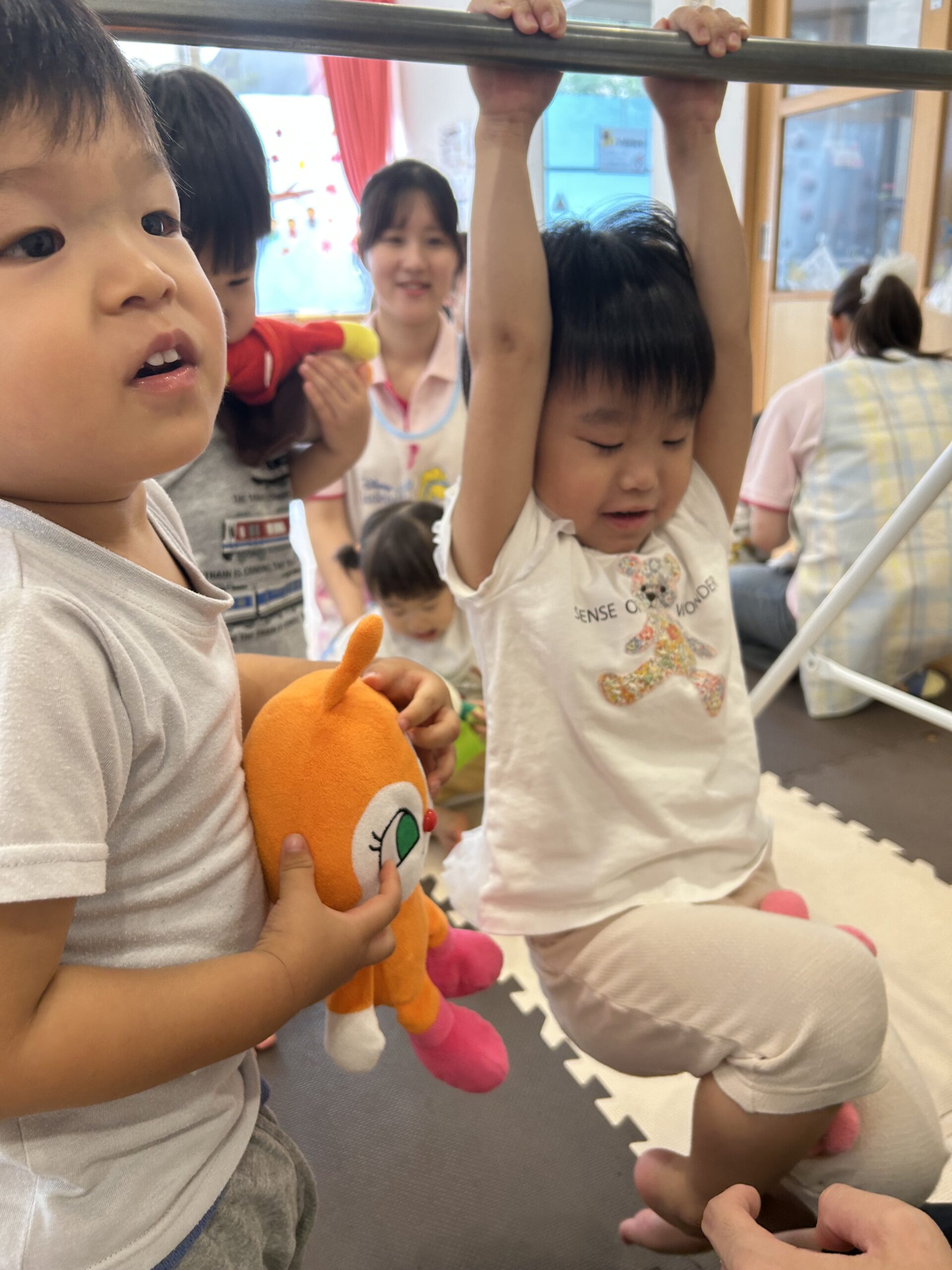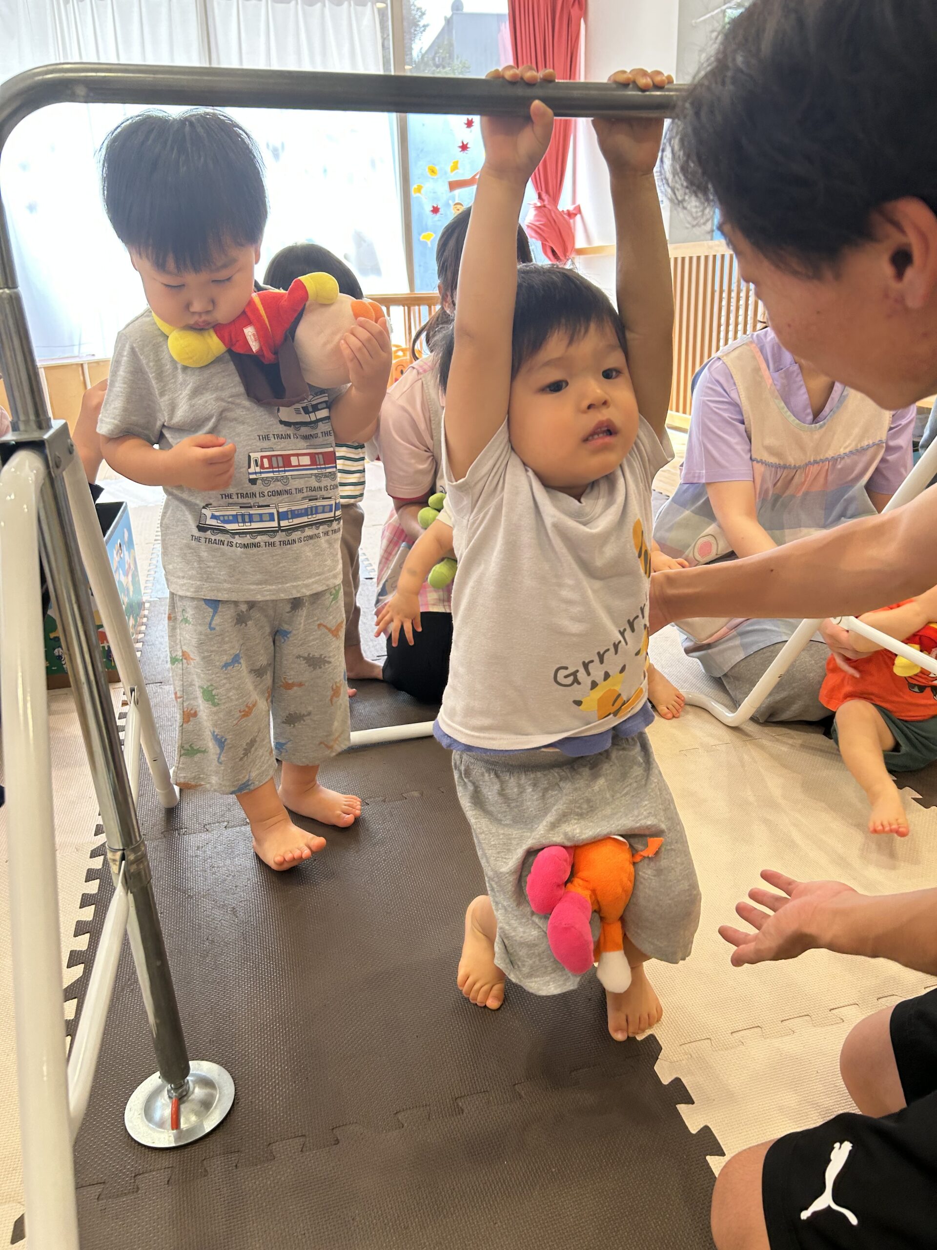頑張って自分でぶら下がったり、先生と一緒にぶら下がったりして頑張りました💪